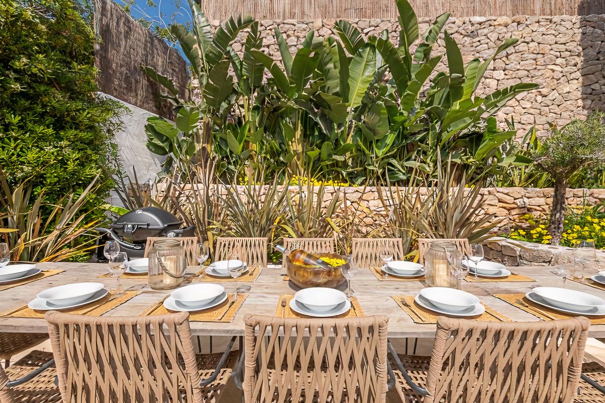 Fringed by lush foliage and towering palms, this home promises privacy in an idyllic location. You'll find it nestled in the sought-after neighbourhood of Can Furnet, a private community just a ten-minute drive from Ibiza town and a string of splendid white-sand beaches.