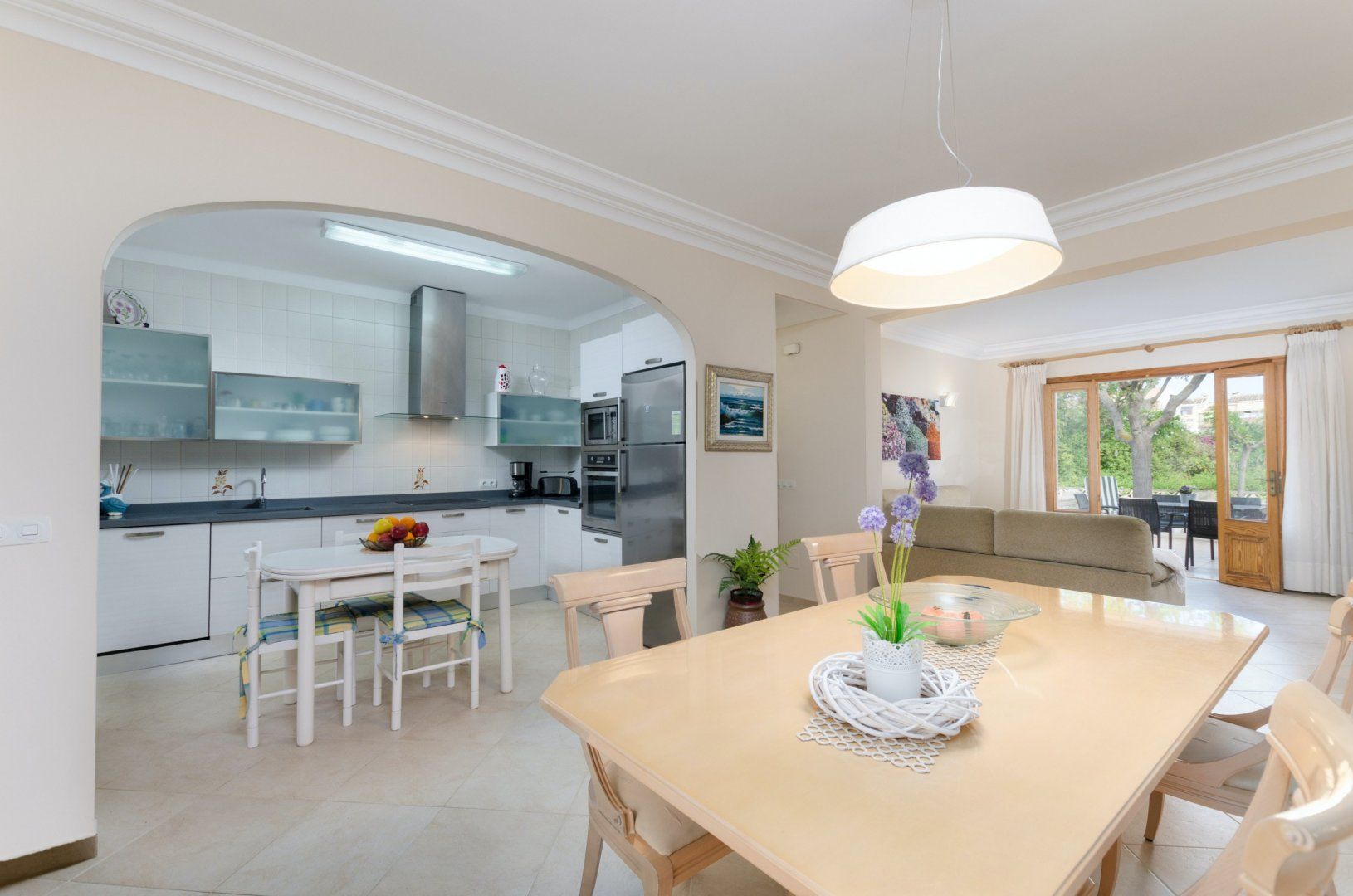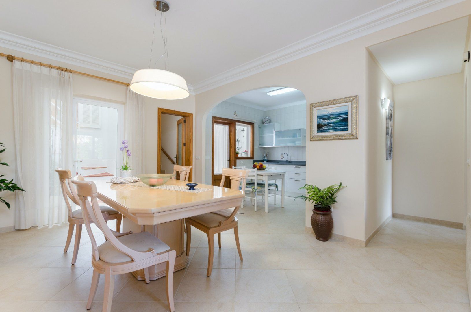 From the glistening turquoise sea and long sandy beach to the bustling promenade, colourful weekly markets and local cuisine, Can Picafort makes the perfect setting for a dreamy island escape. And just a short walk from the beach, you’ll find this traditional home welcoming you to enjoy the simple pleasures of island living. Fortunately, there’s a lovely large terrace positioned right at the entrance – providing the perfect spot to sit back and savour the fresh air with drinks in hand. From here, the space opens up into the air-conditioned living and dining room as well as a fully equipped kitchen.