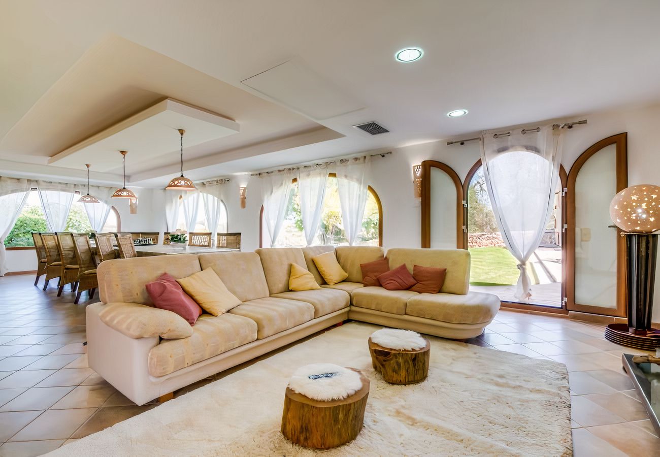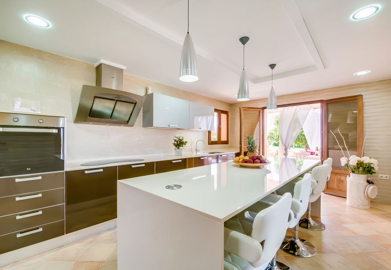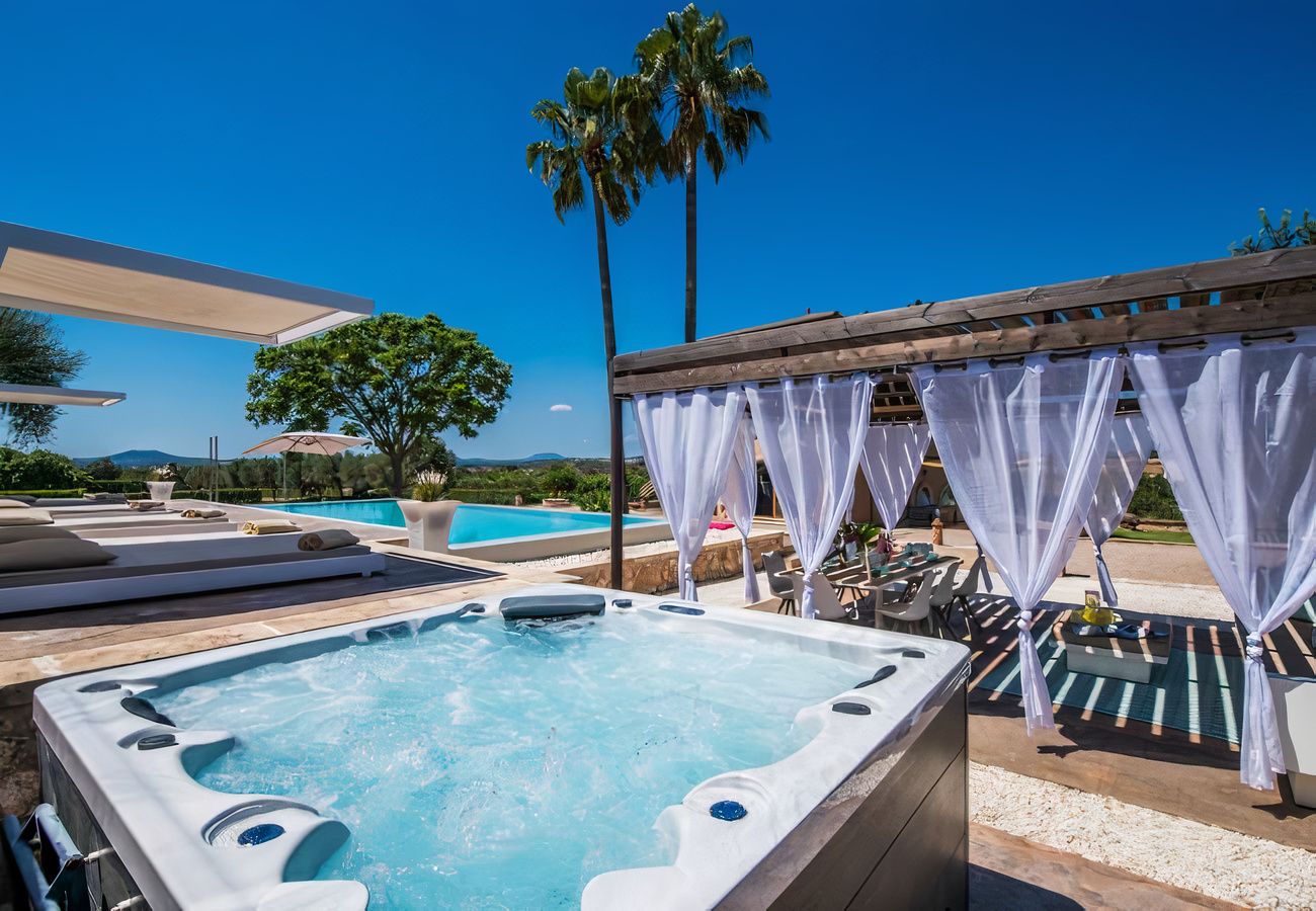 This Mallorcan villa 500 metres from the town centre of Santa Margarita offers plenty in the way of fun and enjoyment. The funky modern decor may not be to everybody’s taste, but it’s really all about the facilities here. The home boasts a cinema room and private gym, as well as outdoor amenities including a pool, Jacuzzi, sauna and even a covered pool table and ping-pong table for more hours of entertainment. You can stock up on local fruit and vegetables at Santa Margarita’s bi-weekly market, or head to Can Picafort or Son Serra de Marina beach – both only a twenty-minute drive away.