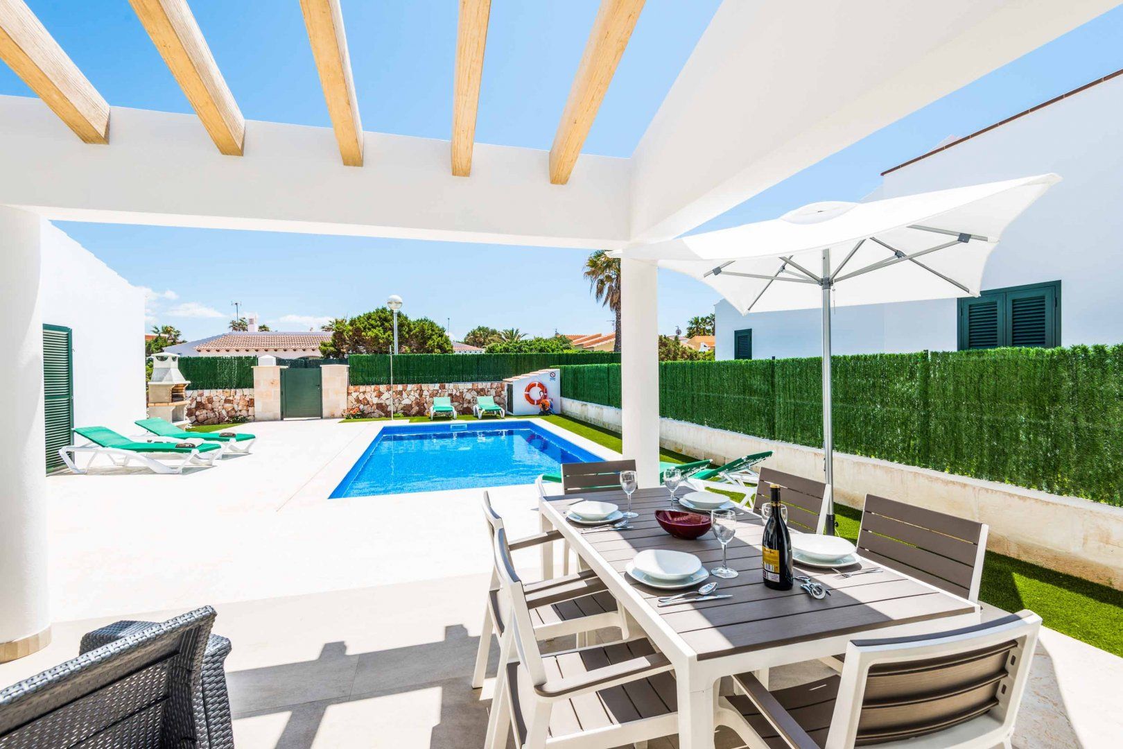 Located a fifteen-minute walk from the Marina of Cala'n Bosch, and an array of local restaurants and bars, this holiday villa invites guests to experience an authentic taste of Mallorca. The home's laid-back ambience and modern furnishings encourage a fuss-free stay centred around comfort and convenience. The private swimming pool and terrace area present a sun-kissed spot to spend lazy afternoons and barbecue meals when you're not exploring the local coastline.