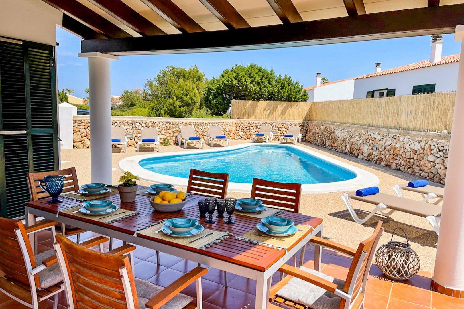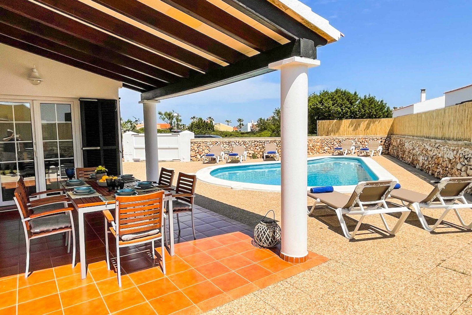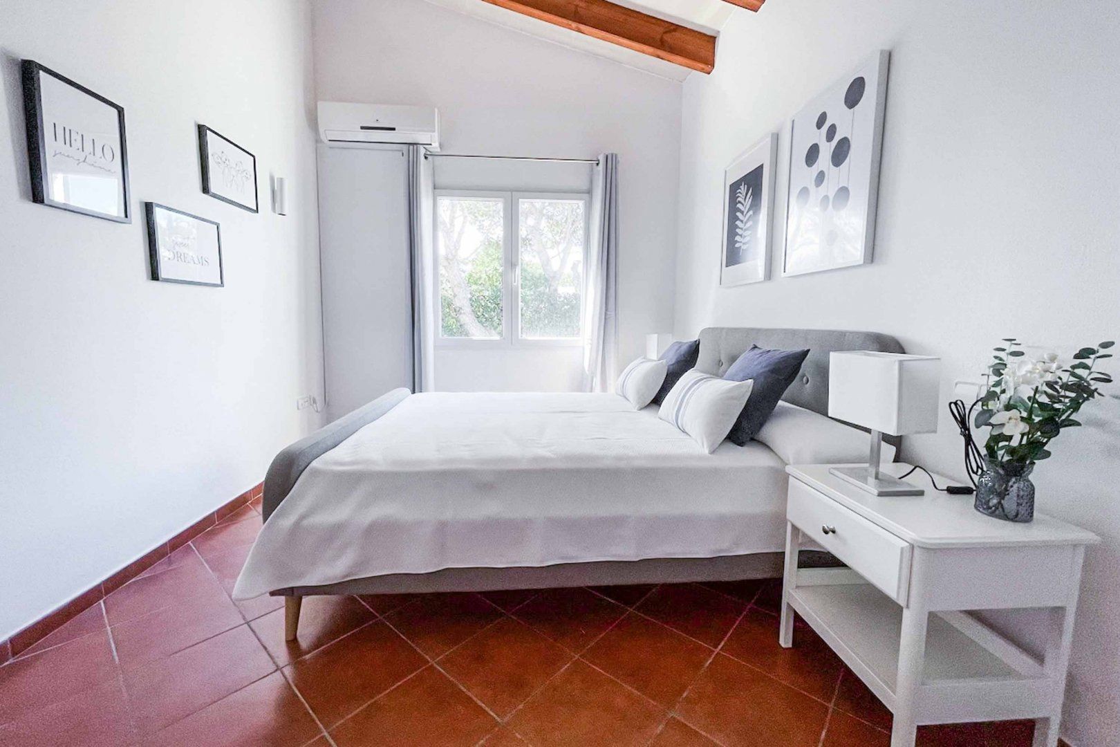 Just a twenty-minute scenic walk from Cala'n Bosch Marina, with an array of local bars and restaurants, wild swimming opportunities, coves and a sandy beach (a little further along) – this spot offers the perfect base for a seaside escape. Presenting a Spanish farmhouse vibe with modern home furnishings for optimal comfort and practicality, the villa is ideal for a family or group of friends. Best of all, it has its own swimming pool alongside a barbecue and a sheltered pergola dining area. Conveniently, you'll find the nearest supermarket just a five-minute walk away, where you can pick up the essentials and a bus stop for a quicker route into town.