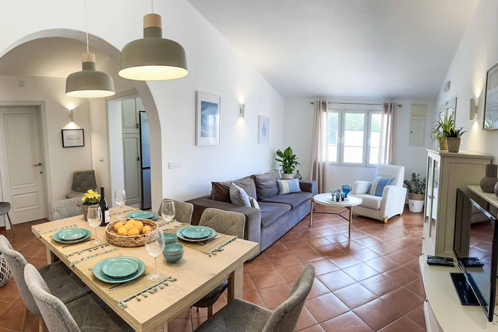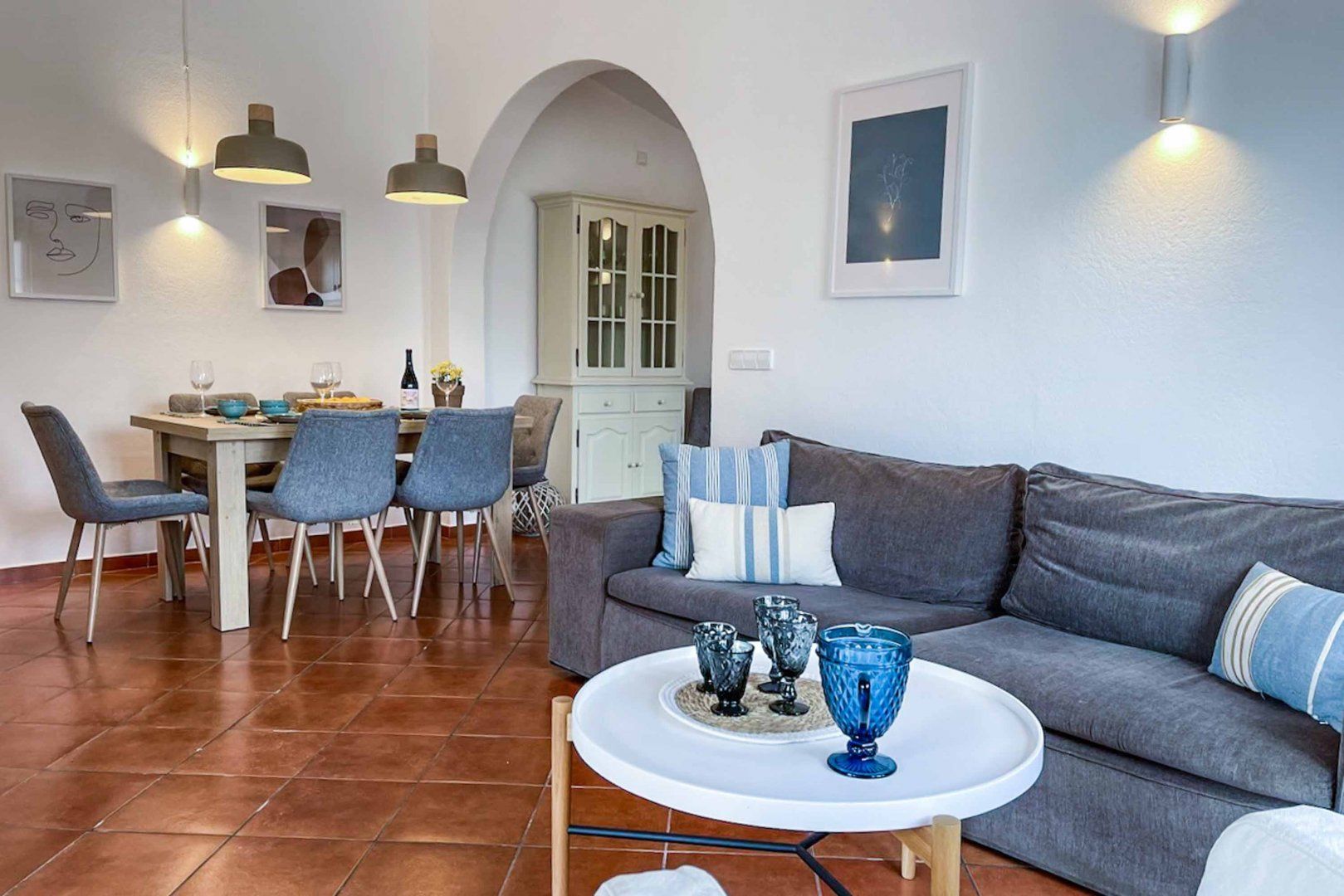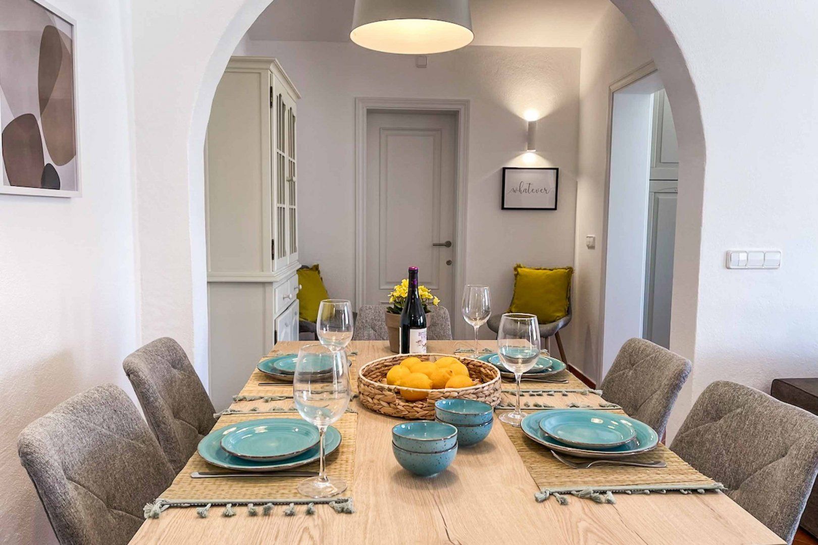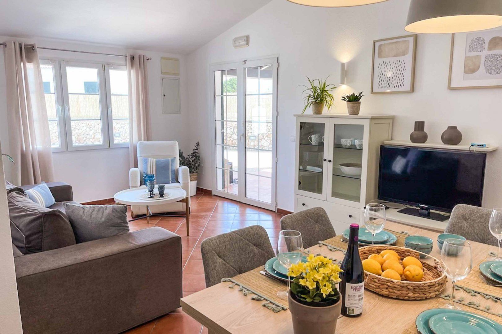 Just a twenty-minute scenic walk from Cala'n Bosch Marina, with an array of local bars and restaurants, wild swimming opportunities, coves and a sandy beach (a little further along) – this spot offers the perfect base for a seaside escape. Presenting a Spanish farmhouse vibe with modern home furnishings for optimal comfort and practicality, the villa is ideal for a family or group of friends. Best of all, it has its own swimming pool alongside a barbecue and a sheltered pergola dining area. Conveniently, you'll find the nearest supermarket just a five-minute walk away, where you can pick up the essentials and a bus stop for a quicker route into town.