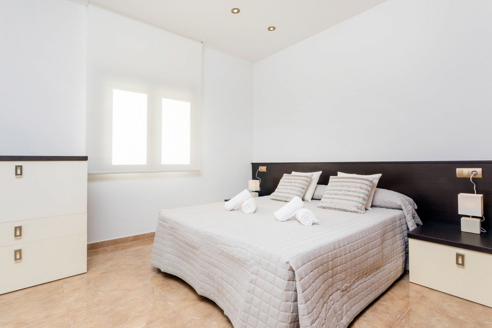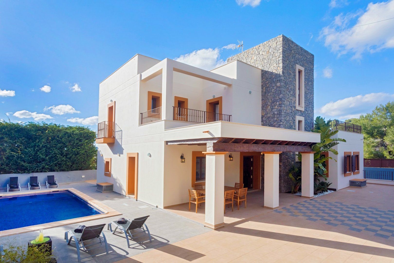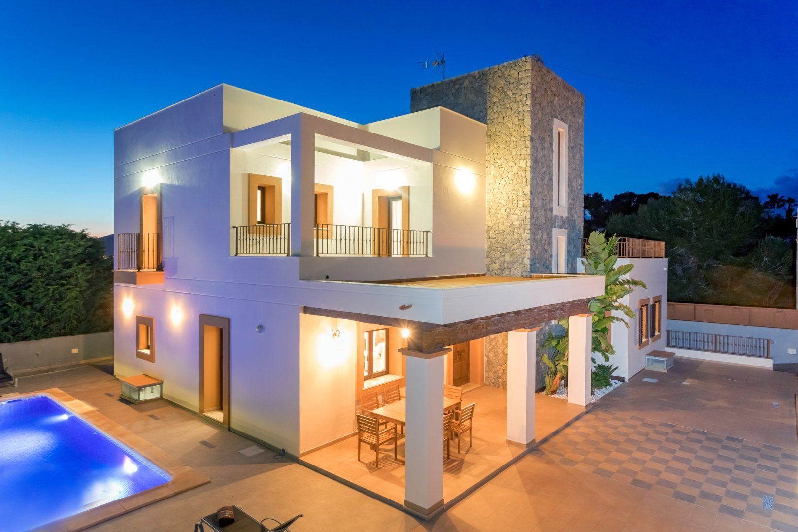 This modern villa is a delightful home located just a short walk from Talamanca beach. After a day strolling the marina or experiencing the vibrancy of Ibiza Town, this is just the welcoming retreat you need away from the hustle and bustle. Enjoy a late-night swim in the private pool, which is beautifully lit in the evenings – the most tranquil way to finish the day. Pour yourself a chilled glass of wine and put your feet up on the sofa, relaxing the night away. When sleepiness sets in and you’re ready for some shut-eye, draw the drapes and climb under your crisp white sheets and you’ll drift off into a dreamy sleep.