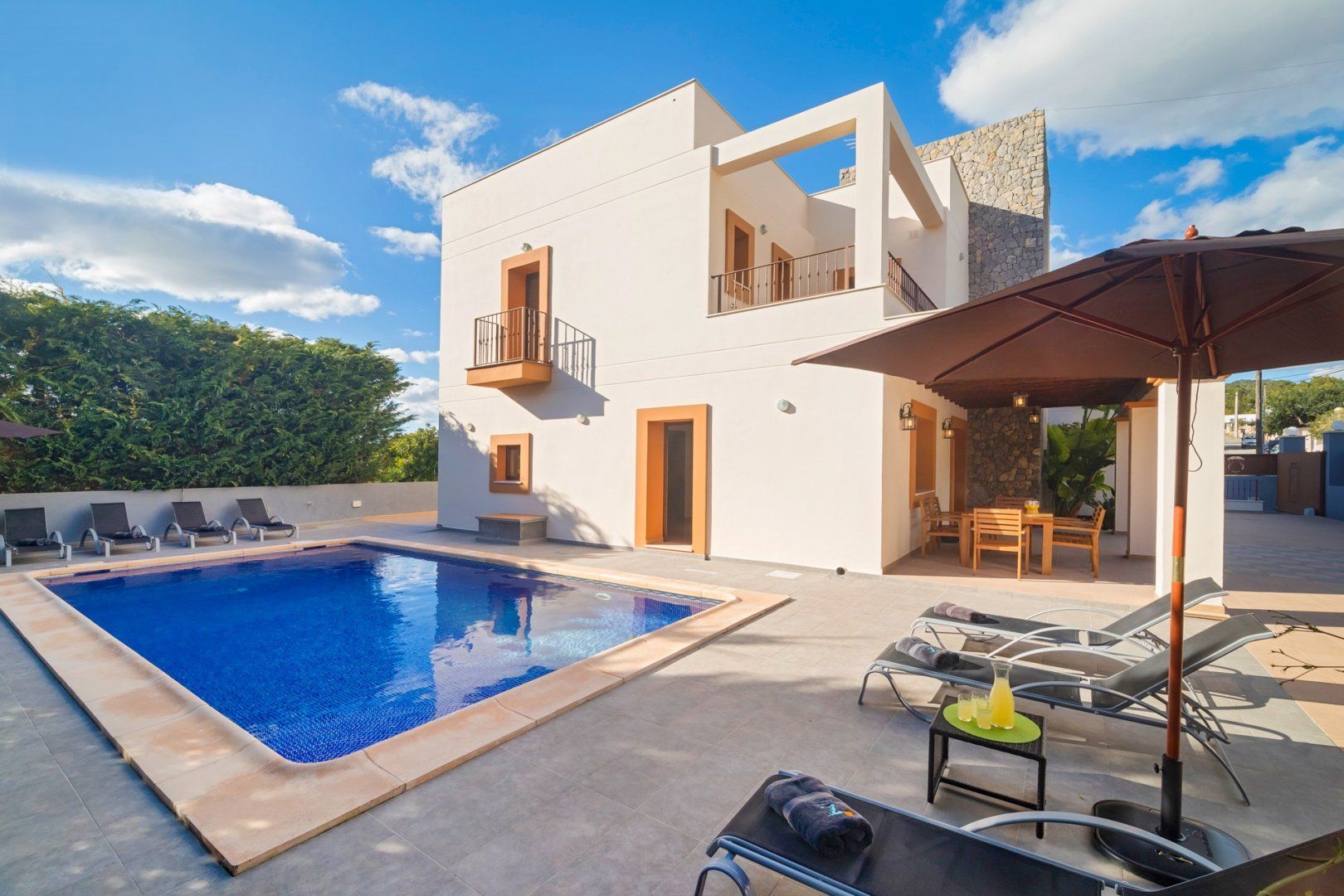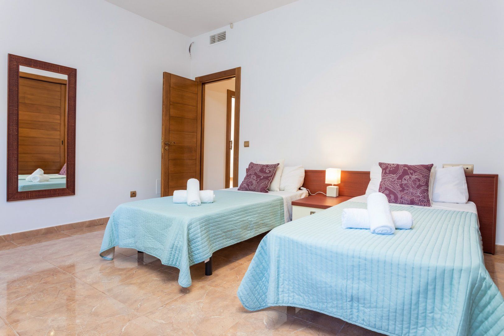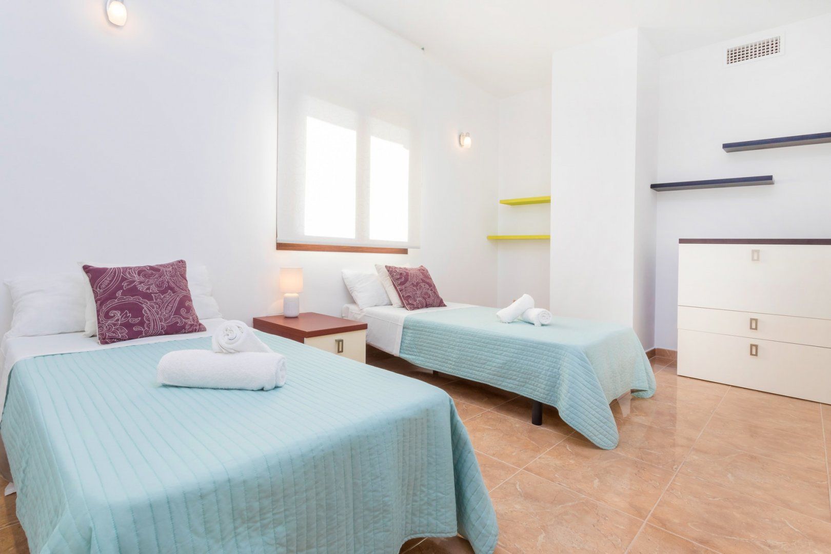 This modern villa is a delightful home located just a short walk from Talamanca beach. After a day strolling the marina or experiencing the vibrancy of Ibiza Town, this is just the welcoming retreat you need away from the hustle and bustle. Enjoy a late-night swim in the private pool, which is beautifully lit in the evenings – the most tranquil way to finish the day. Pour yourself a chilled glass of wine and put your feet up on the sofa, relaxing the night away. When sleepiness sets in and you’re ready for some shut-eye, draw the drapes and climb under your crisp white sheets and you’ll drift off into a dreamy sleep.