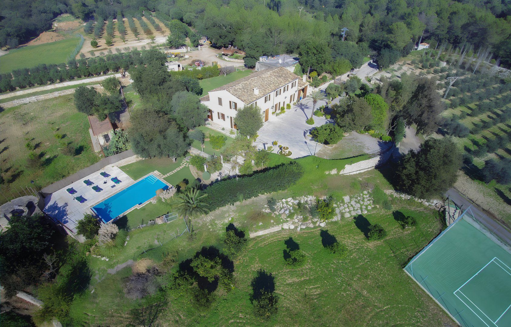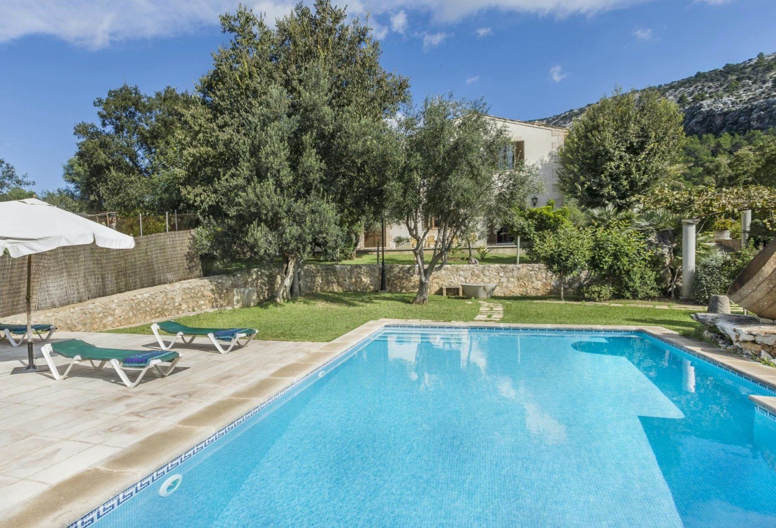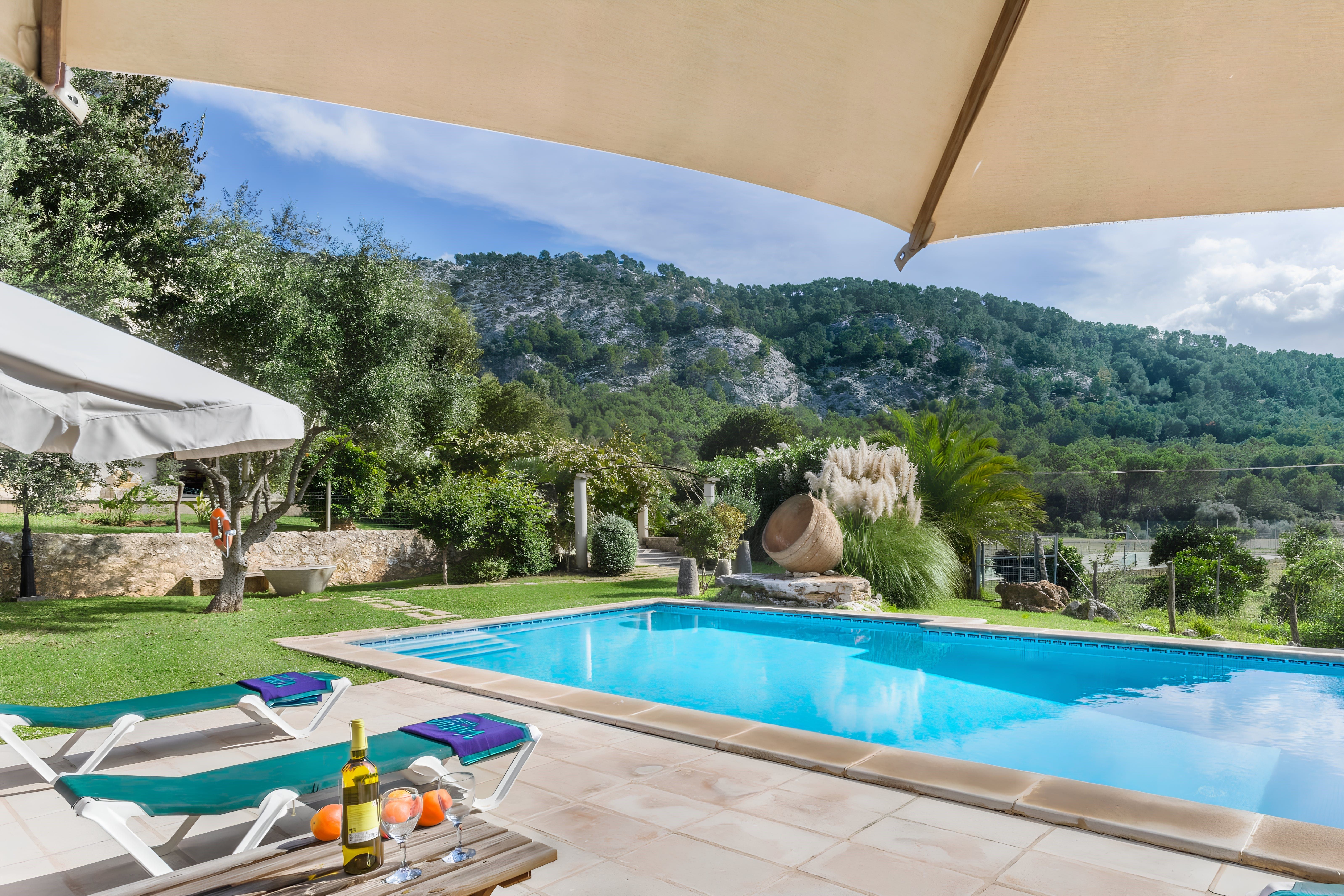 Formerly an olive farm – this traditional Mallorcan finca has beautiful rural views from its extensive private grounds. There’s a hot tub, sauna and tennis court, as well as a large private swimming pool with Roman steps. Inside, it’s all you’d expect from a finca – there are high beamed ceilings, exposed stonework, and antique furnishings. The estate is located just a ten to fifteen-minute drive from Pollença with its array of restaurants, bars and boutiques. There are plenty of paths meandering through the countryside as well as cycling trails and a golf course nearby. The sandy beaches such as Port de Pollença, Bahia d'Alcúdia and Cala San Vicenç are also around fifteen minutes in the car.