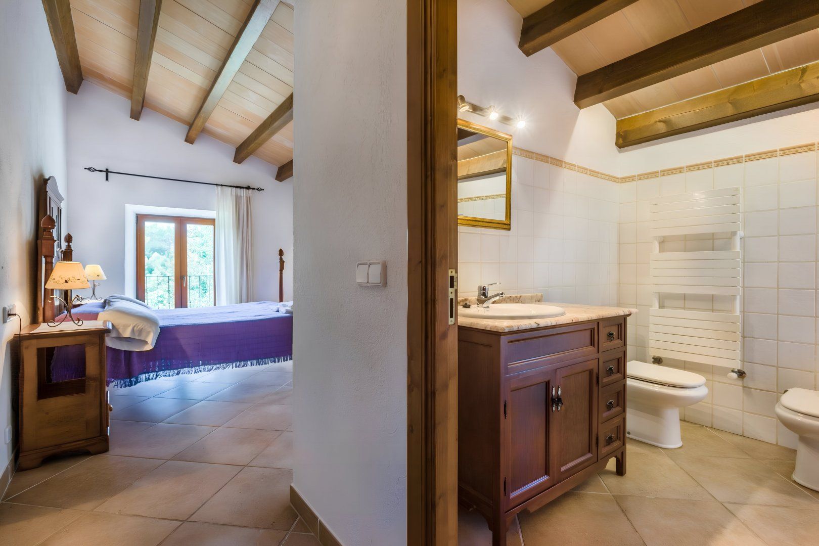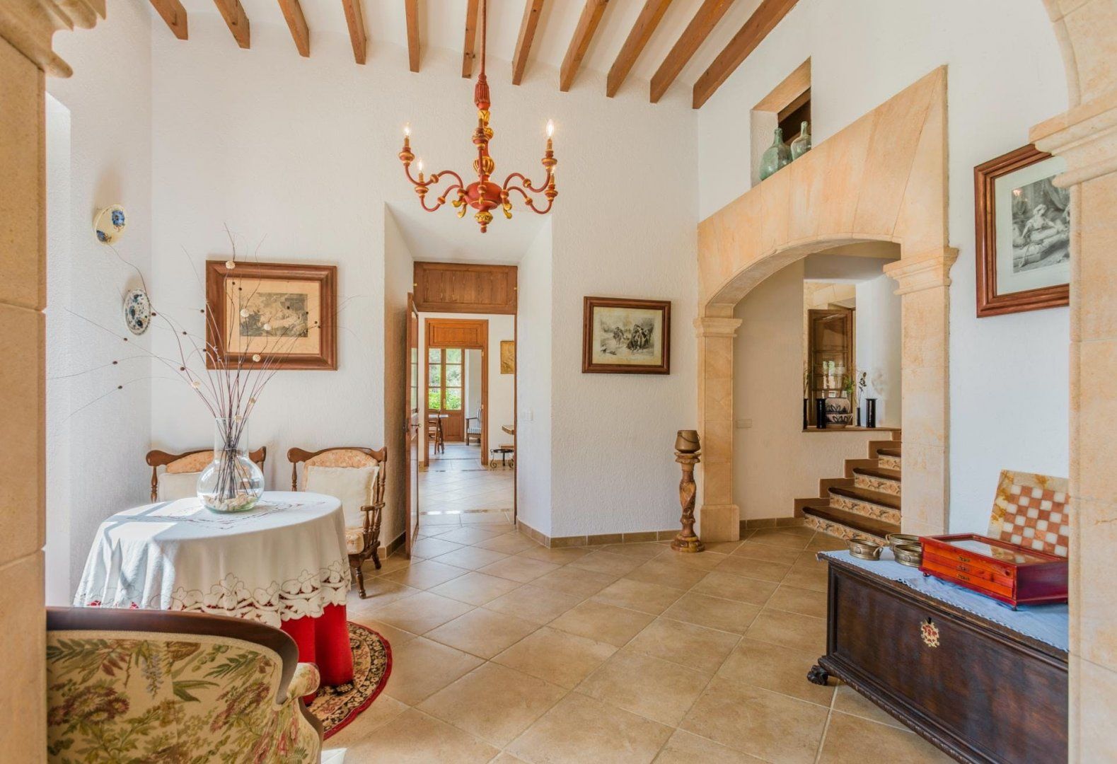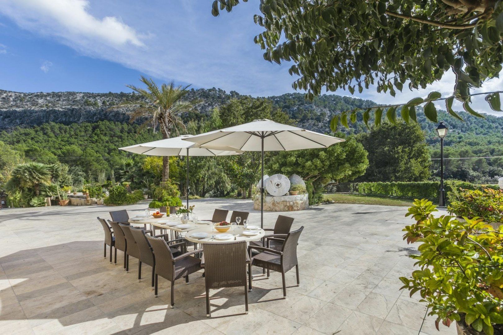 Formerly an olive farm – this traditional Mallorcan finca has beautiful rural views from its extensive private grounds. There’s a hot tub, sauna and tennis court, as well as a large private swimming pool with Roman steps. Inside, it’s all you’d expect from a finca – there are high beamed ceilings, exposed stonework, and antique furnishings. The estate is located just a ten to fifteen-minute drive from Pollença with its array of restaurants, bars and boutiques. There are plenty of paths meandering through the countryside as well as cycling trails and a golf course nearby. The sandy beaches such as Port de Pollença, Bahia d'Alcúdia and Cala San Vicenç are also around fifteen minutes in the car.