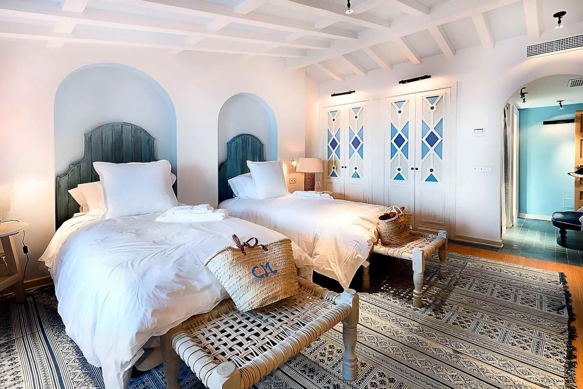 Nestled within the Tramuntana mountains, this stylish villa gazes out across the Mediterranean. Inside, it's bright and breezy, with a nautical colour palette, arched doorways and big windows framing dramatic views. But it's the gardens that steal the show. Spend blissful days dining alfresco on the patio, sipping sunset cocktails in the outdoor lounge and lounging by the saltwater swimming pool. As for the location, Deià, one of Mallorca's prettiest villages, is five minutes away, with the beach just beyond.