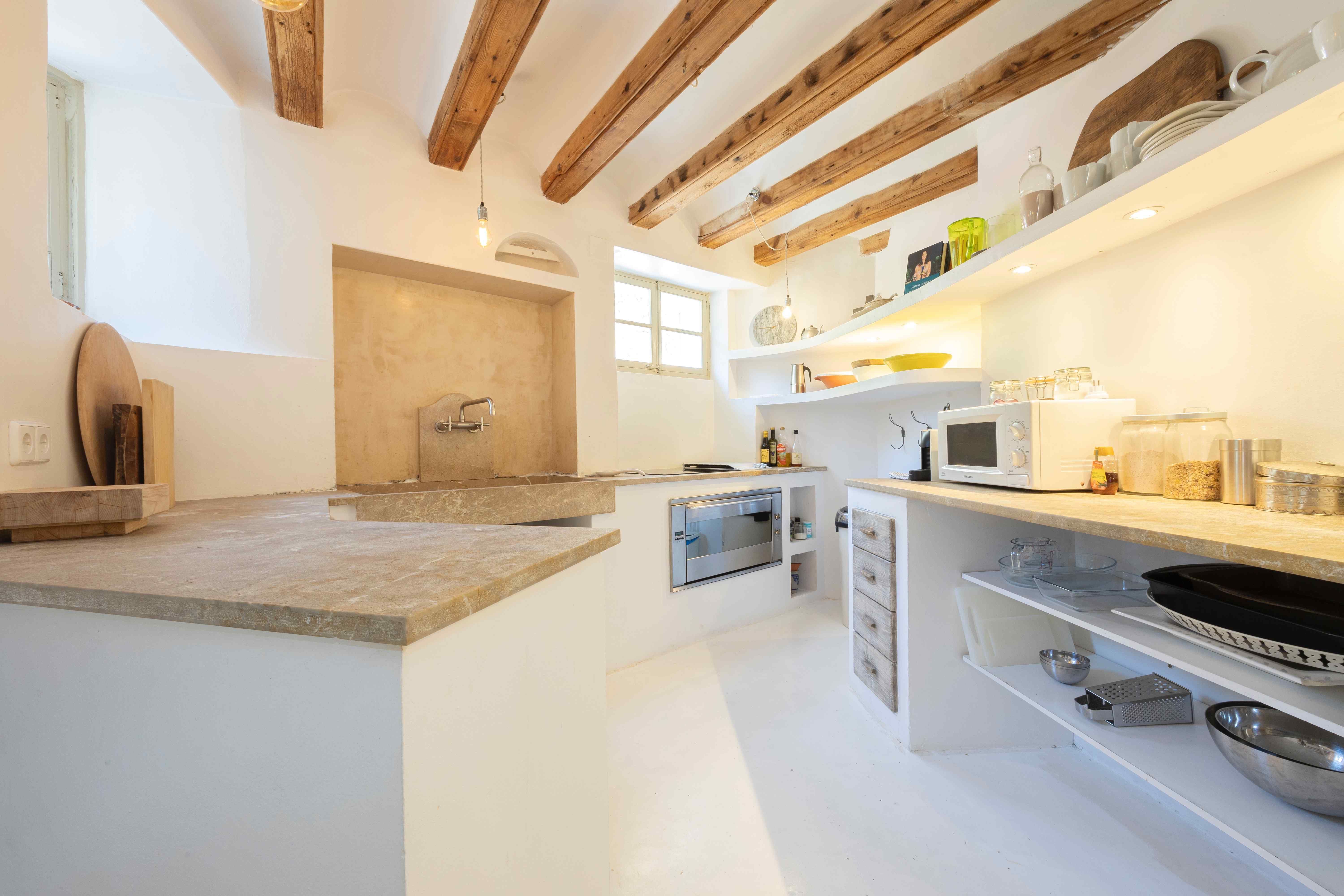 Occupying a privileged spot in the heart of Deià, this 300 year old home welcomes you to an unforgettable island escape. Outside, you can stroll to cafes and restaurants, while the nearest beaches are a short drive away. It’s worth noting there is no private parking available here, but street-parking is available. You’ll also have access to a private salt water pool, a serene garden and an outdoor kitchen with a barbecue. Inside, the rooms are elegant, calm and well suited to families. There is also a piano in the second sitting room – perfect for music lovers.