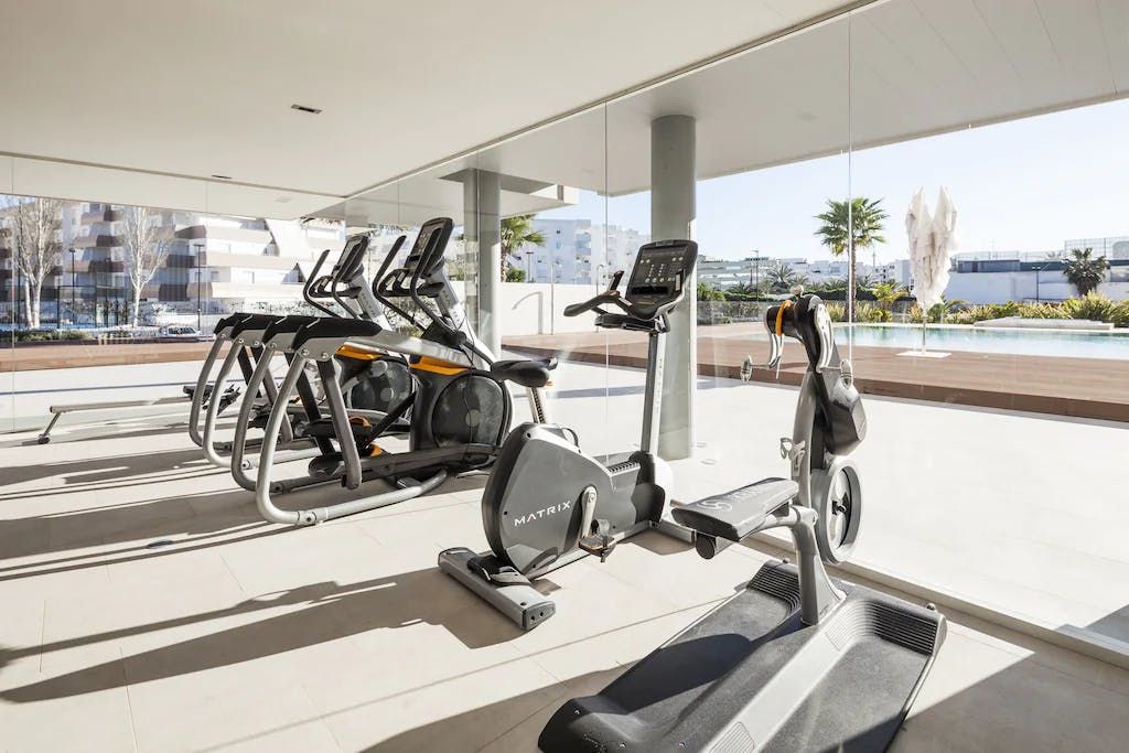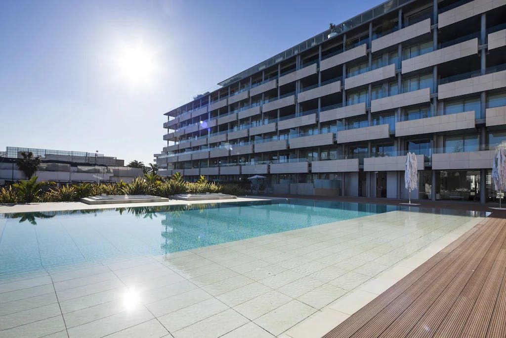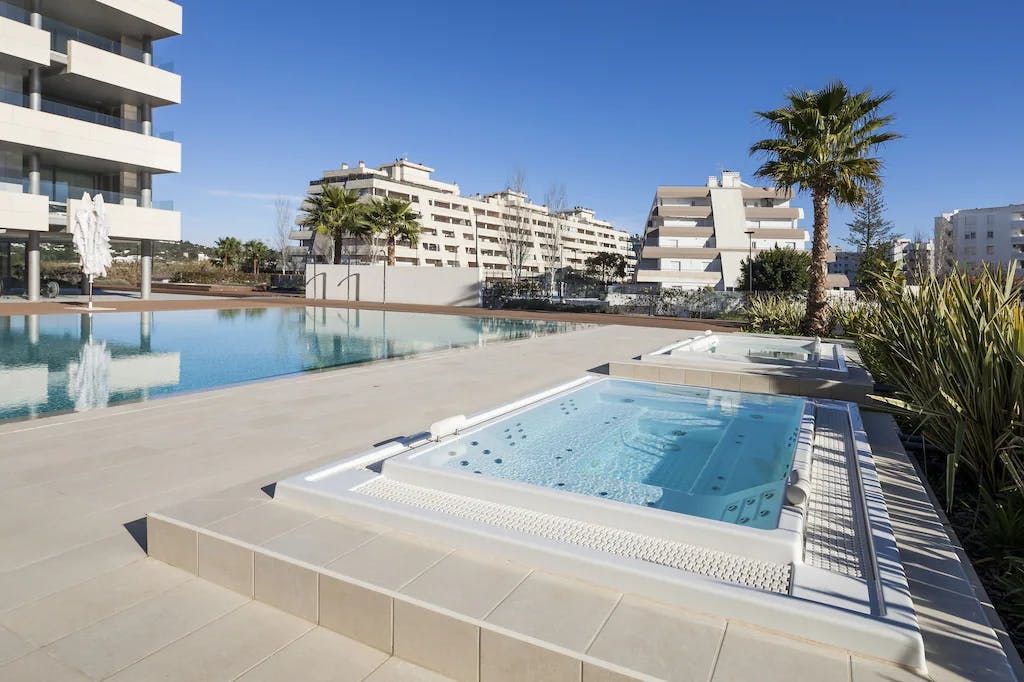 With mid-century-inspired furniture, a minimalist white colour scheme and fully retractable glass walls, this home is Ibiza in microcosm. A gorgeous balcony is a perfect place to sip your morning coffee as you look out over the communal facilities, including a pool, three Jacuzzis, a poolside bar, a state-of-the-art gym and beautifully landscaped gardens.
