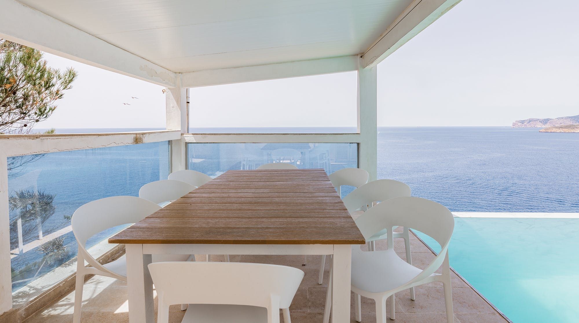 Perched on a cliff just outside of Port Adriano, this impressive home has to be seen to be believed. Boasting an infinity pool, floor-to-ceiling windows, and every amenity you could ask for, this home makes holidays to Mallorca extra special.