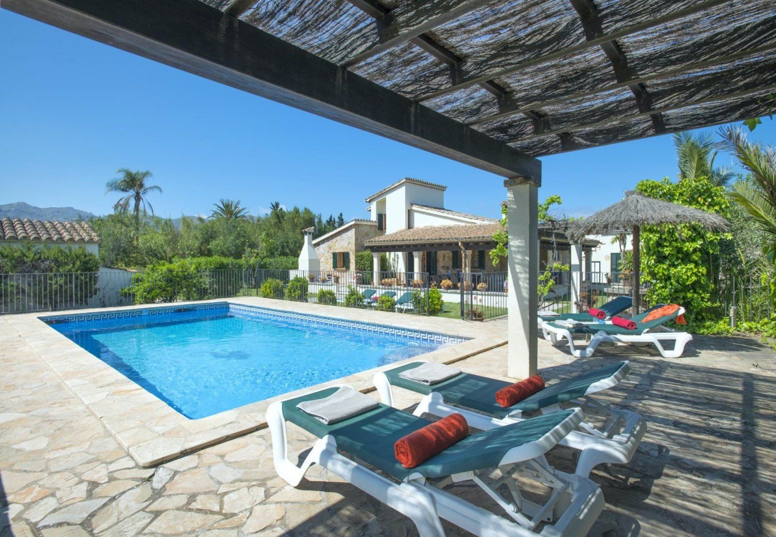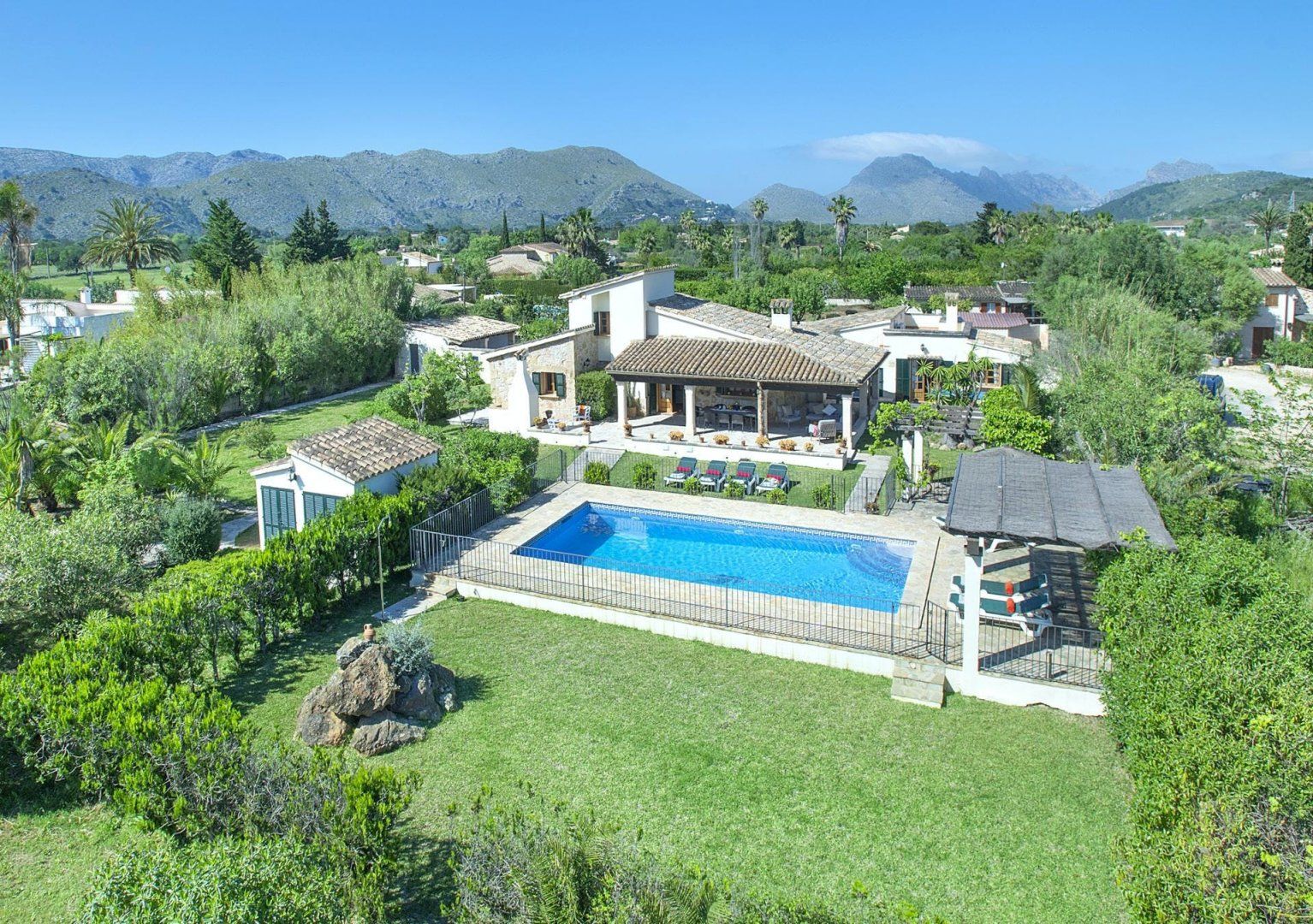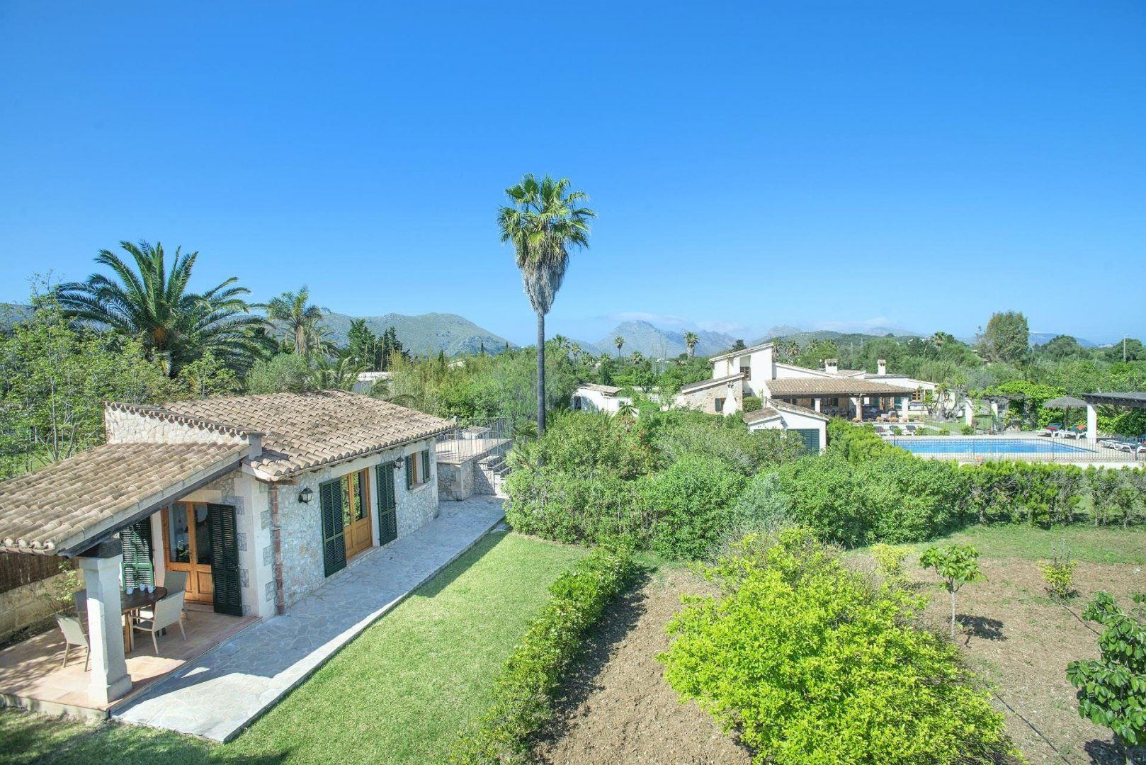 Situated between Pollença Old Town and Port de Pollença – this home’s location is the best of both worlds. With beautiful far-reaching rural vistas to the mountains, the garden and pool area is a great place to relax. Ideal for extended families, there’s a separate cabana with a double bedroom, en-suite shower room, small kitchenette, and terrace, separate from the main house. When you want to explore the area, Pollença Old Town with its variety of restaurants, shops, and cafes is an eight-minute drive, while Port de Pollença with its extensive sandy beach is eleven minutes by car.