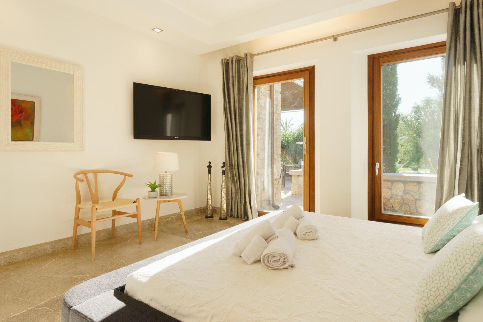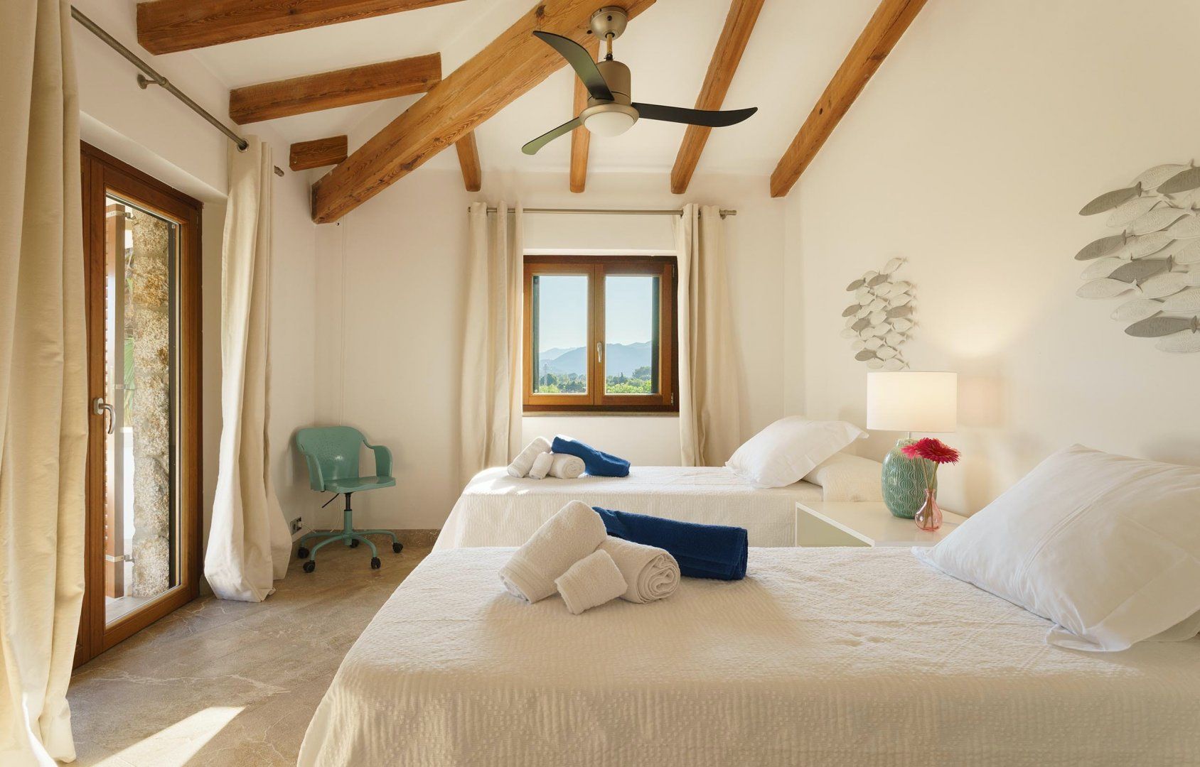 Located between the historic and charming town of Pollensa and the golden beaches of the Bay of Pollensa lies this beautiful country villa. Perfect for families and large groups, this home manages to keep an air of contemporary luxury about it while being equally as welcoming for children, with a playroom and safety measures including a fence around the luxurious heated pool. Start your morning with a workout at the well-equipped home gym, or sit out on the terrace with your morning coffee and enjoy the blissful tranquillity and total privacy that this home grants you, with its picturesque gardens lined by lavender and olive trees. The open-plan layout opens out into a large terrace with views of the countryside and mountains, making it the perfect spot for a family breakfast or an alfresco lunch from the barbecue. Whether your food is self-catered or prepared by a private chef — well, that part's up to you. For an extra taste of opulence at this home, you can ask your host to include some indulgences, including beauty treatments and amenities to lighten the load when it comes to holidaying with little ones or heading out to the beach.