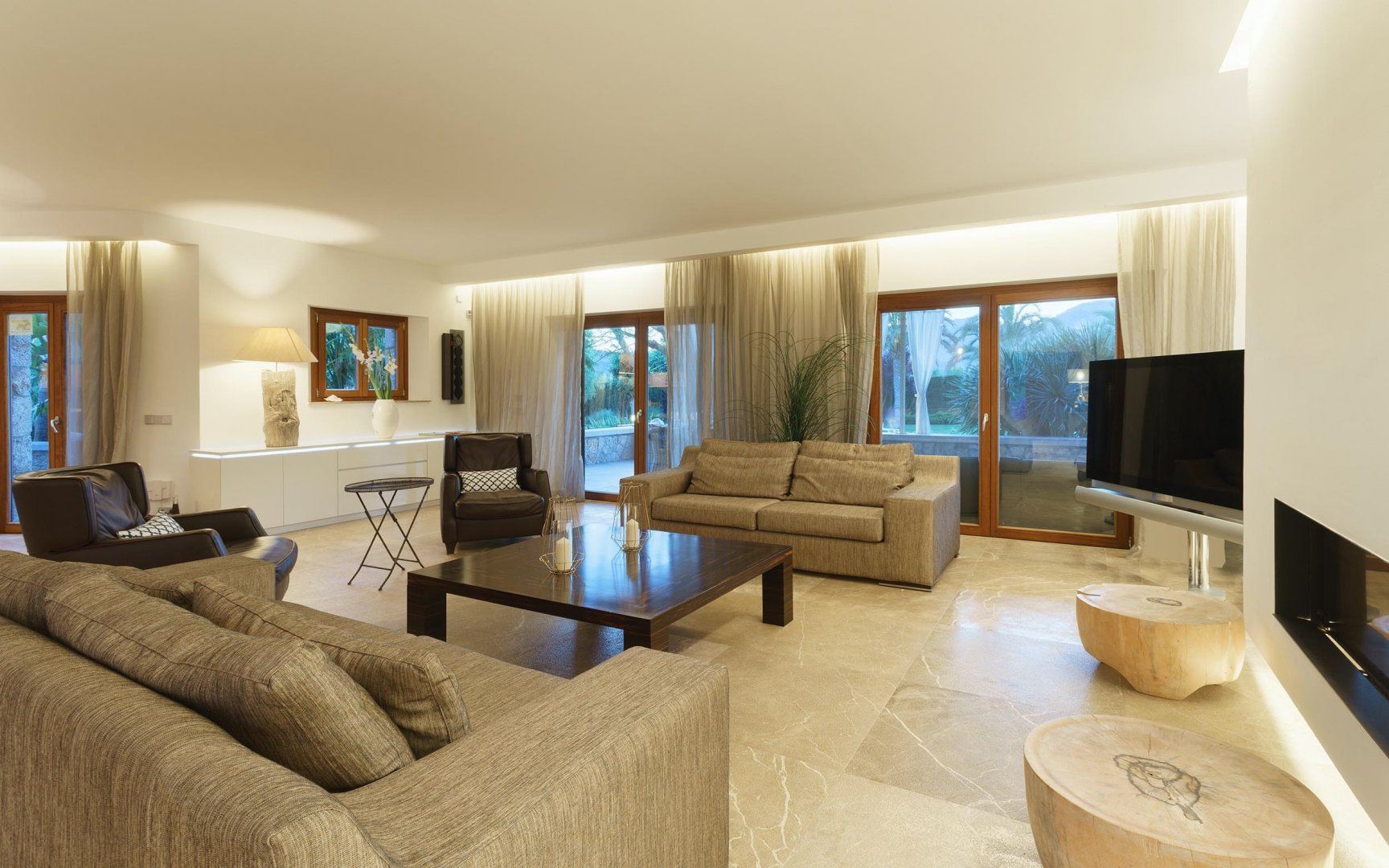 Speaking of the beach, you'll be within easy driving distance of the golden sands of Pollensa Bay, a paradise for those itching to get into some water sports — try diving or windsurfing, or hire a boat and have a day on the water. If something a little more traditional is more to your tastes, head into the charming, traditional town of Pollensa, where you can keep in shape on the golf course or head to one of the many wonderful restaurants to sample the local cuisine. Once you've had enough, gather in the living room while the fireplace roars and settle in for a cosy night with a movie.