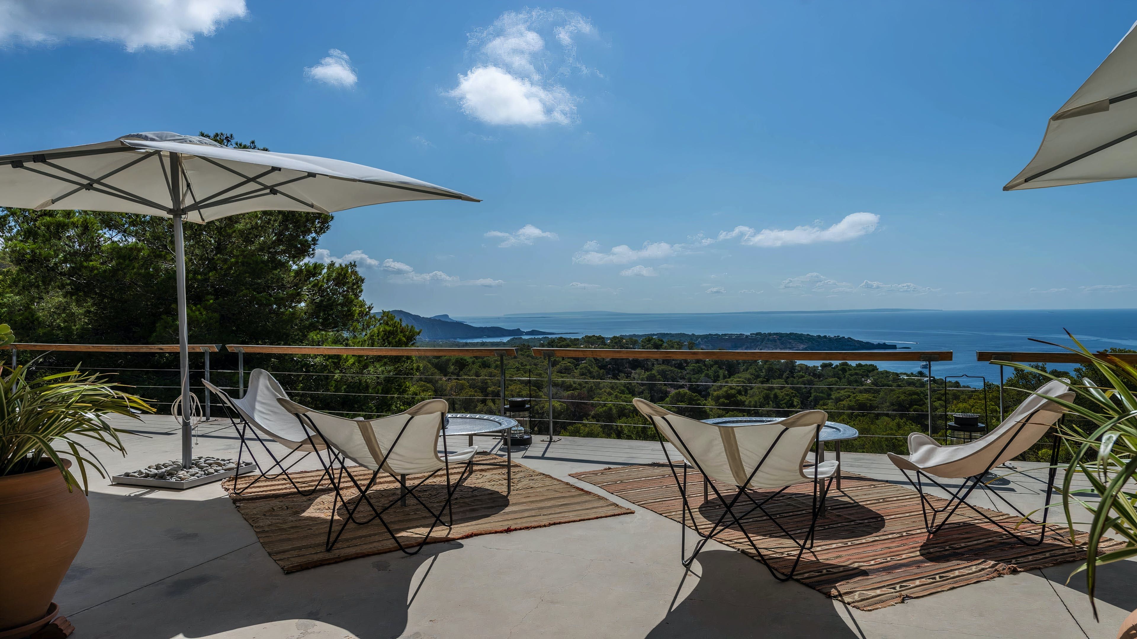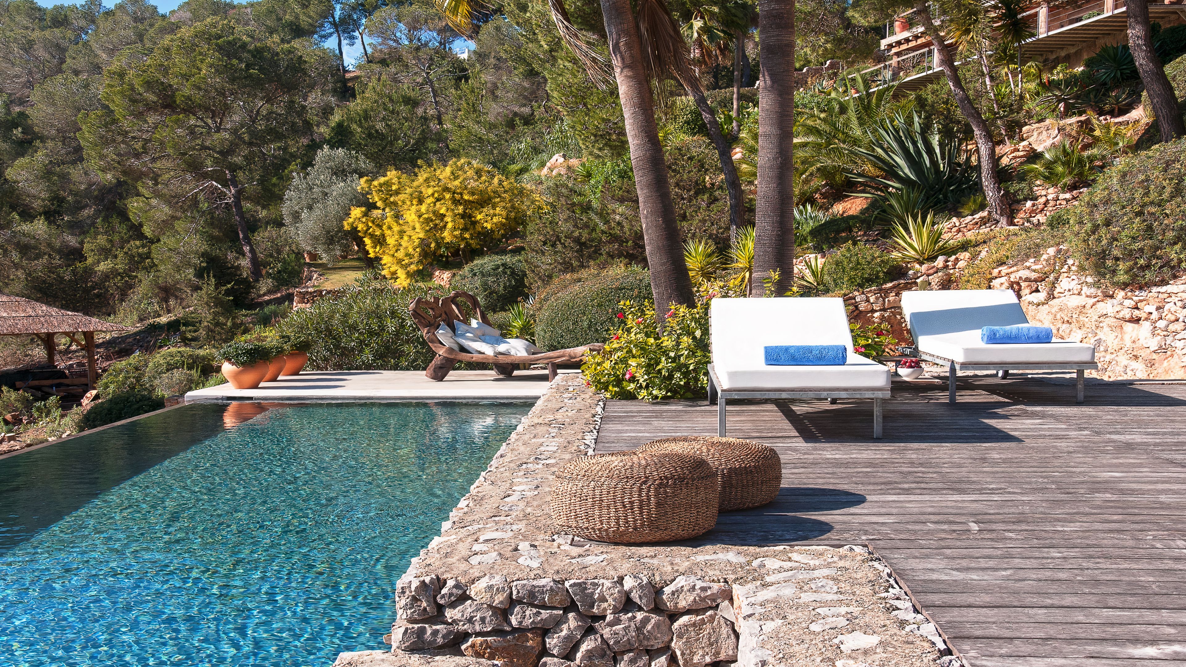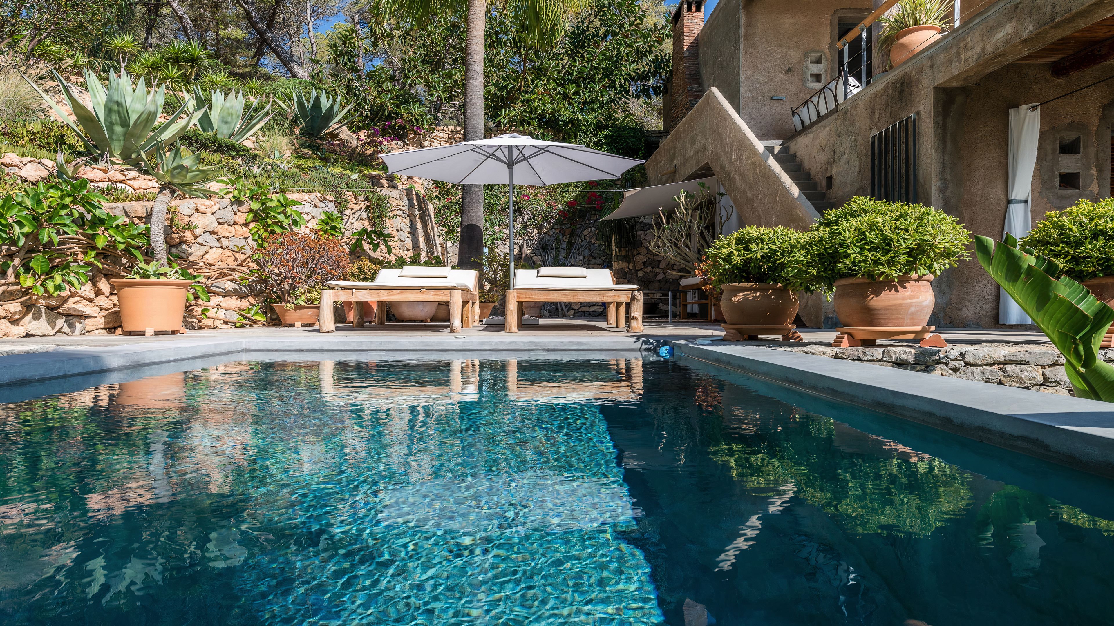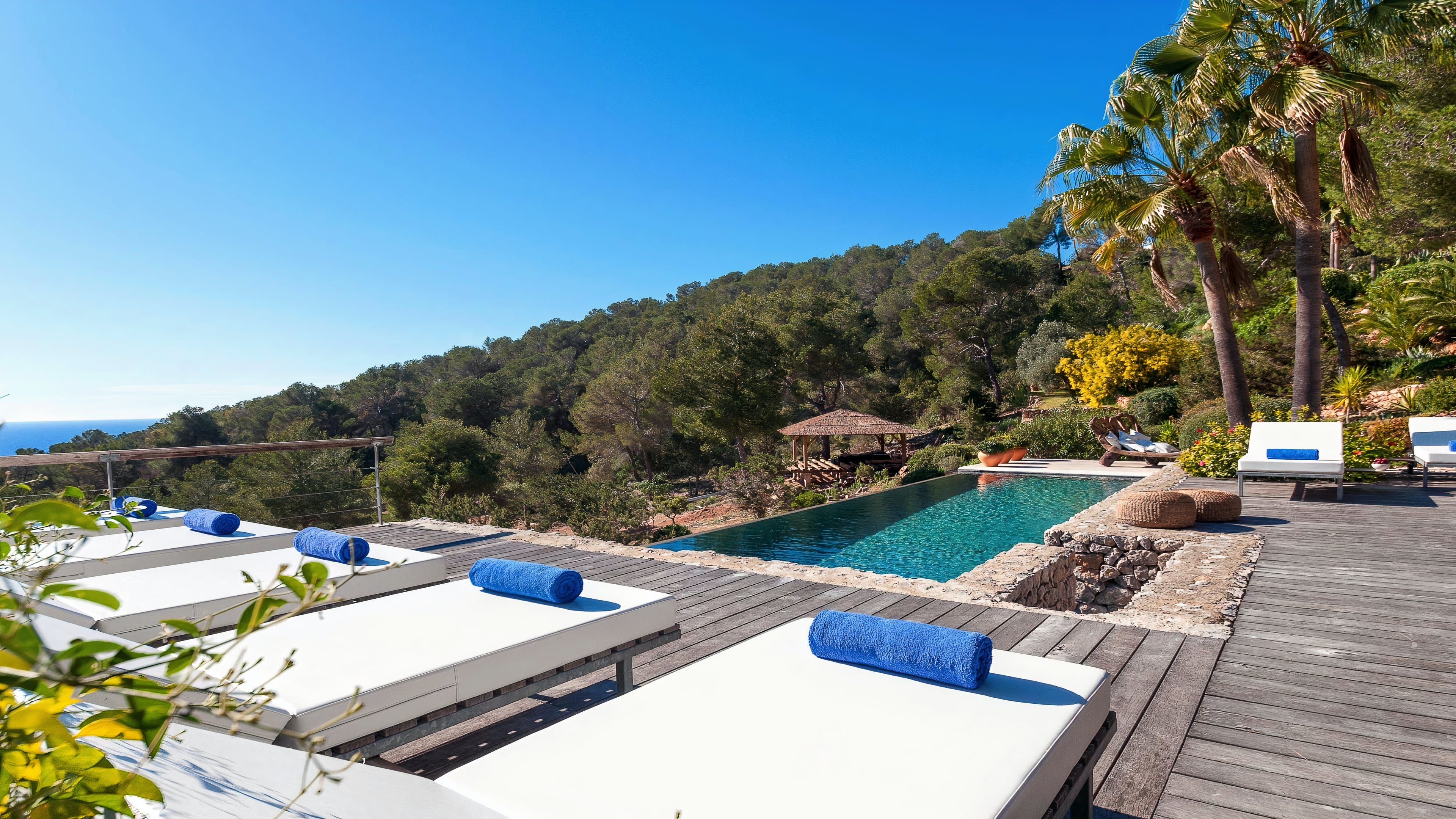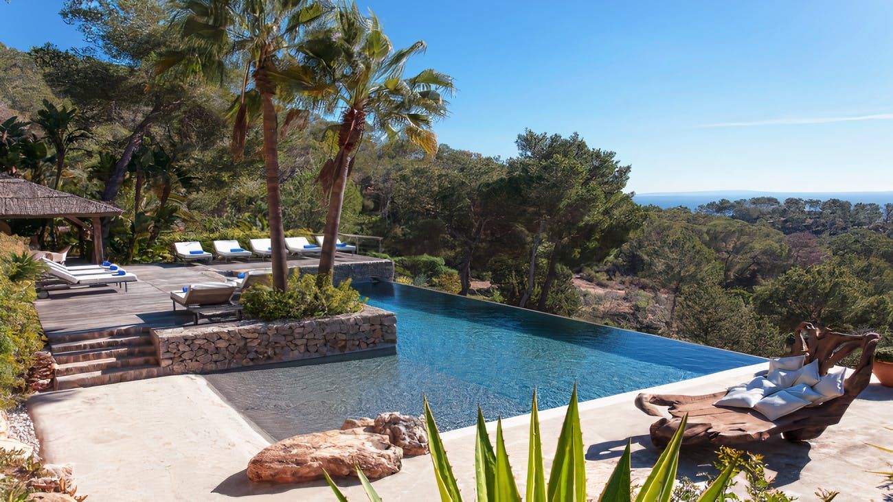 Set in a tranquil part of Ibiza, surrounded by forests and boasting stunning sea views, this elegant villa is a dream spot for a holiday with a family or a group of friends. You’ll enjoy total privacy here, with a huge garden, a private pool and a thermal Jacuzzi, and for guests wishing to seclude further, two of the bedrooms have their independent entrances too. You’ll need a car to reach the beaches and the nearest town of El Cubells, but it’s precisely the remote location which makes this home such a gem. If travelling with children, bear in mind that they’ll need to be supervised around the pool and the garden grounds.