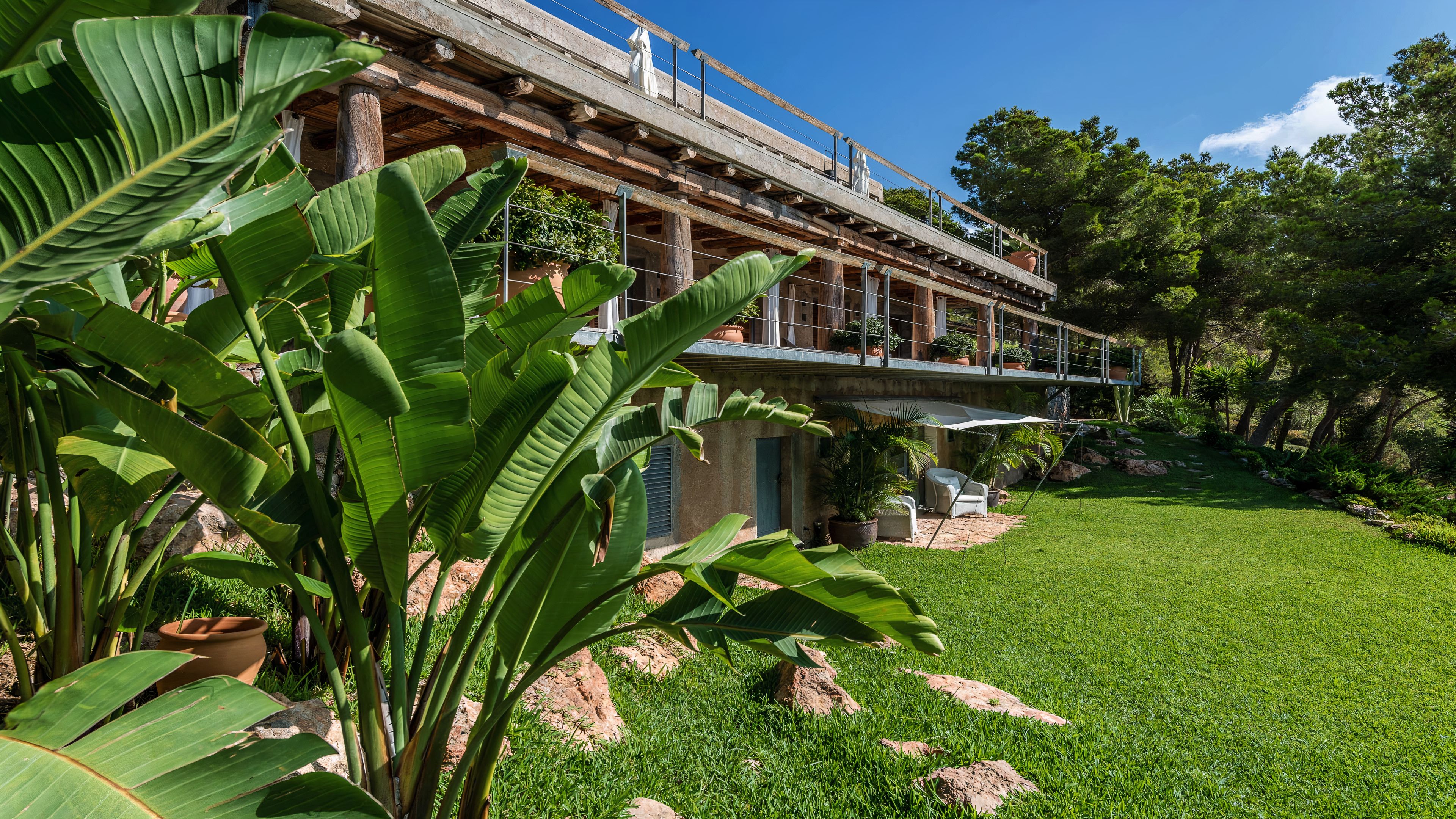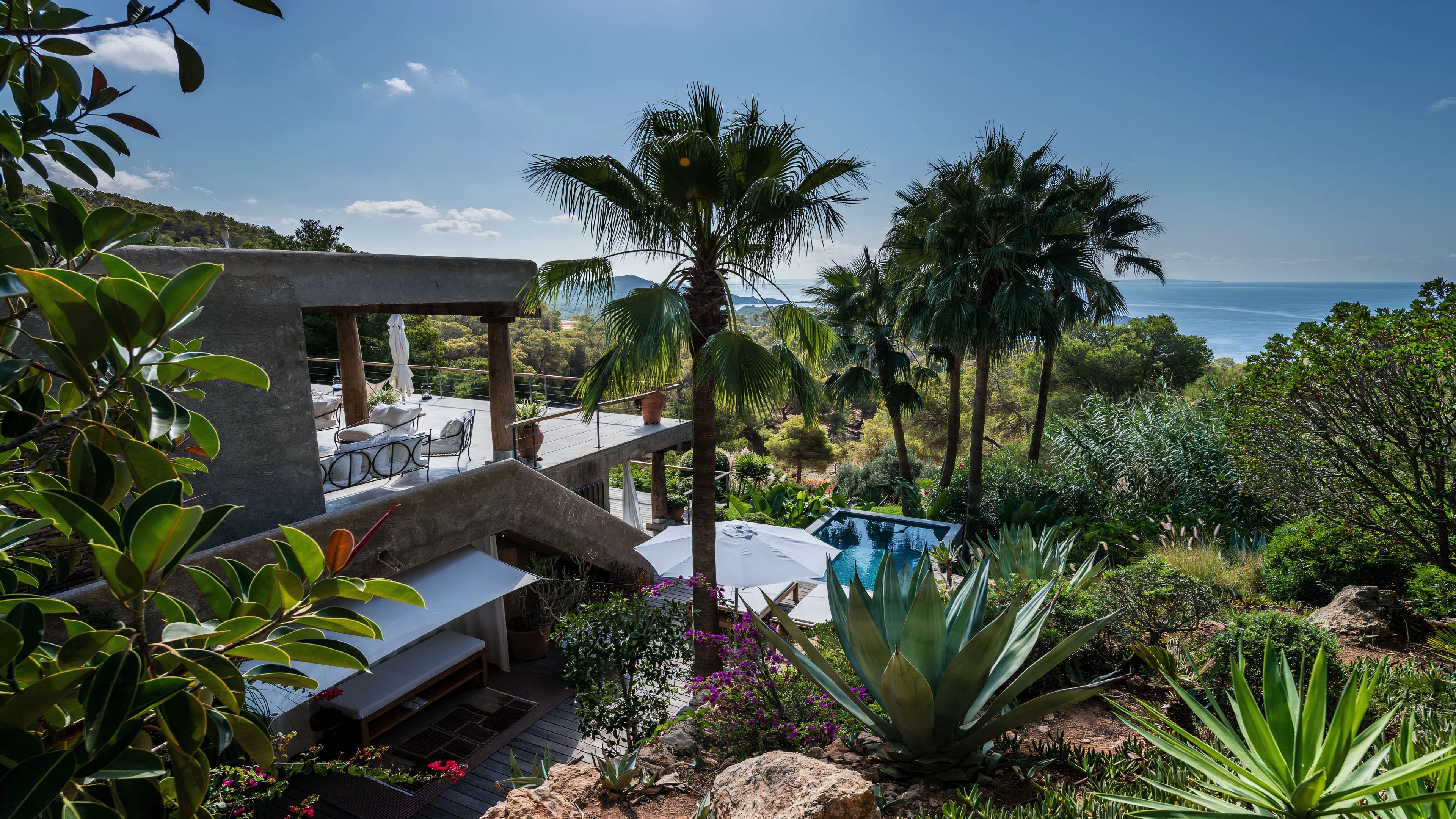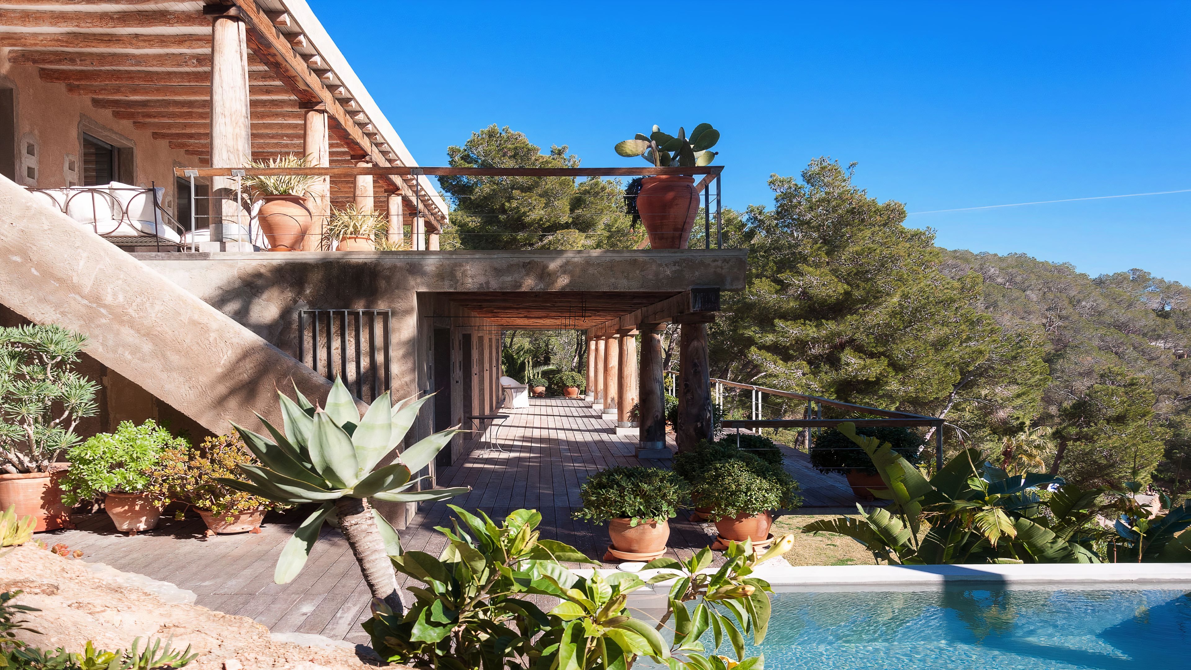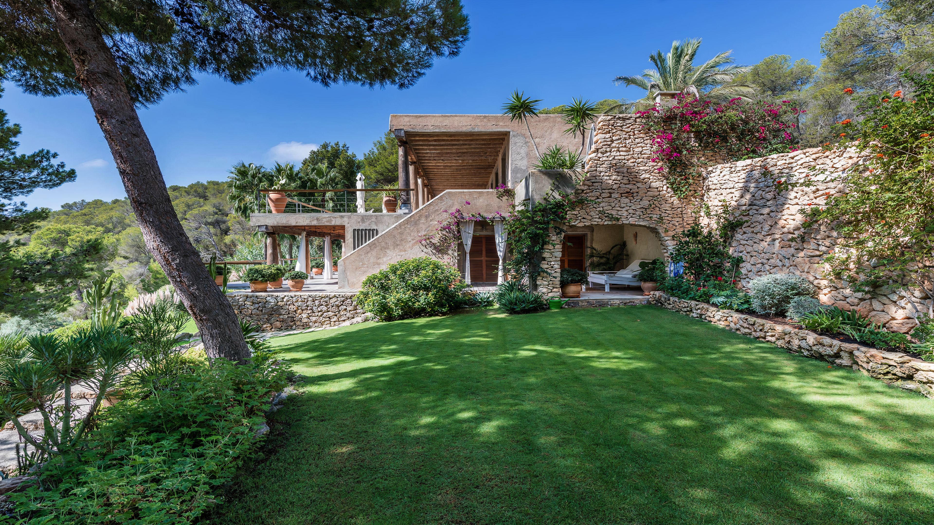 Set in a tranquil part of Ibiza, surrounded by forests and boasting stunning sea views, this elegant villa is a dream spot for a holiday with a family or a group of friends. You’ll enjoy total privacy here, with a huge garden, a private pool and a thermal Jacuzzi, and for guests wishing to seclude further, two of the bedrooms have their independent entrances too. You’ll need a car to reach the beaches and the nearest town of El Cubells, but it’s precisely the remote location which makes this home such a gem. If travelling with children, bear in mind that they’ll need to be supervised around the pool and the garden grounds.