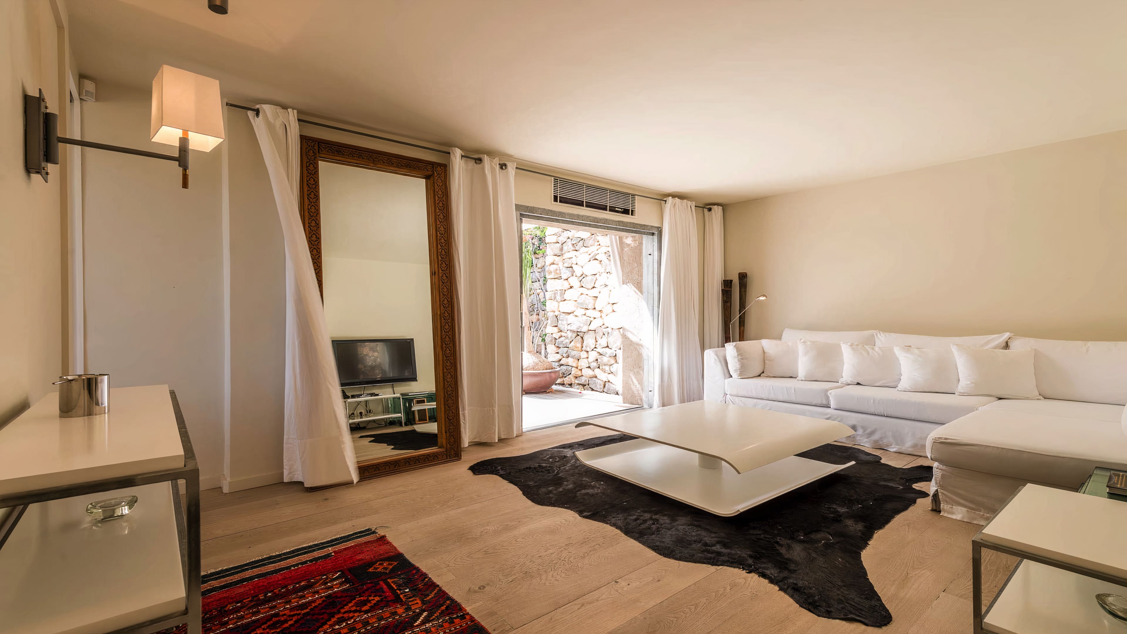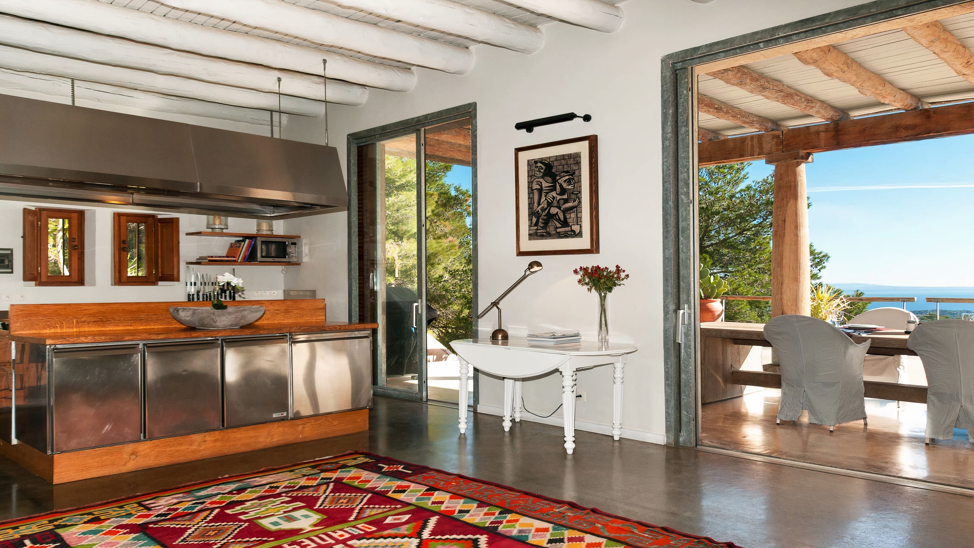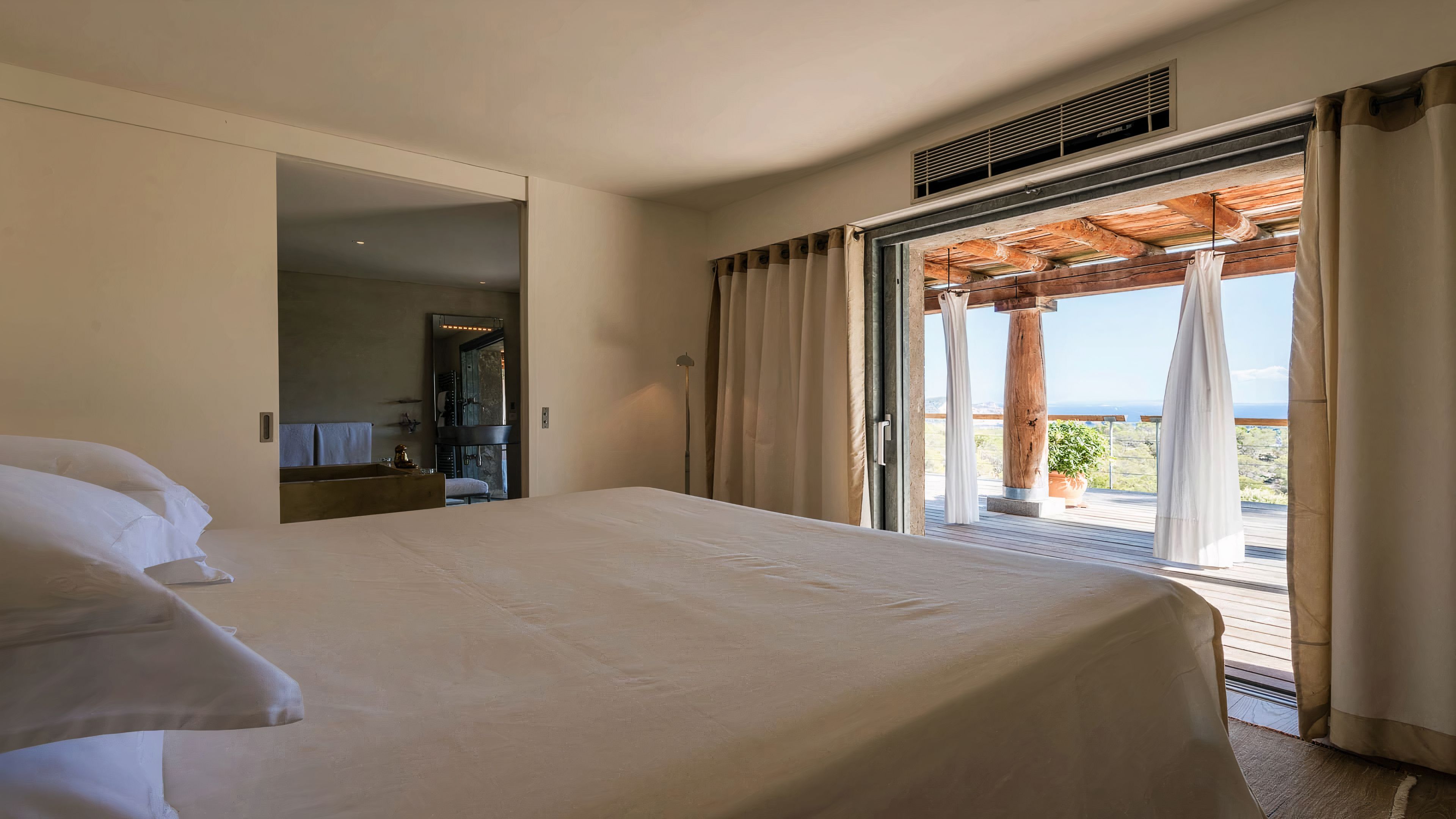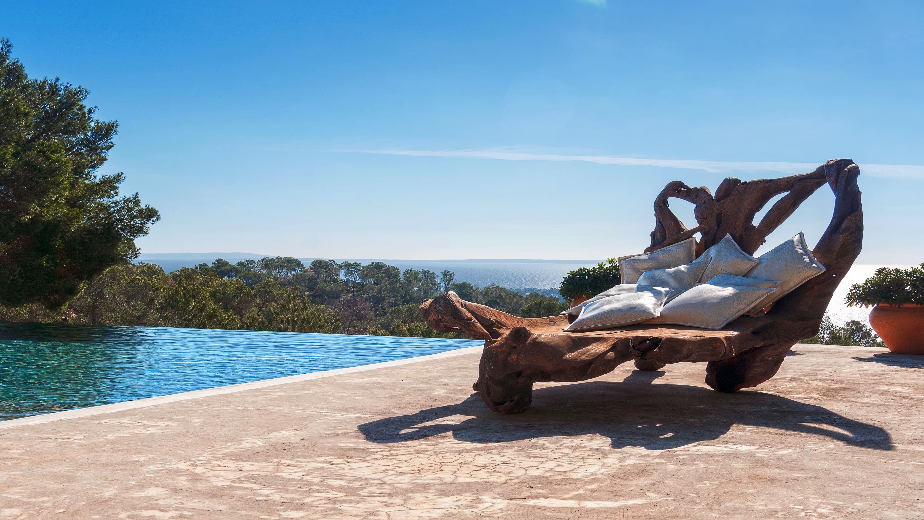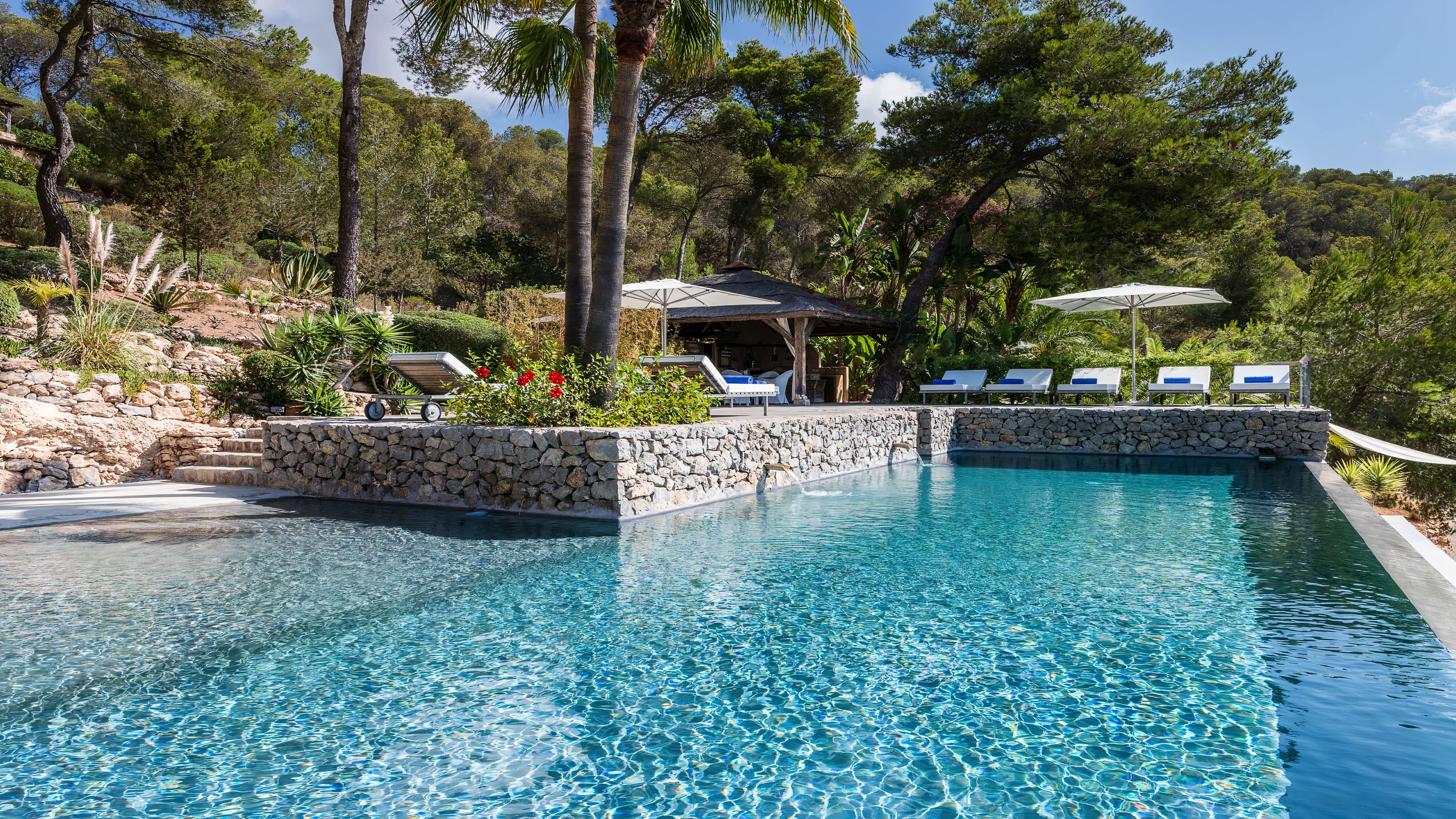 Set in a tranquil part of Ibiza, surrounded by forests and boasting stunning sea views, this elegant villa is a dream spot for a holiday with a family or a group of friends. You’ll enjoy total privacy here, with a huge garden, a private pool and a thermal Jacuzzi, and for guests wishing to seclude further, two of the bedrooms have their independent entrances too. You’ll need a car to reach the beaches and the nearest town of El Cubells, but it’s precisely the remote location which makes this home such a gem. If travelling with children, bear in mind that they’ll need to be supervised around the pool and the garden grounds.