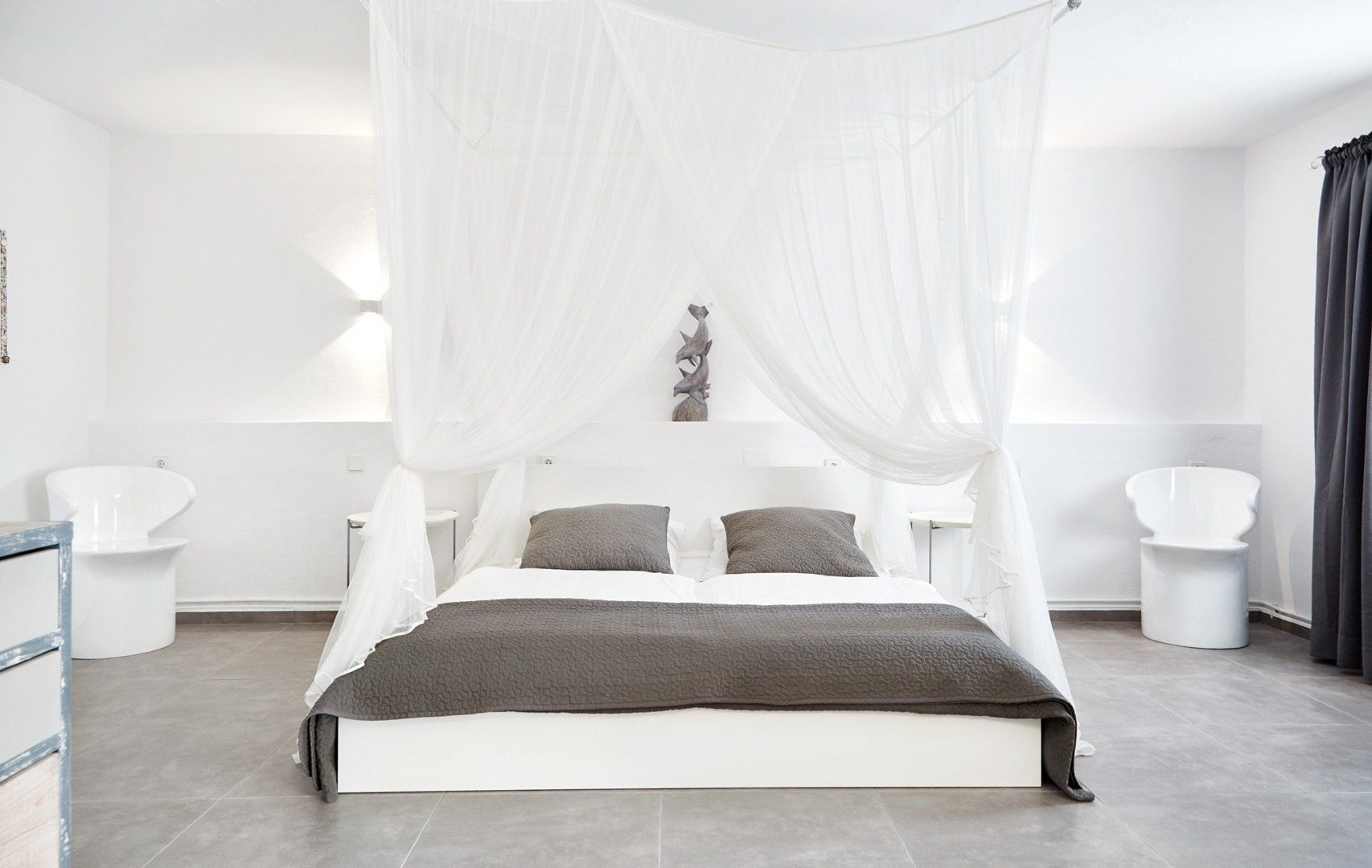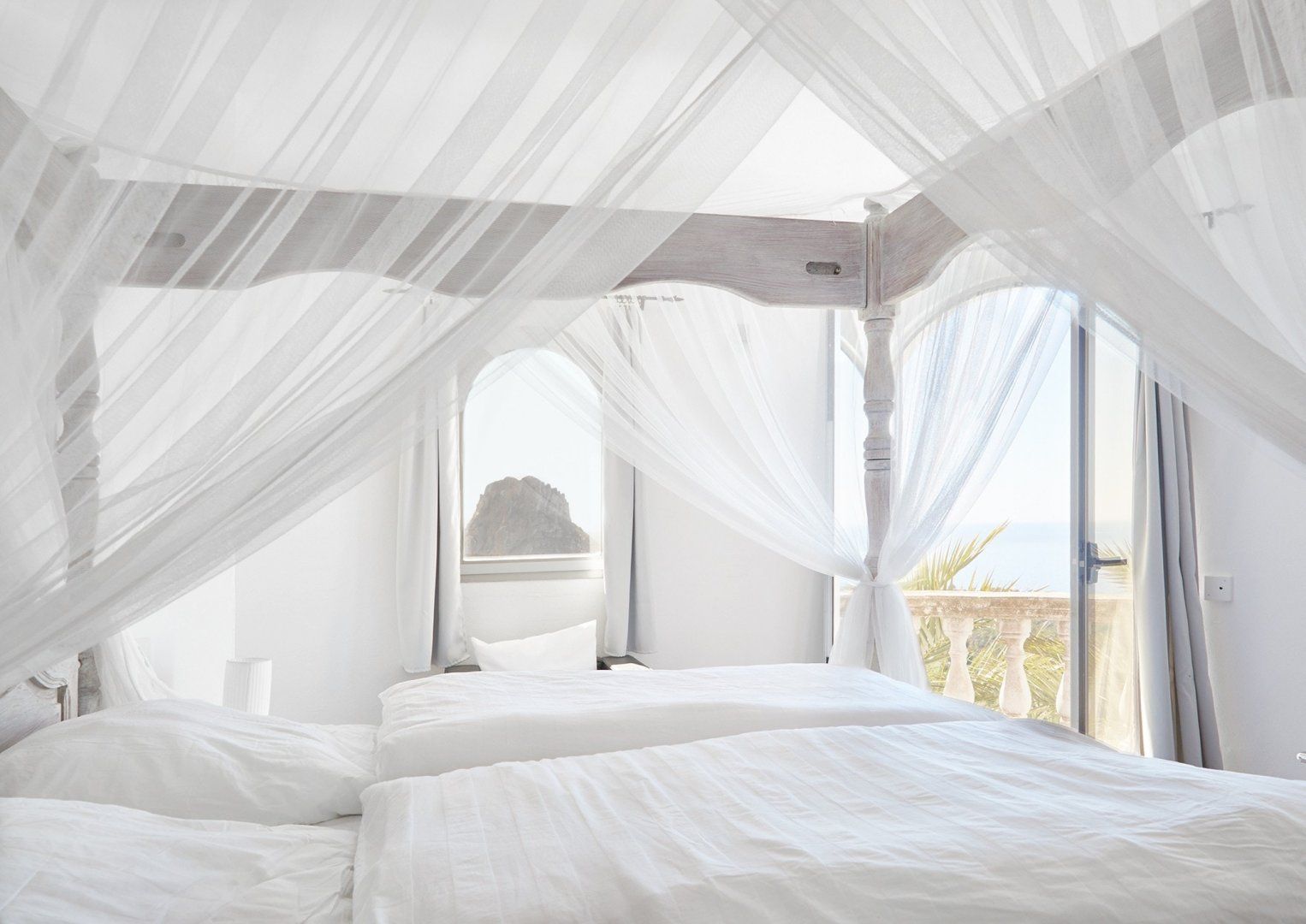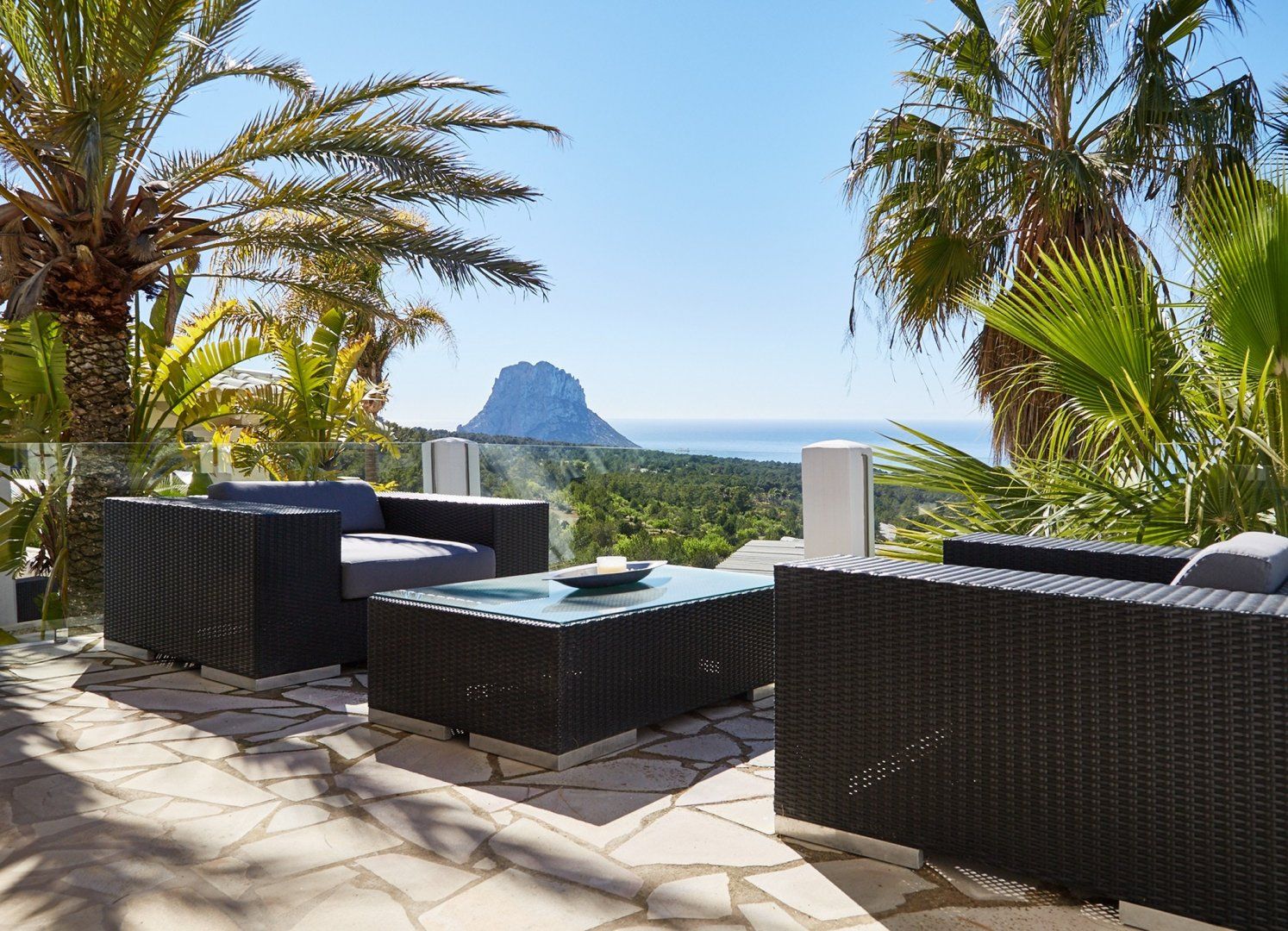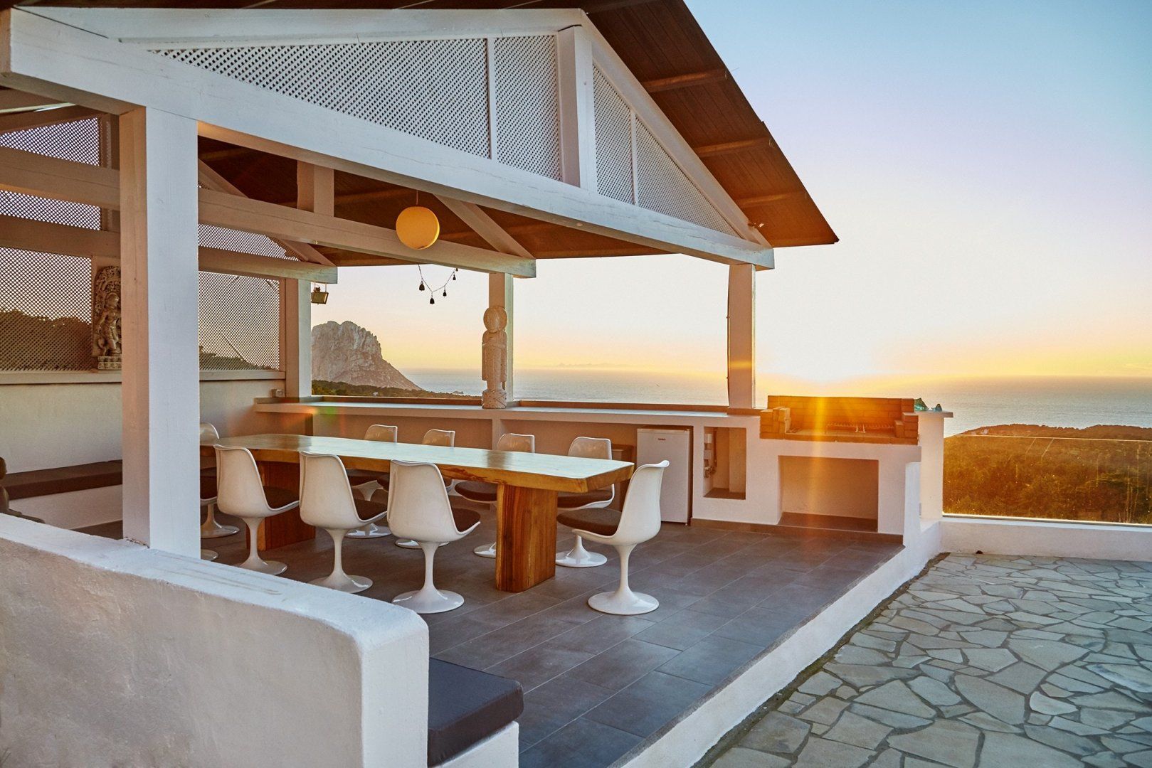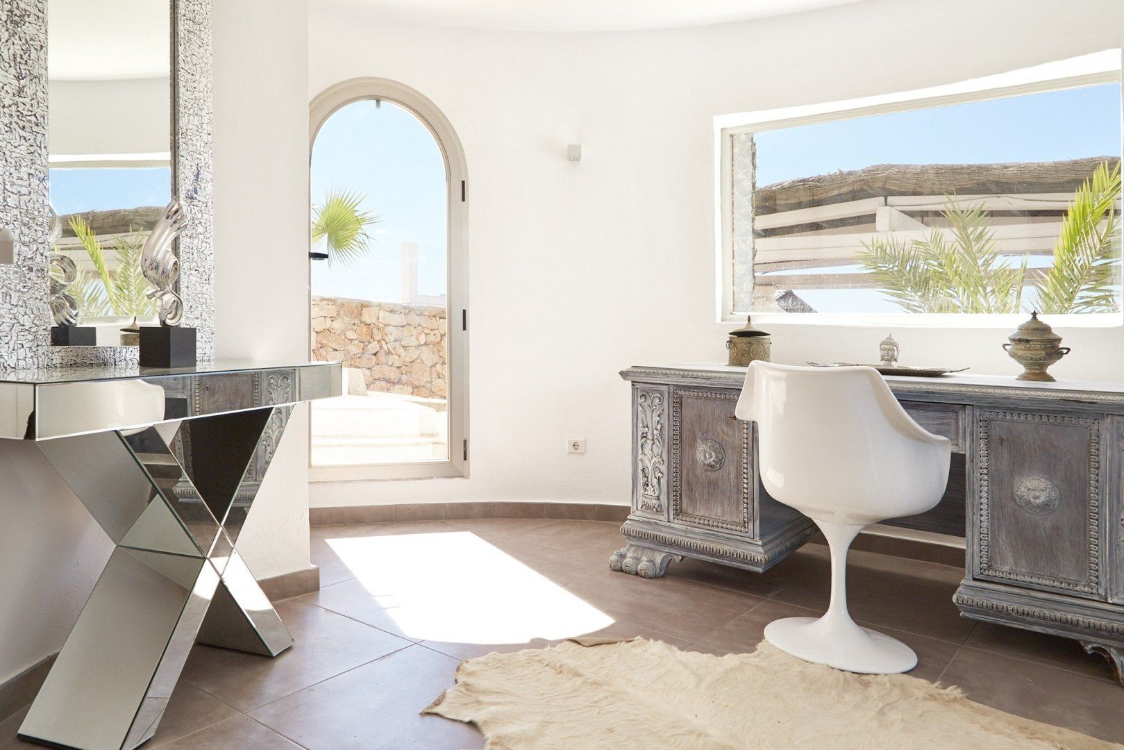 Situated on Ibiza’s southwestern coast, we find this gorgeous multi-level villa, adorned with an exotic vibe and rock features. The villa consists of the main house and a separate apartment, with most ensuite bedrooms having direct access to the terraces and pool area. Speaking of pools – there are two here, so you can take your pick. The property comes with other nifty amenities, such as various outdoor seating areas and a telescope for stargazing. You can explore nearby beaches, such as the secluded cove of Cala Carbó or Cala d’Hort, both but a short drive away.