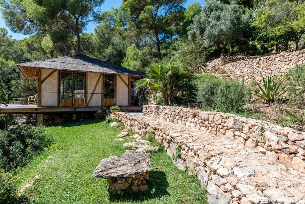 With traditional Ibizan interiors, the stone facade, white-washed accents, and bohemian decor are suited to those looking for some yoga Nidra or super-chilled socialising. Multiple levels of shaded terraces, sleek swimming pools and lush greenery make the outdoors a hedonist’s playground. Tuck away from the group in the massage corner where your day can be topped off with an at-home spa experience. Choose between the shimmering infinity pool or the plunge pool overlooking the hillside. Double bedrooms and bathrooms with deep stone tubs on the first floor lead out to the sun terrace and that beautiful view. The villa includes a private chef, to make full use of the chrome, professional kitchen inside and the full kitchen outside. While the villa, fringed by palms, feels an island onto itself, the pulsing music of Ibiza is within easy reach, with San José and Es Cubells just a five-minute drive away. Wander the bougainvillaea-covered gardens to find an additional bedroom situated in a private pool cabana for utter privacy. Here you’re free to channel whatever you like until the end of your final sun salutation.