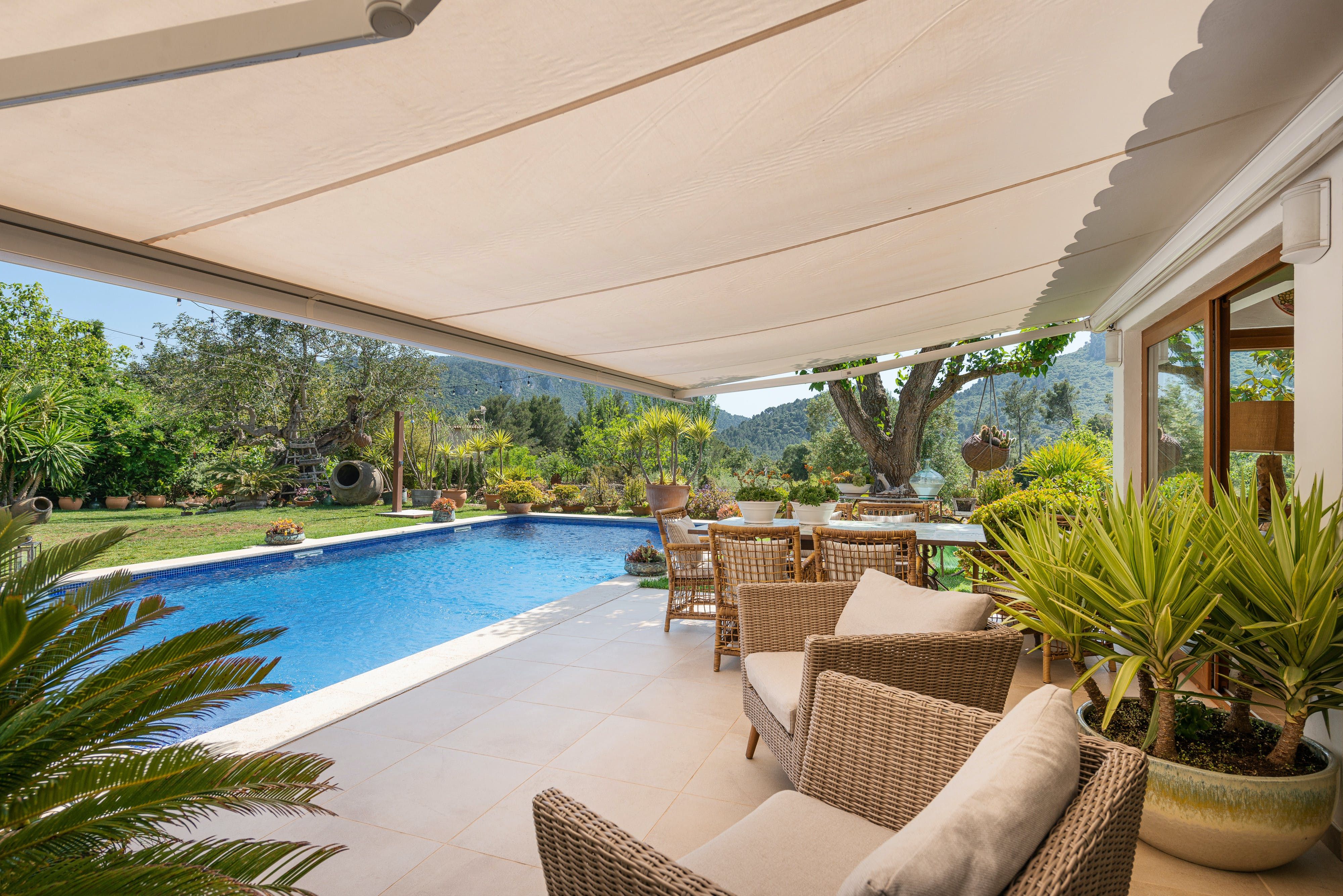 In west Mallorca, lush green landscapes create colourful scenery in the Tramuntana mountains. From this hilly terrain, you can drive to the rugged coast in fifteen minutes, or explore the mountains to find stately homes like La Granja d'Esporles. And just a twenty-minute walk from this rural manor, you can stay in your very own modern-day version.