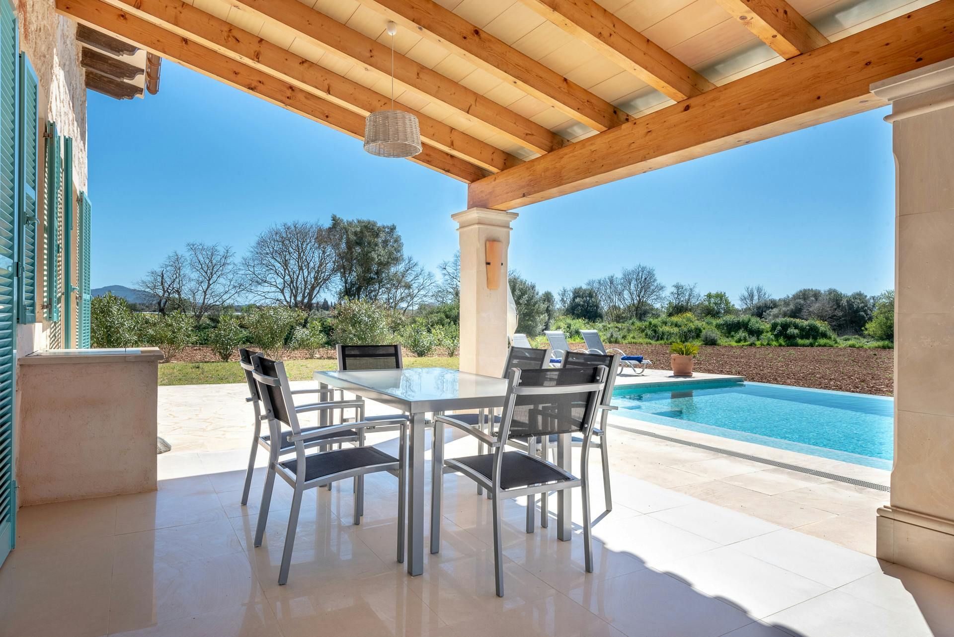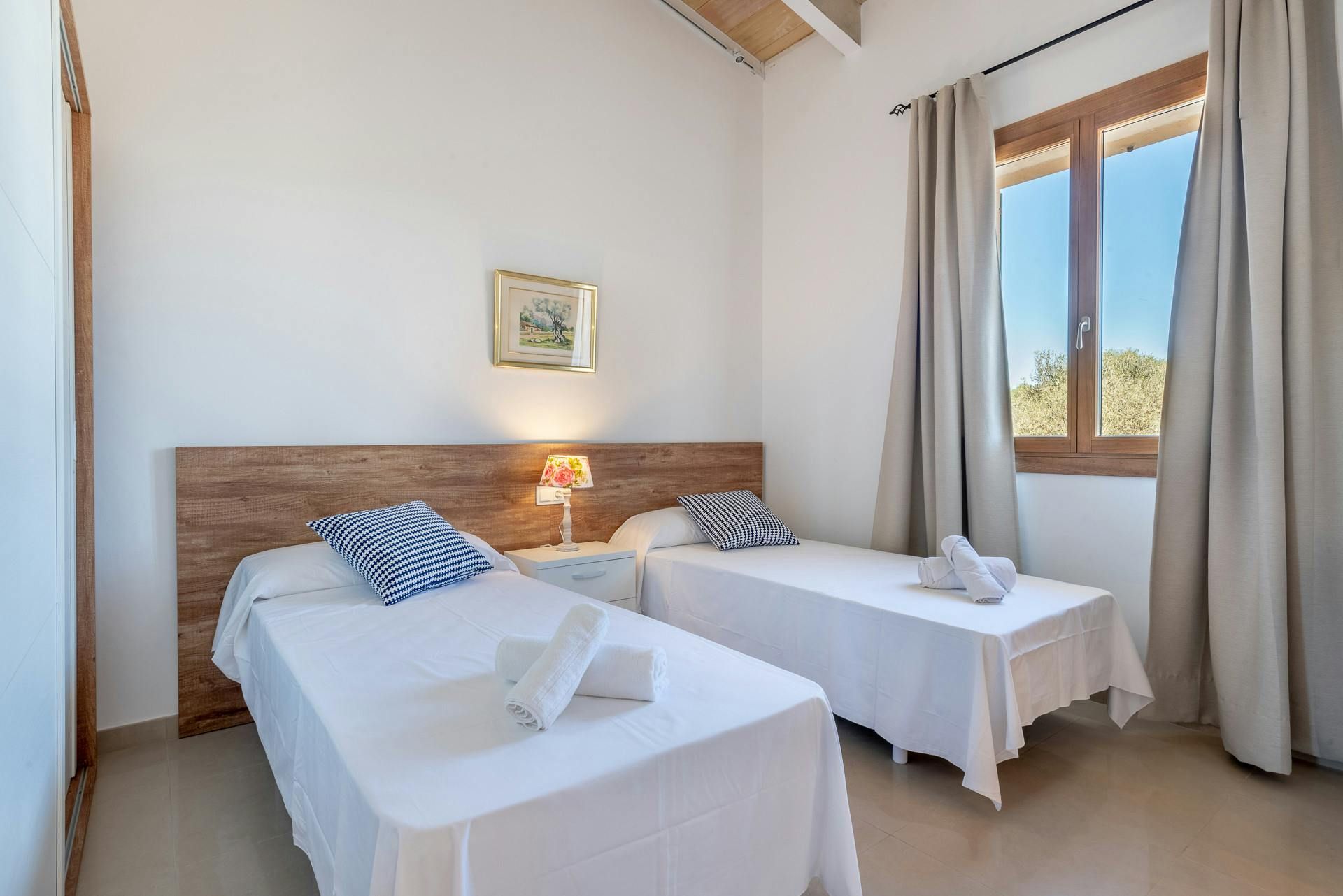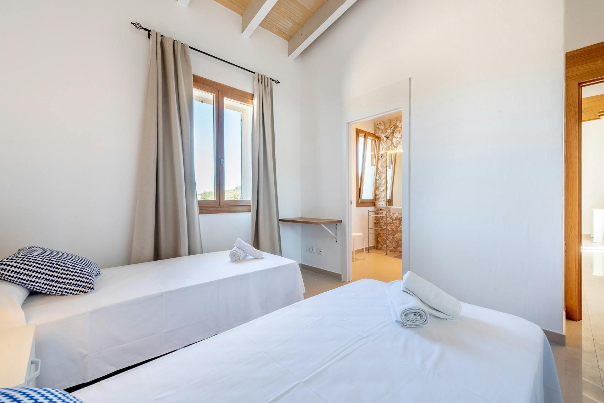 This single-level retreat outside Felanitx puts the Mallorcan countryside at your fingertips. Two of the en-suite bedrooms lead straight to the garden, so you'll only be a few steps away from the island's endless sunshine. The private swimming pool is sure to be a hit – especially since the nearest beach is an 18-kilometre drive – while the covered terrace is just the ticket come dinnertime. Inside, wooden beams add some character to the otherwise breezy living area. We think there's a decent amount of space here for a family or small group of friends. But, when you fancy exploring, private parking means you can hop in a car and set off with ease.