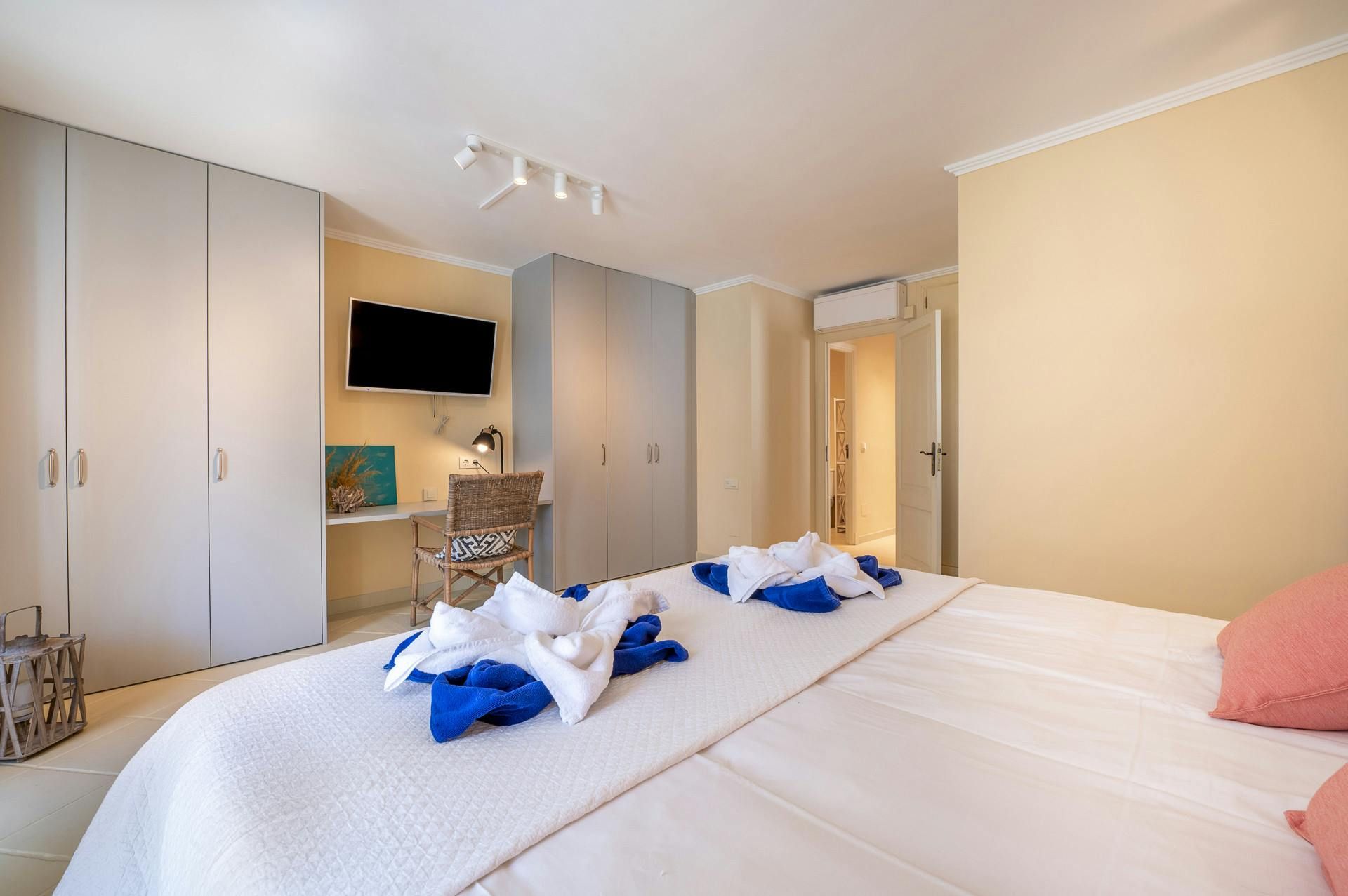 Nestled on the outskirts of Portocolom, this apartment is 500 metres from Arenal dets Ases beach. Restaurants, shops, and bars are a bit further – you'll need to hop in the car, but they're just a short drive away. Alongside the communal pool, the private garden and balcony are ideal for chilling out, Spanish style. It's on the first floor, so prepare to climb some stairs, and since it's part of an apartment complex, you're likely to hear and see your neighbours. For a family getaway in Mallorca, it's a good choice.