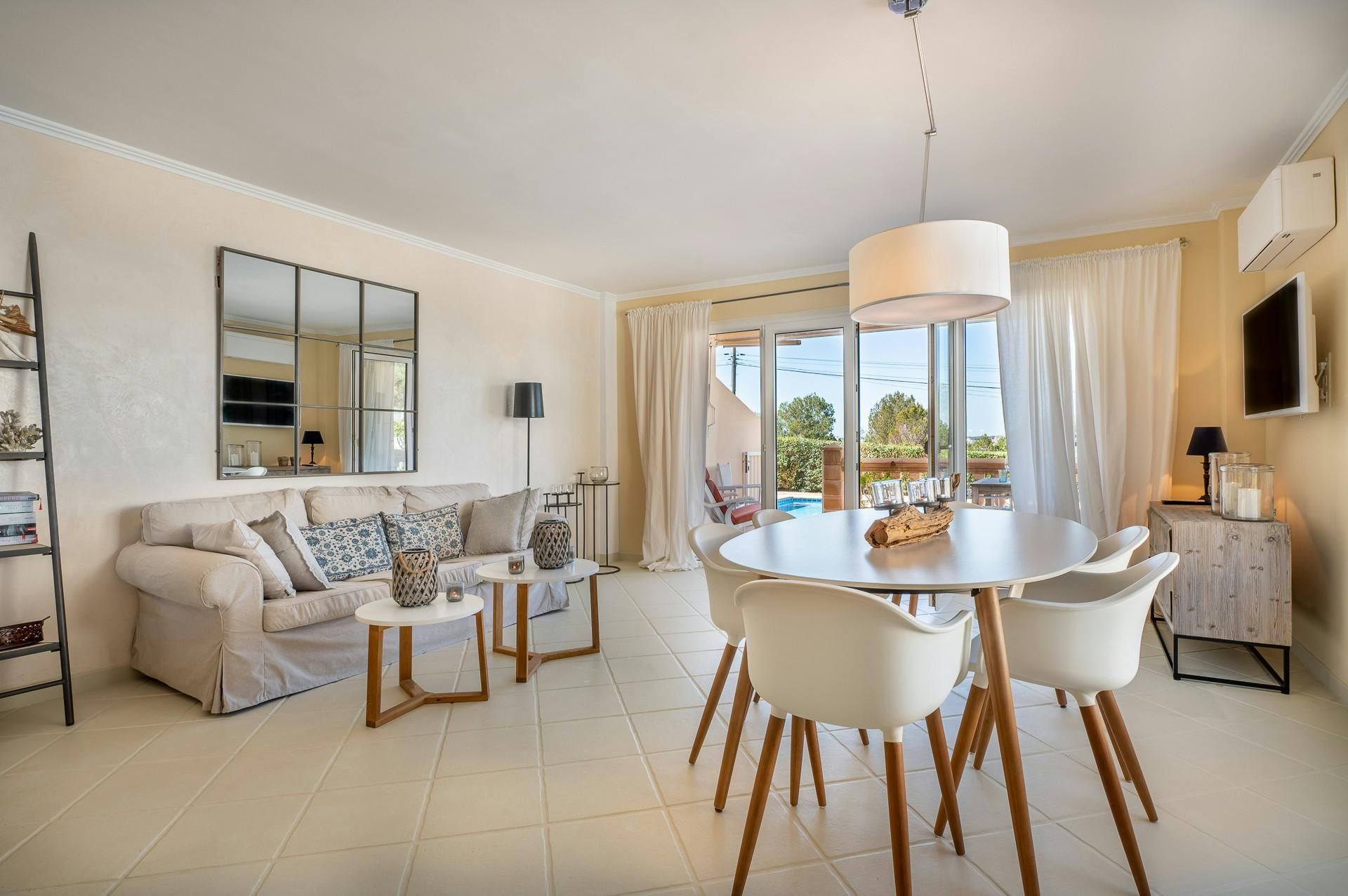 Nestled on the outskirts of Portocolom, this apartment is 500 metres from Arenal dets Ases beach. Restaurants, shops, and bars are a bit further – you'll need to hop in the car, but they're just a short drive away. Alongside the communal pool, the private garden and balcony are ideal for chilling out, Spanish style. It's on the first floor, so prepare to climb some stairs, and since it's part of an apartment complex, you're likely to hear and see your neighbours. For a family getaway in Mallorca, it's a good choice.