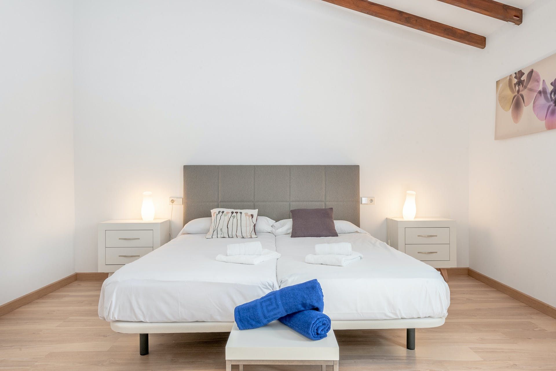Within walking distance of numerous bars and restaurants, this family-friendly home enjoys a central location between Felanitx's two main churches. The leafy garden offers a lovely spot for sunbathing and sipping local wine when you're not shopping at the Sunday market – although we think the walls could do with a lick of paint. Not only is there a plunge pool here, but the alfresco dining area is ideal for barbecues. Fancy a day on the coast? Portocolom's pretty fishing village awaits 12 kilometres away, boasting S’Arenal beach and a variety of watersport activities.
