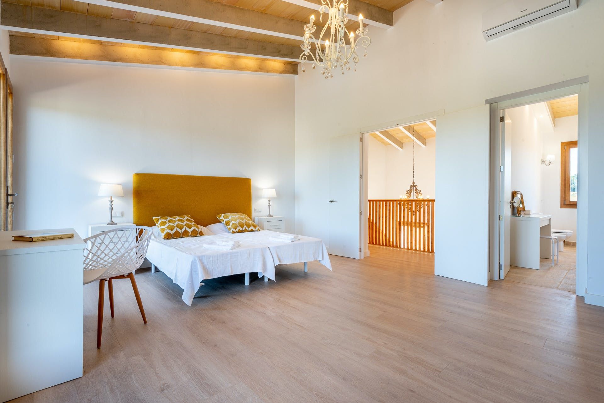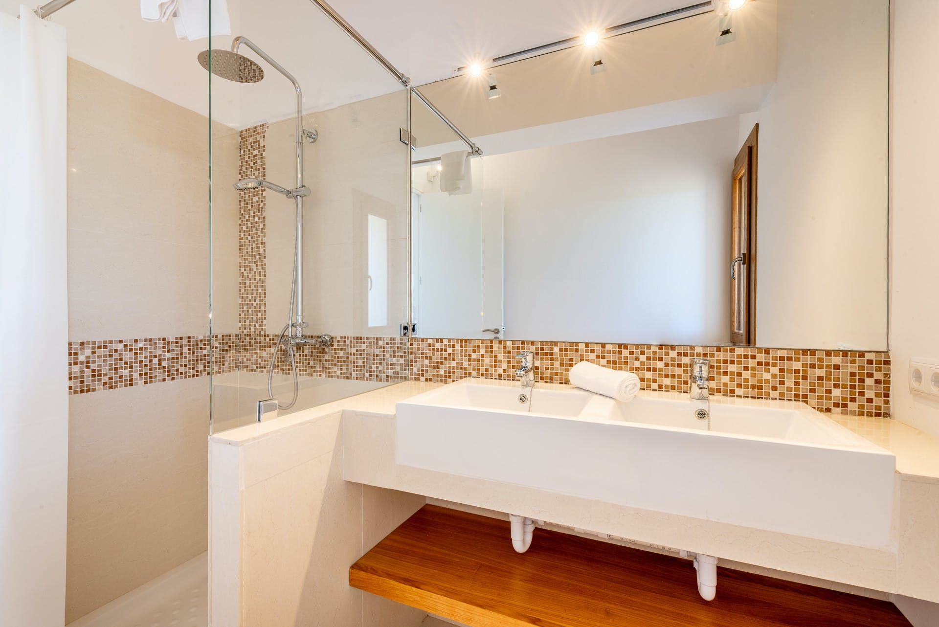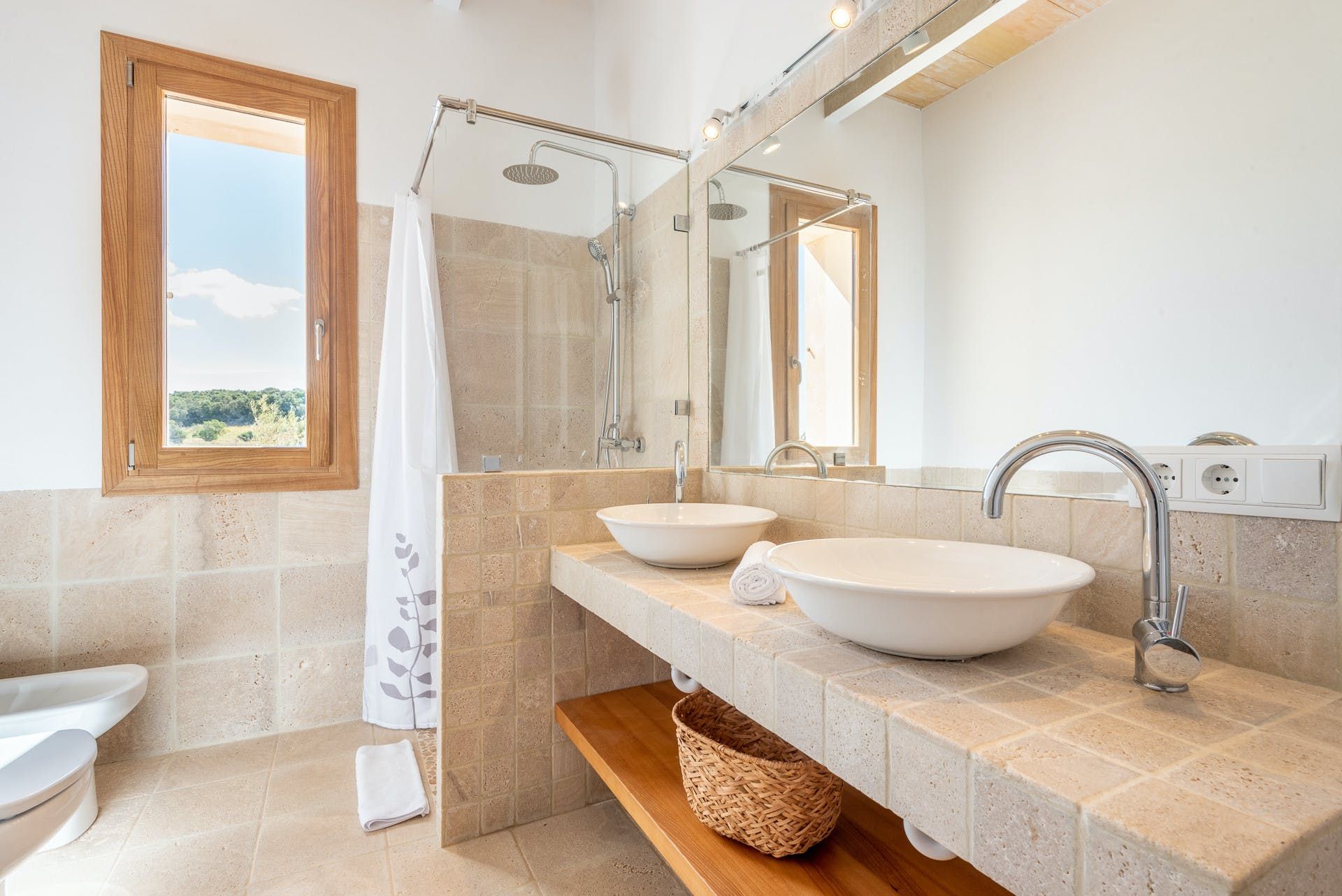 This Mallorcan villa blends traditional charm with modern comfort. You can look forward to a stone facade and pretty green wooden shutters as well as luxurious freestanding bathtubs and an inviting private swimming pool. Ideal for big groups, there’s plenty of room here. We love the terrace and the barbecue area, where you can dine alfresco while enjoying the rural views and the peaceful setting. You’ll need a car if you want to see more of Felanitx, which we recommend.