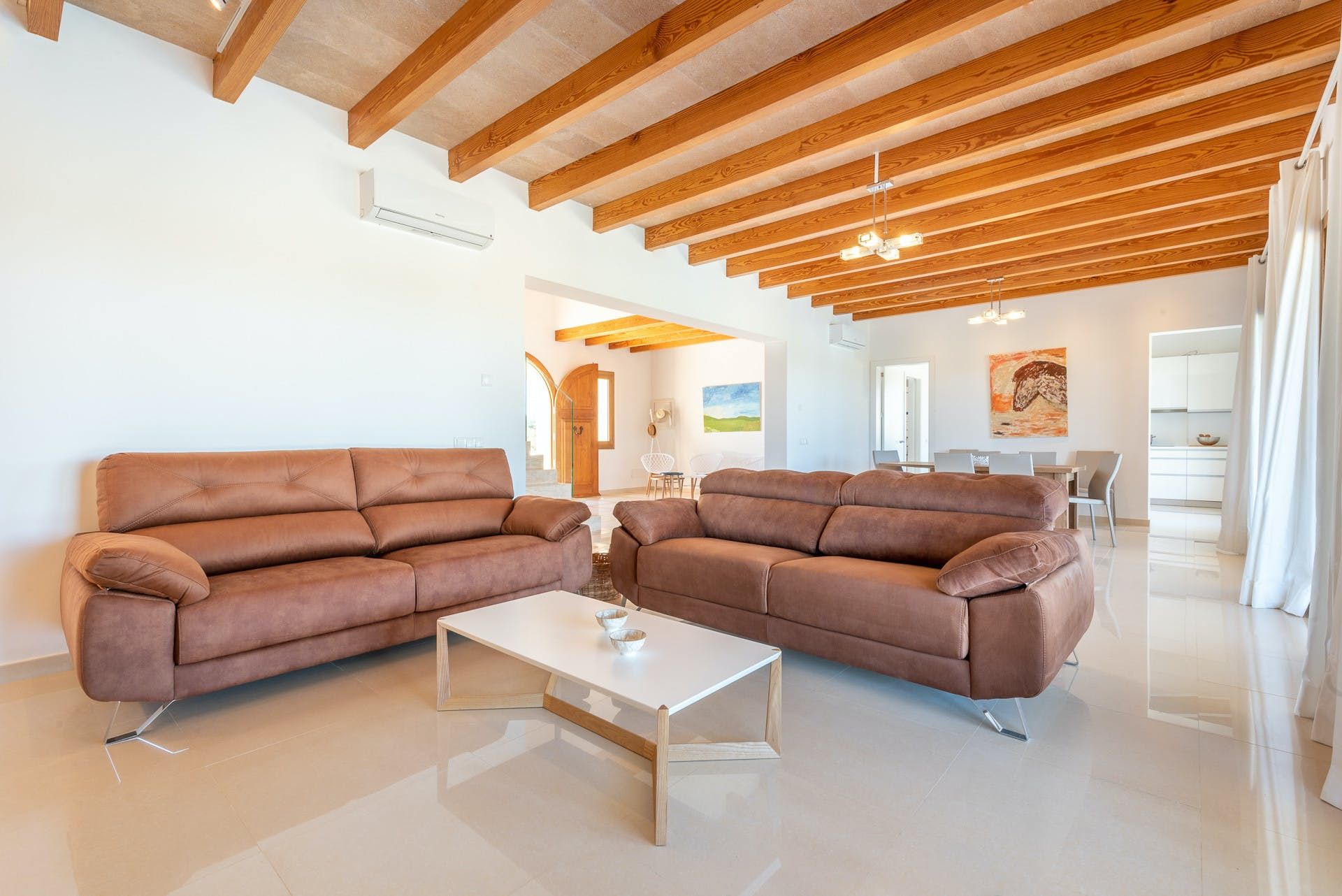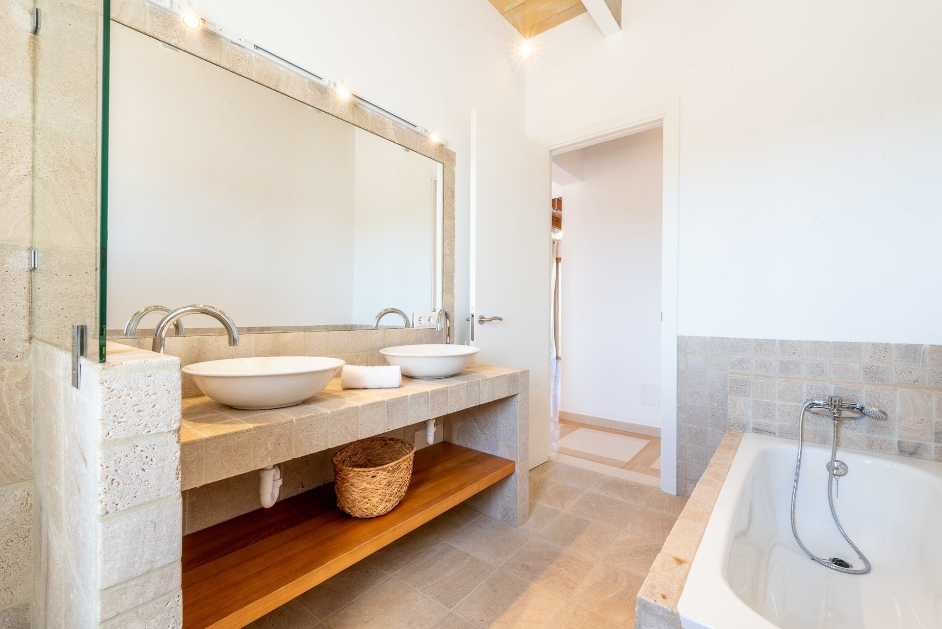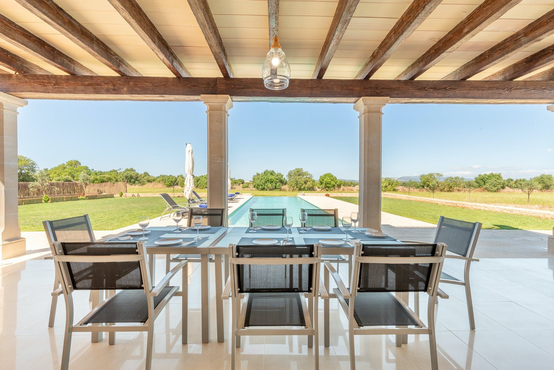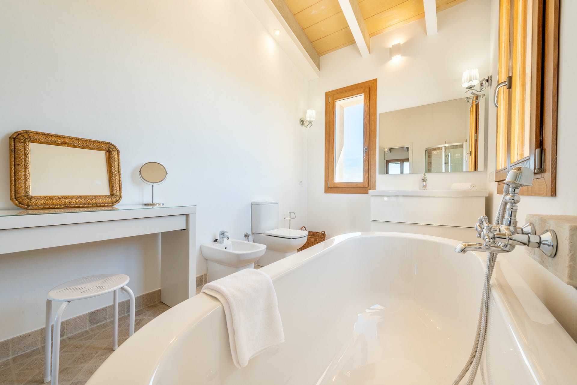 This Mallorcan villa blends traditional charm with modern comfort. You can look forward to a stone facade and pretty green wooden shutters as well as luxurious freestanding bathtubs and an inviting private swimming pool. Ideal for big groups, there’s plenty of room here. We love the terrace and the barbecue area, where you can dine alfresco while enjoying the rural views and the peaceful setting. You’ll need a car if you want to see more of Felanitx, which we recommend.
