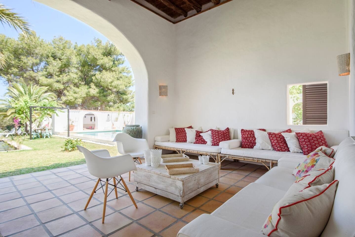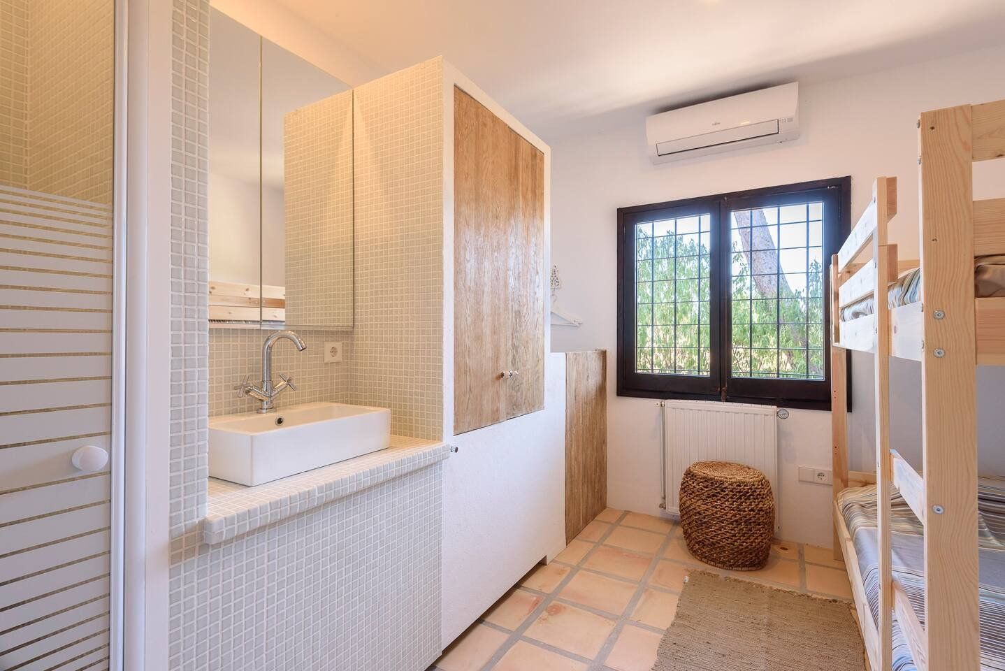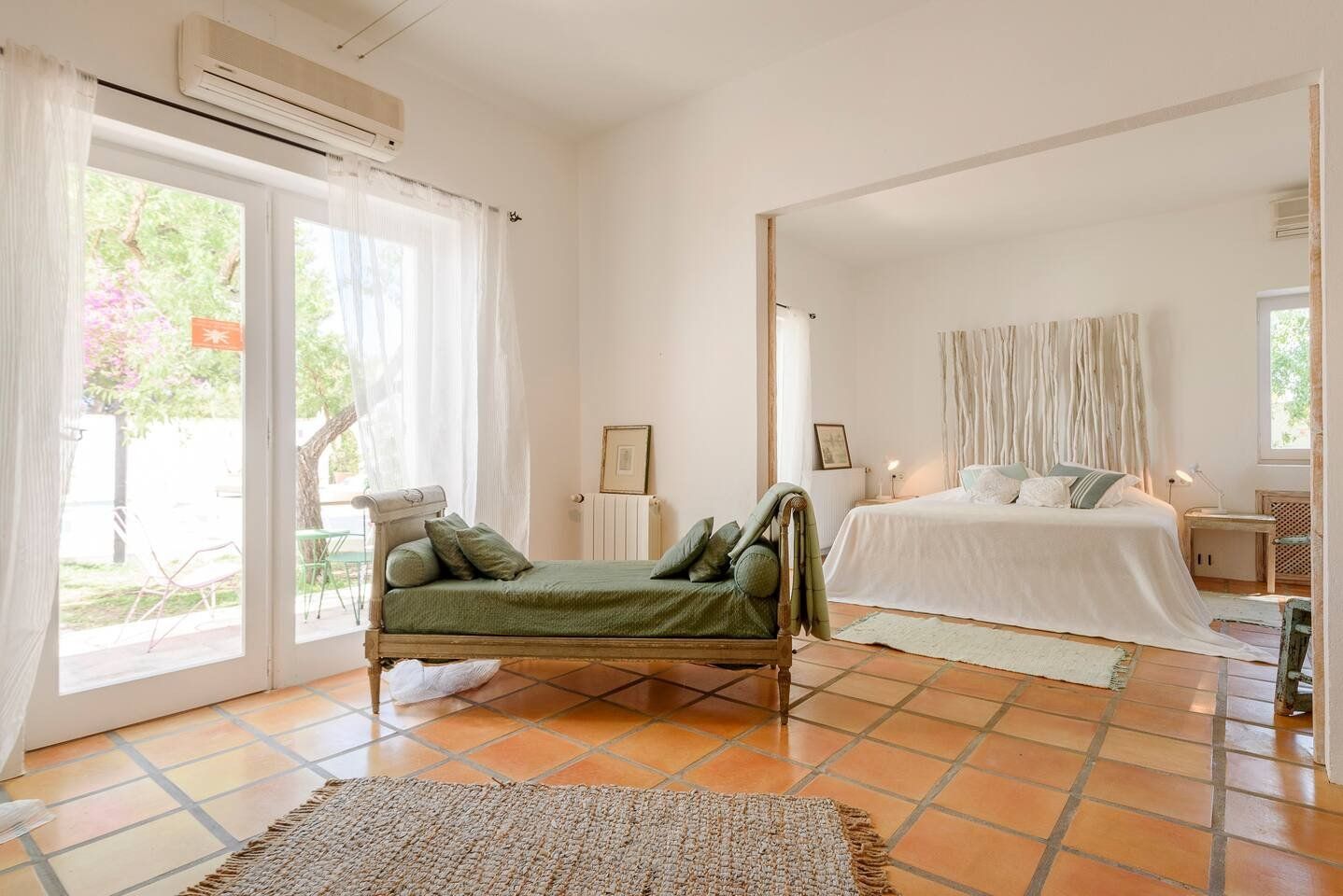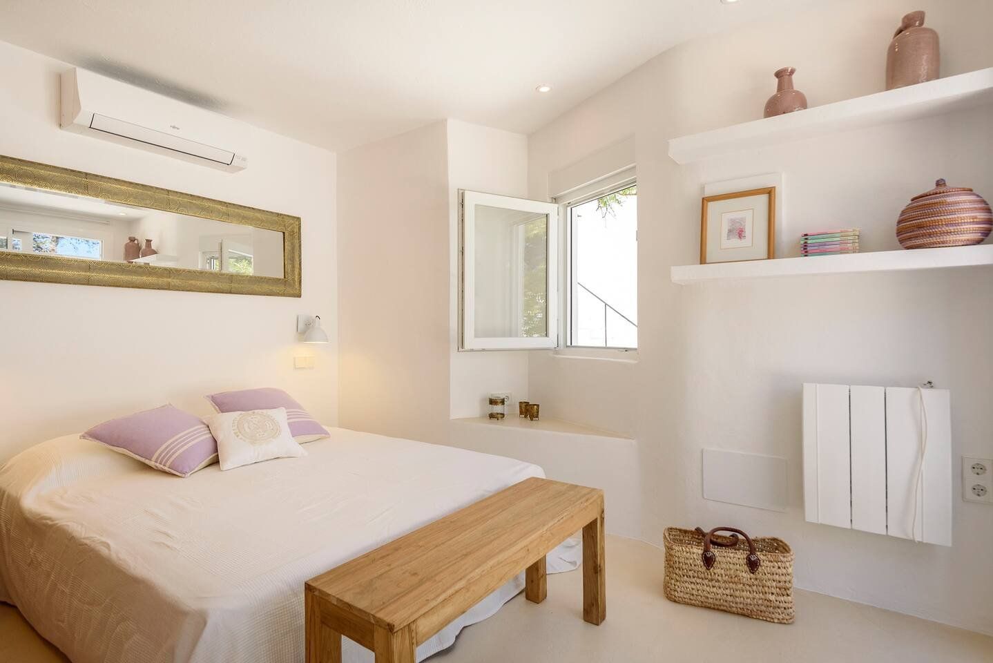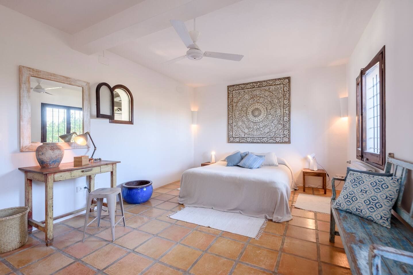 There's movie-quality magic to this secluded hacienda in Ibiza, from the interiors worthy of a magazine to enough entertainment to keep all members of your party engaged. We noticed the architecture first, with native Sabina wood ceilings and arched white walls sheltering eclectic pieces like a cowhide chair and Native American headdresses. For the performers in your group, there's a grand piano in the living area – or plug a phone into the sound system to play more professional beats. Bedrooms each deliver a sense of serenity, courtesy of pastel colour schemes and reclaimed wooden furniture. But you won't want to hang out alone for too long – the infinity pool is surrounded by daybeds, while the built-in stone barbecue has carved-stone seats for everyone to keep an eye on the action. To amp up the energy, there are pétanque courts, table tennis and foosball tables and a basketball hoop. Glimpses of the sea are visible from the roof terrace, or you can jump on one of the home's bikes for a trip to the shore before heading back for sundowners on the wraparound terrace.