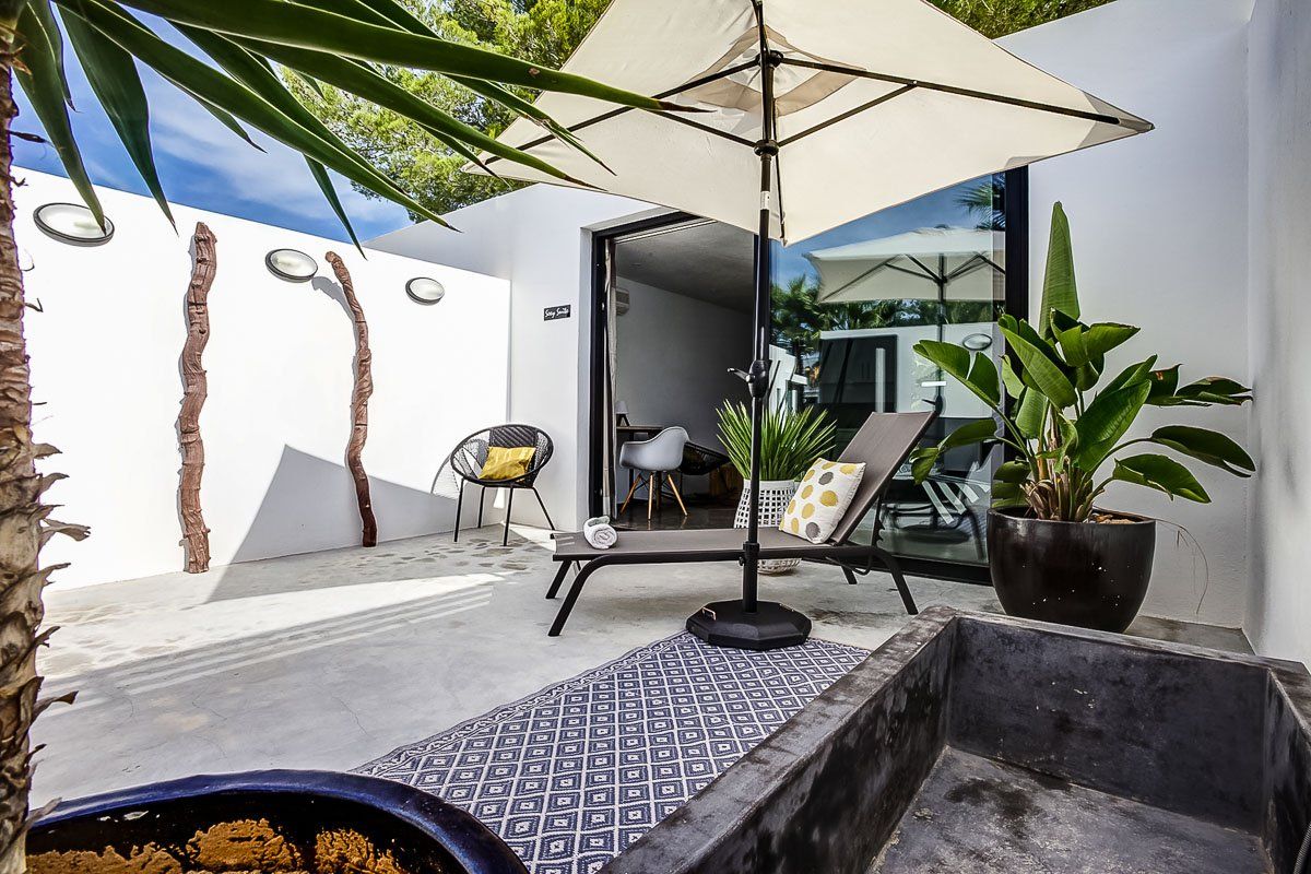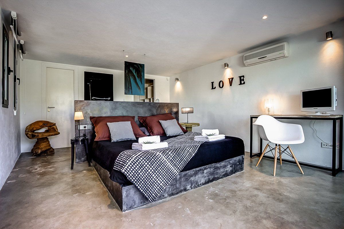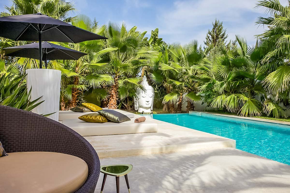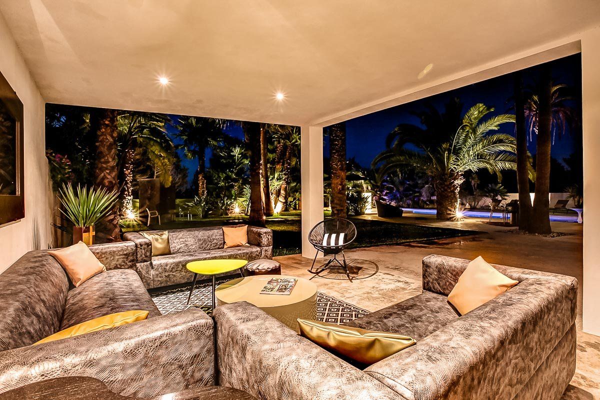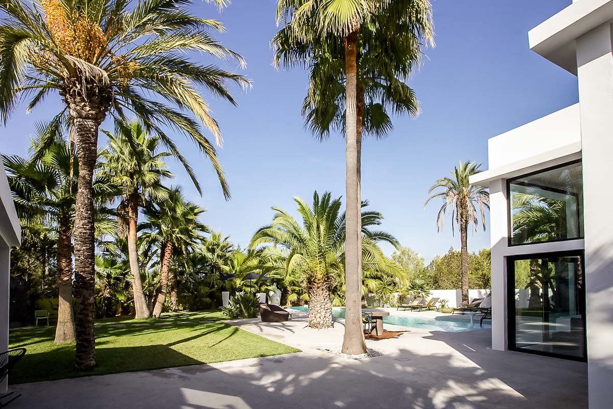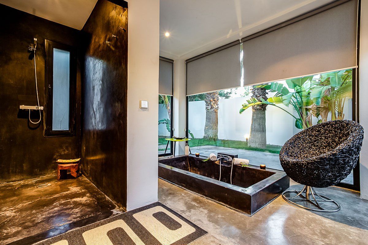 Stepping into the gated garden of this luxury vacation rental, with its lush lawns, palm trees and modern sculptures, feels like entering your own world. Steps lead down to an expansive terrace with a pool, plenty of loungers and daybeds, and a pool house with shaded al-fresco sitting and dining areas. You can use the property as an escape from the real world, or stay connected via the TV and Wi-Fi.