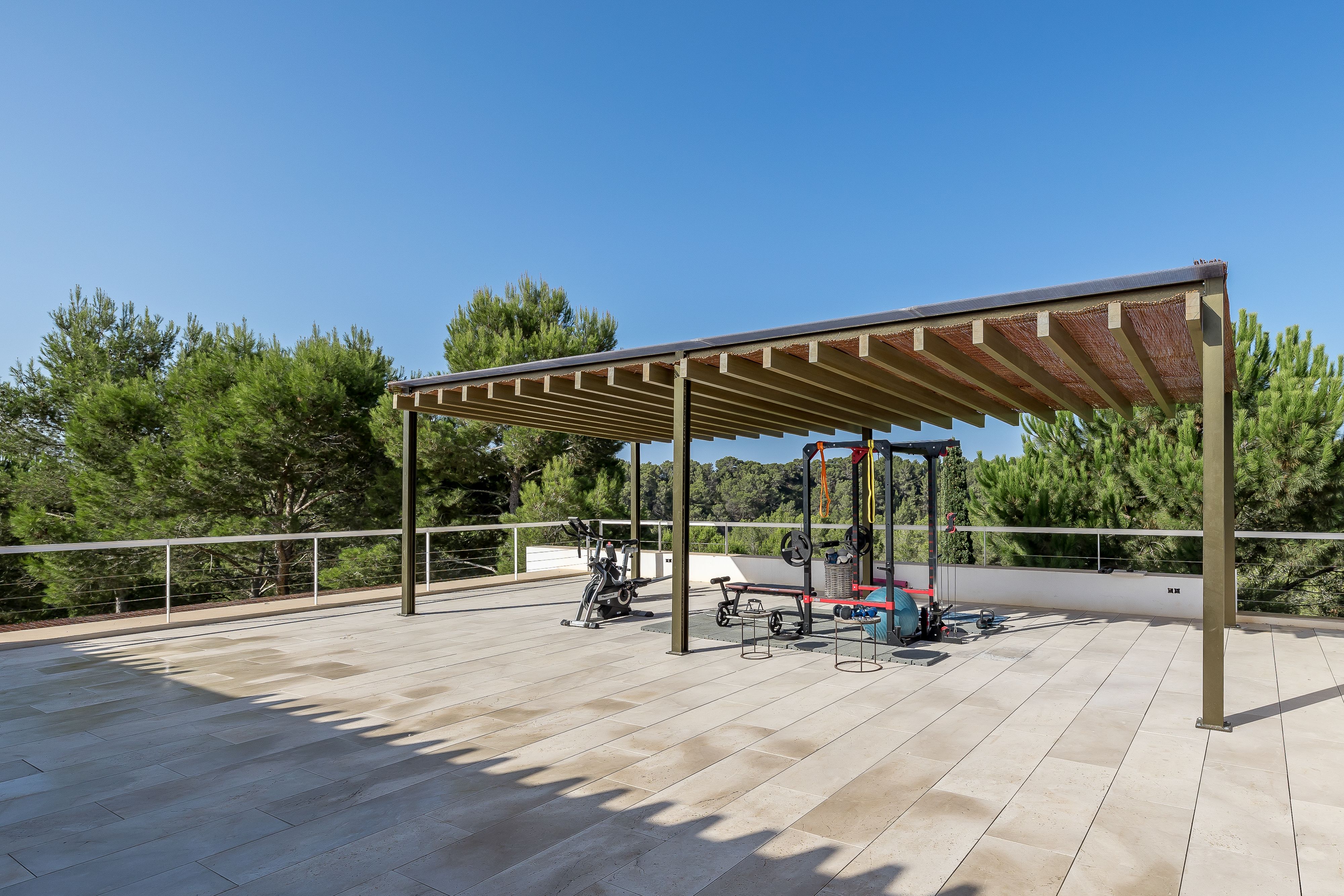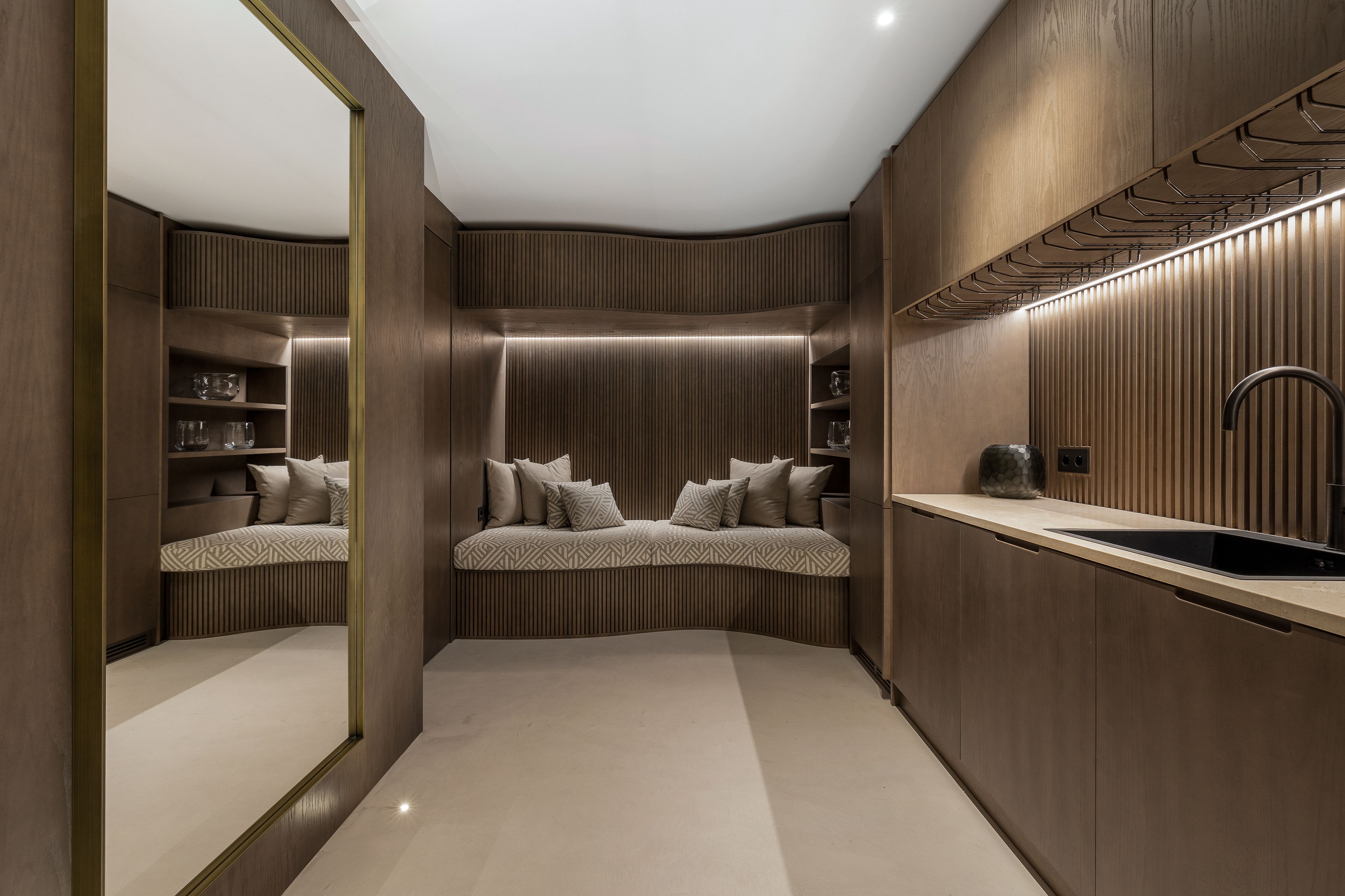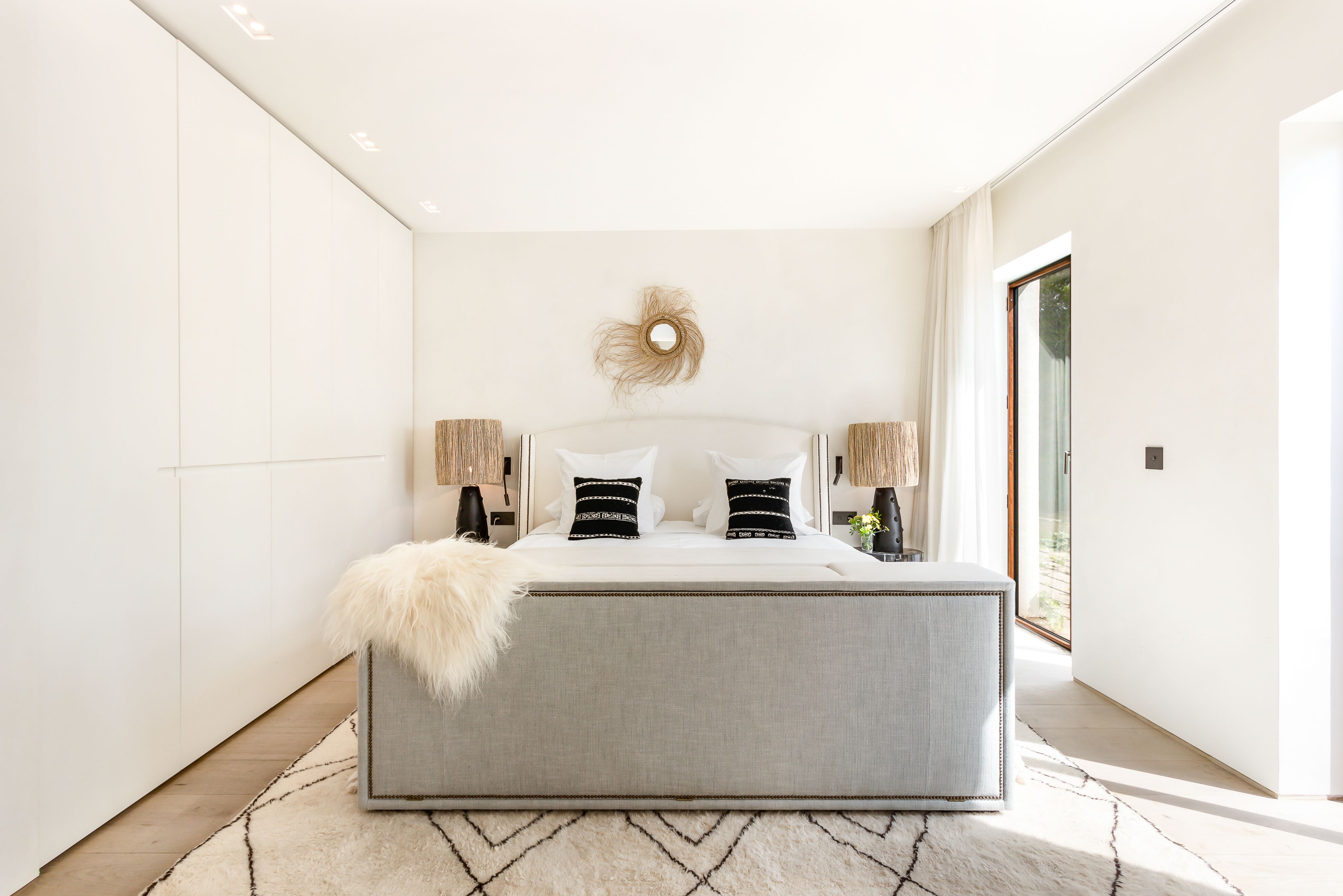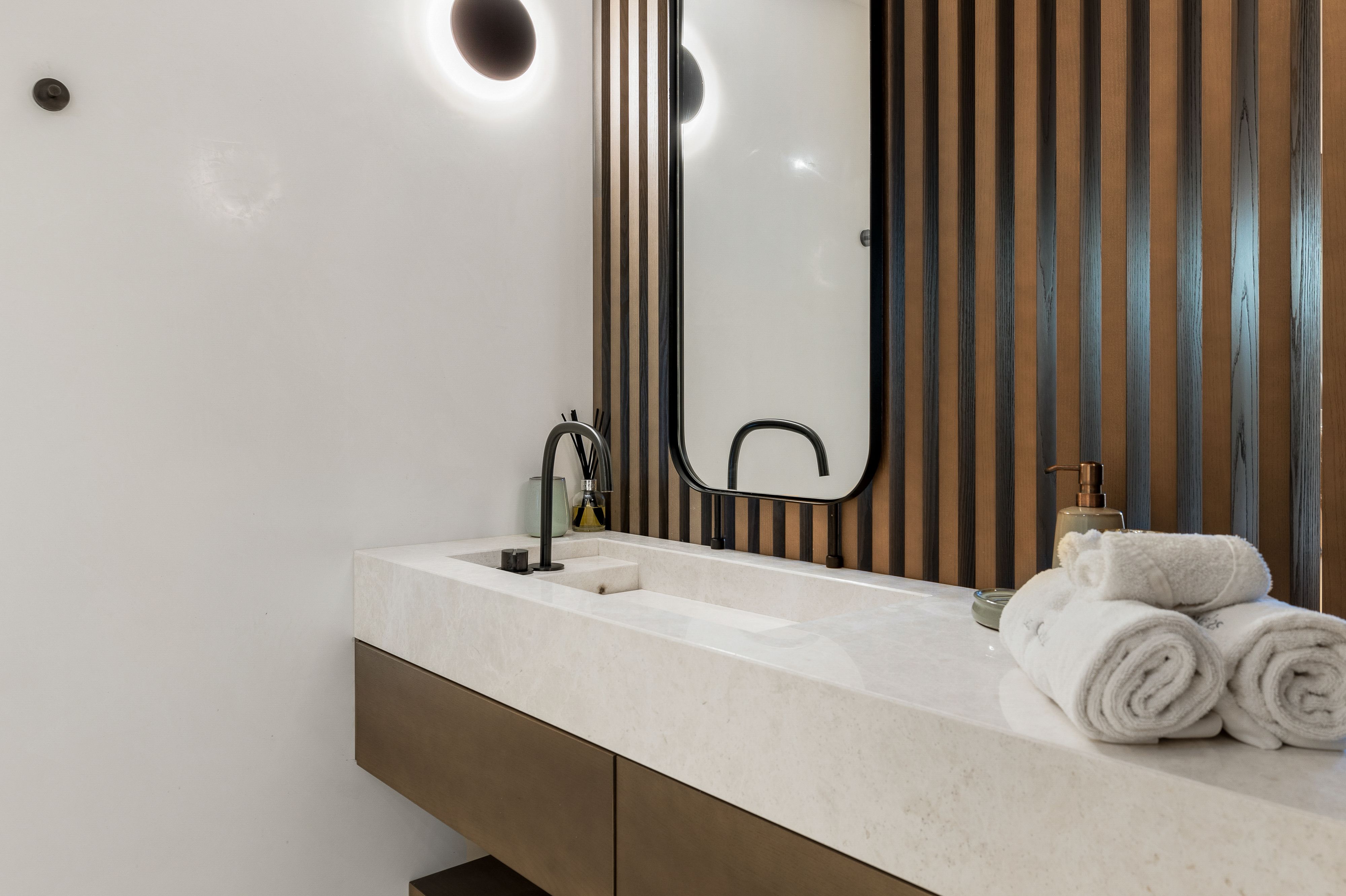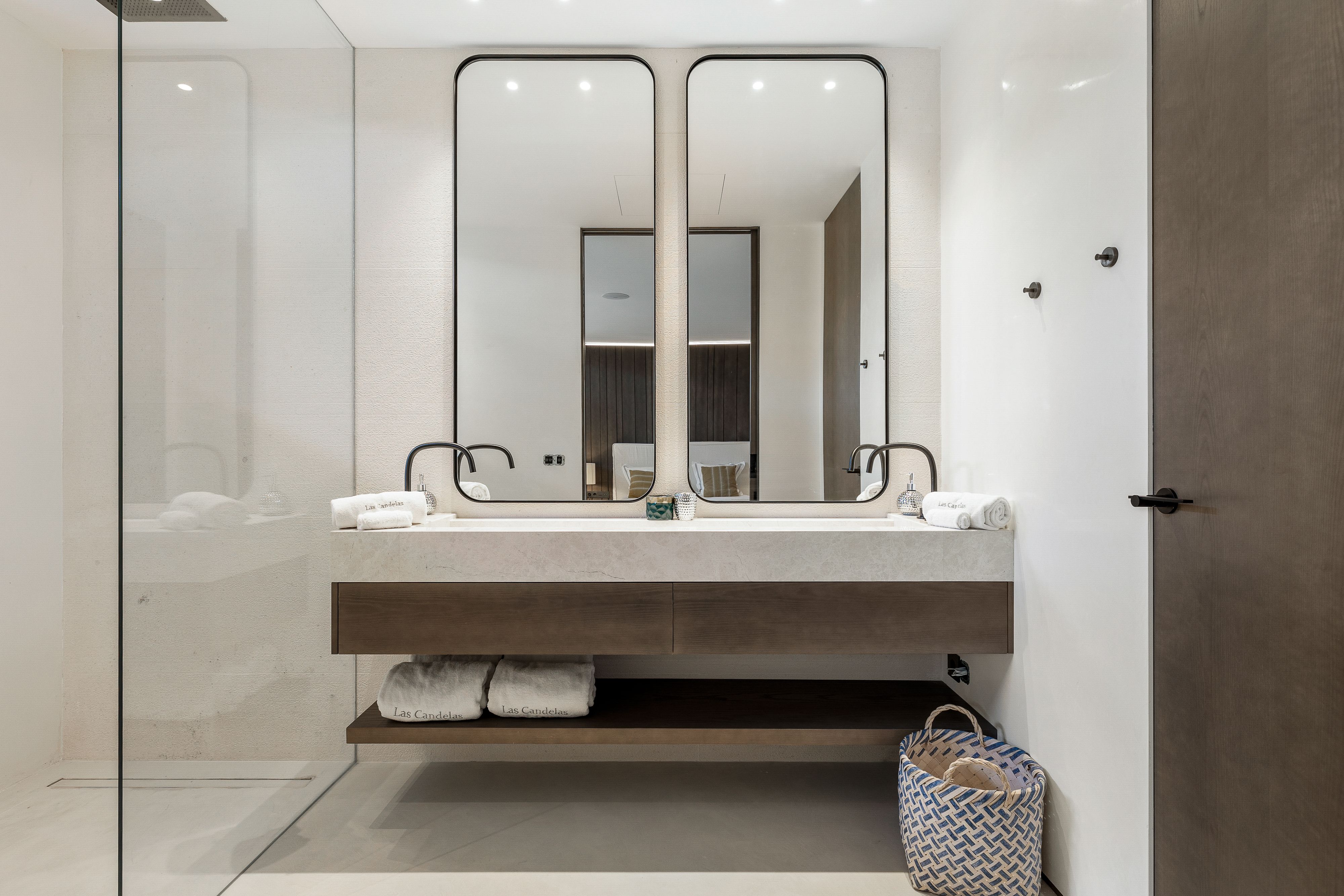 This villa completely embraces the Ibizan lifestyle. Days can be spent dipping in and out of the infinity pool, lounging on sprawling sofas across shaded patios, mixing up cocktails at the outdoor bar or playing games of petanque in the sun. Inside, there’s just as much to keep you entertained with a subterranean spa with treatment rooms in the basement, a dedicated home cinema and endless space to spread out. Bedrooms are as grand as hotel suites. Location-wise, you’re out in the peace and quiet, a twenty-minute walk from the day clubs of Cala Jondal beach.