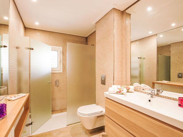 "Can Pedro", 9-room villa 600 m2 on 2 levels. Object suitable for 10 adults. Spacious and bright, fully renovated, very modern and stylish furnishings: open large living room with sliding door, panoramic window with satellite TV, digital TV, flat screen, air conditioning and forced-air heating.