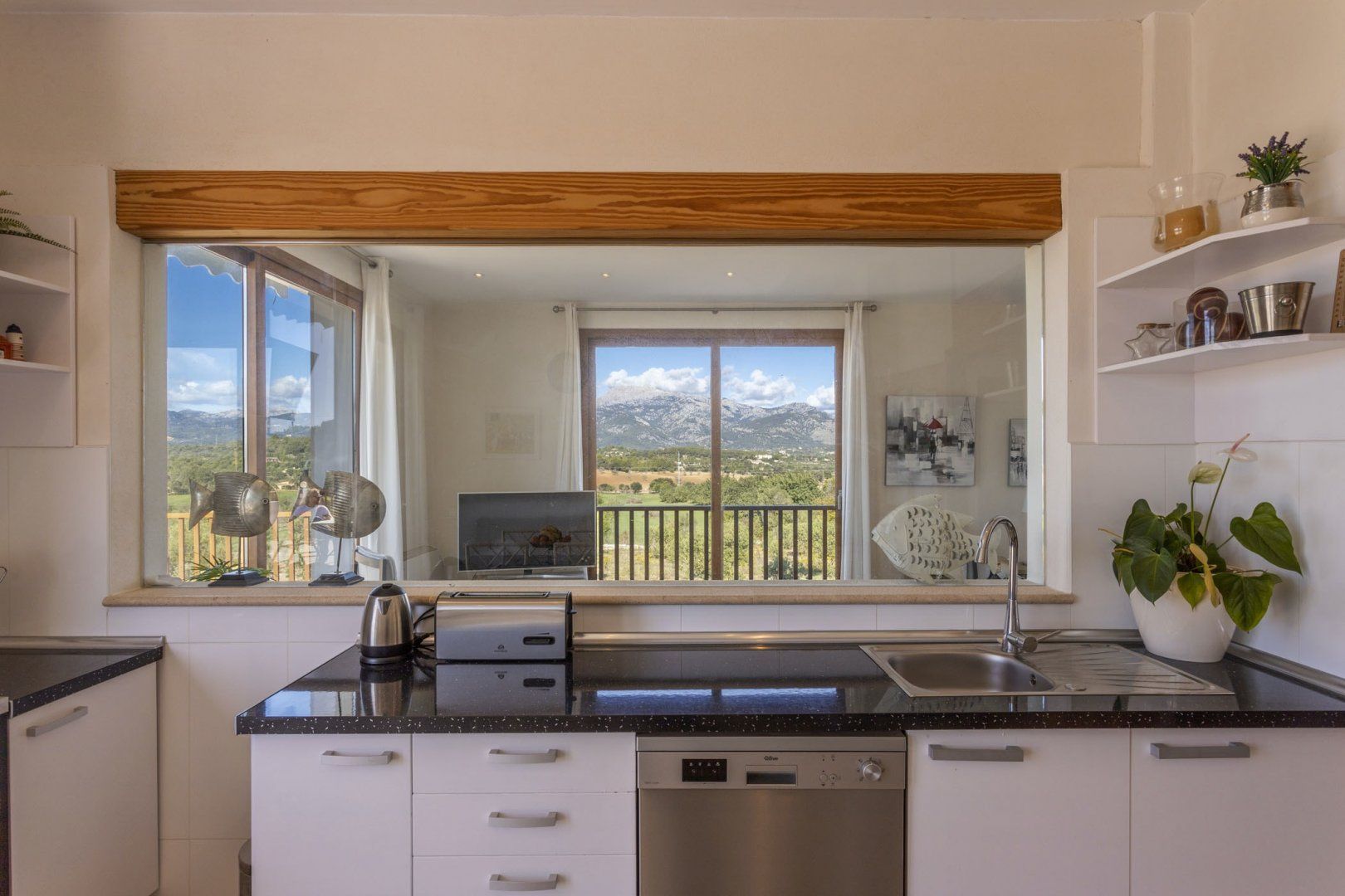 Surrounded by the Sierra de Tramuntana, you won't find a more scenic spot to call home. Inside and out, every inch of this villa makes the most of the mountain views, so sit back with a glass of sangria and take it all in. Splash about in the private pool on lazy afternoons, then stretch out under the parasols and dry off with a good book and a refreshing drink. When the sun goes down and the stars come out, fire up the grill and dine alfresco on fresh-caught seafood picked up at Inca's weekly market. Sounds dreamy, doesn't it?