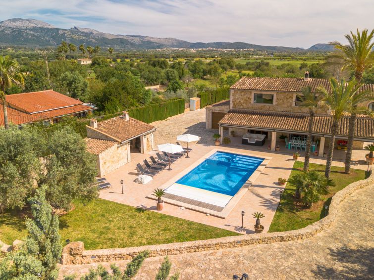 "Son Bosc", 6-room villa 450 m2 on 2 levels. Object suitable for 9 adults. Spacious and bright, fully renovated, comfortable and cosy furnishings: large living room with panoramic window with digital TV, flat screen, air conditioning and forced-air heating. Exit to the patio. 1 large double bedroom with sliding door with 2 beds (90 cm, length 200 cm), digital TV, flat screen, air conditioning and forced-air heating.
