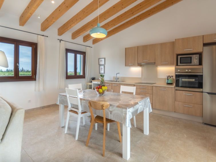 Very good accommodation (kitchen, pool with loungers, bathroom, bedrooms – everything is there) – located close to the town of Inca (a 10-minute drive to the supermarket), yet quiet. Everything is well-maintained, and if you need anything, you can contact the owners at any time. Car required.