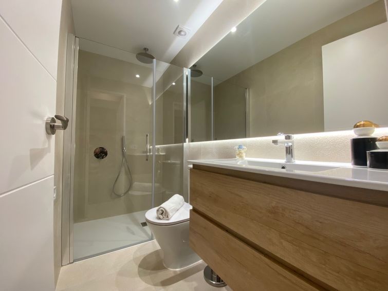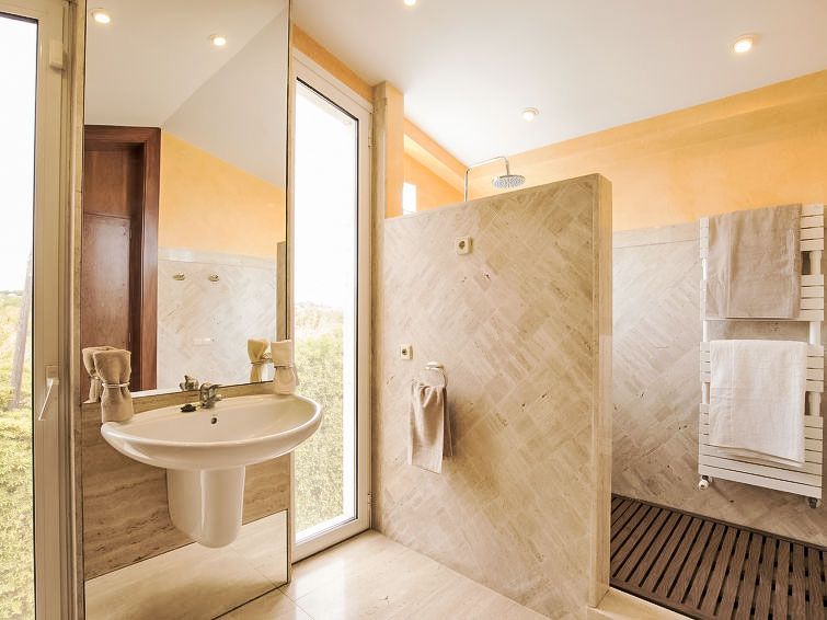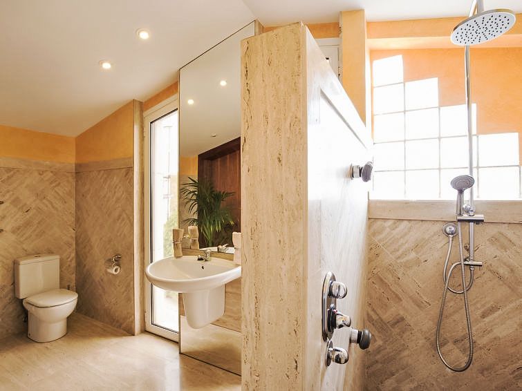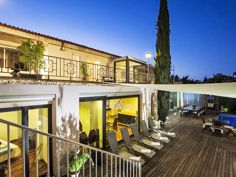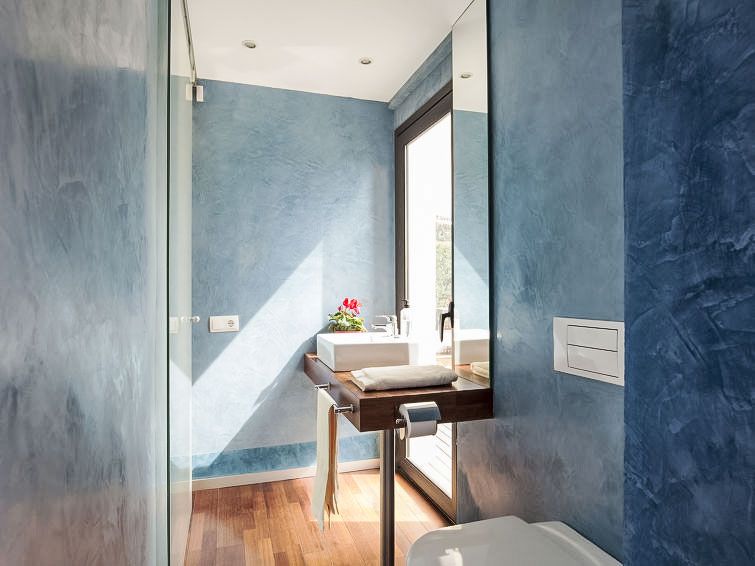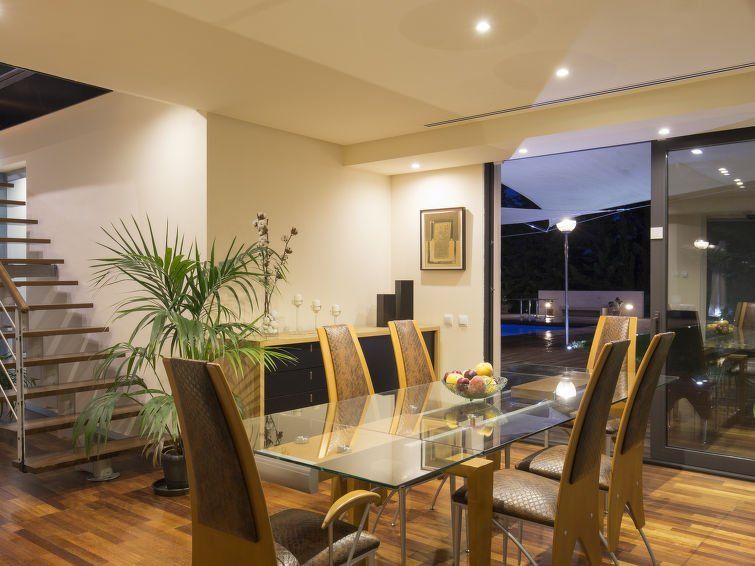 Modern house with several bedrooms. Lots of technology that unfortunately didn't work as it should. Lots of glass, even in the toilets which some found annoying. Nice outdoor environment with clean, nice pools. Plenty of sun loungers and extra towels for swimming. Lots of lights that couldn't be regulated, turned on or off, which you might want when you have to pay for the daily electricity consumption. Will probably be a genuine finça next time.