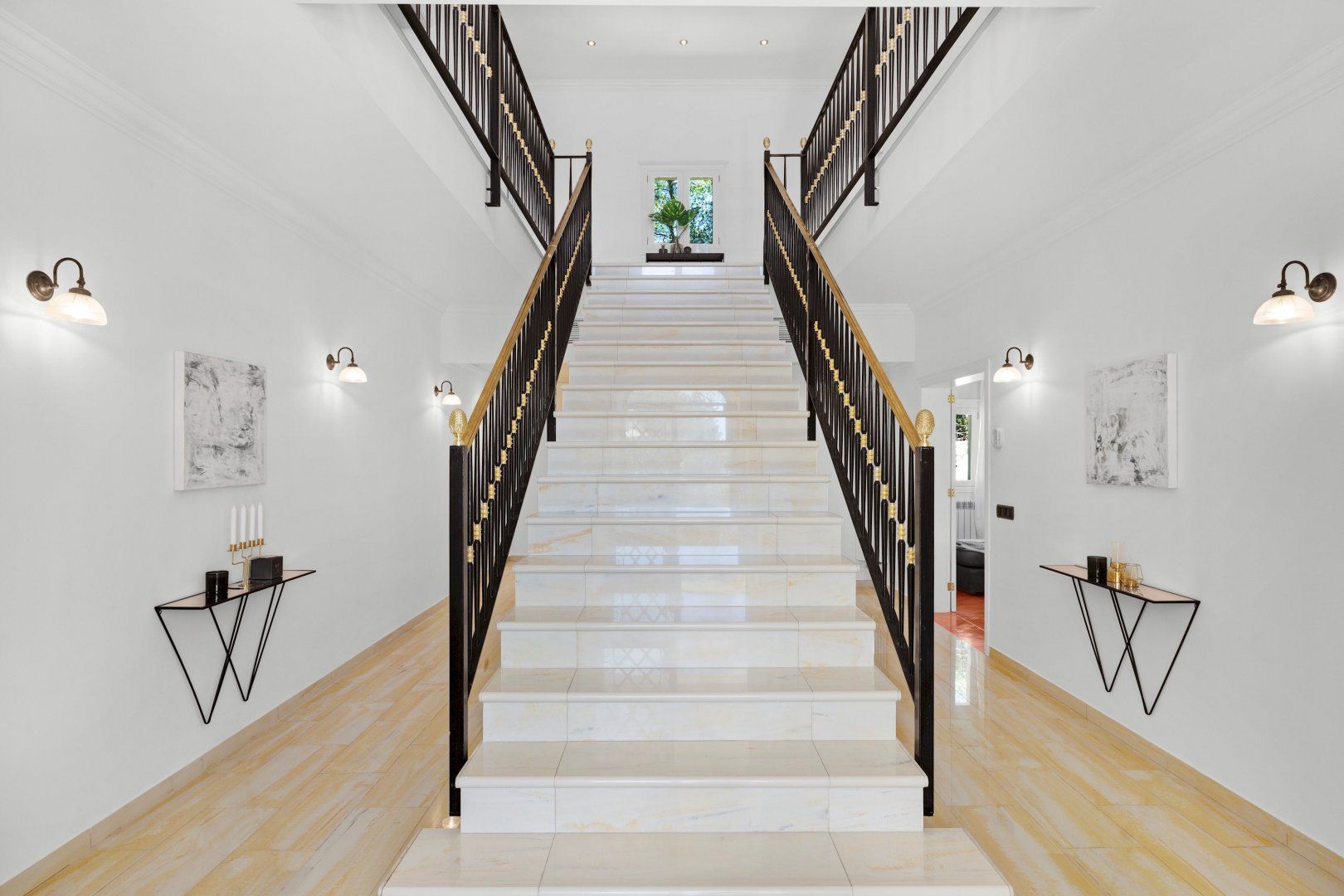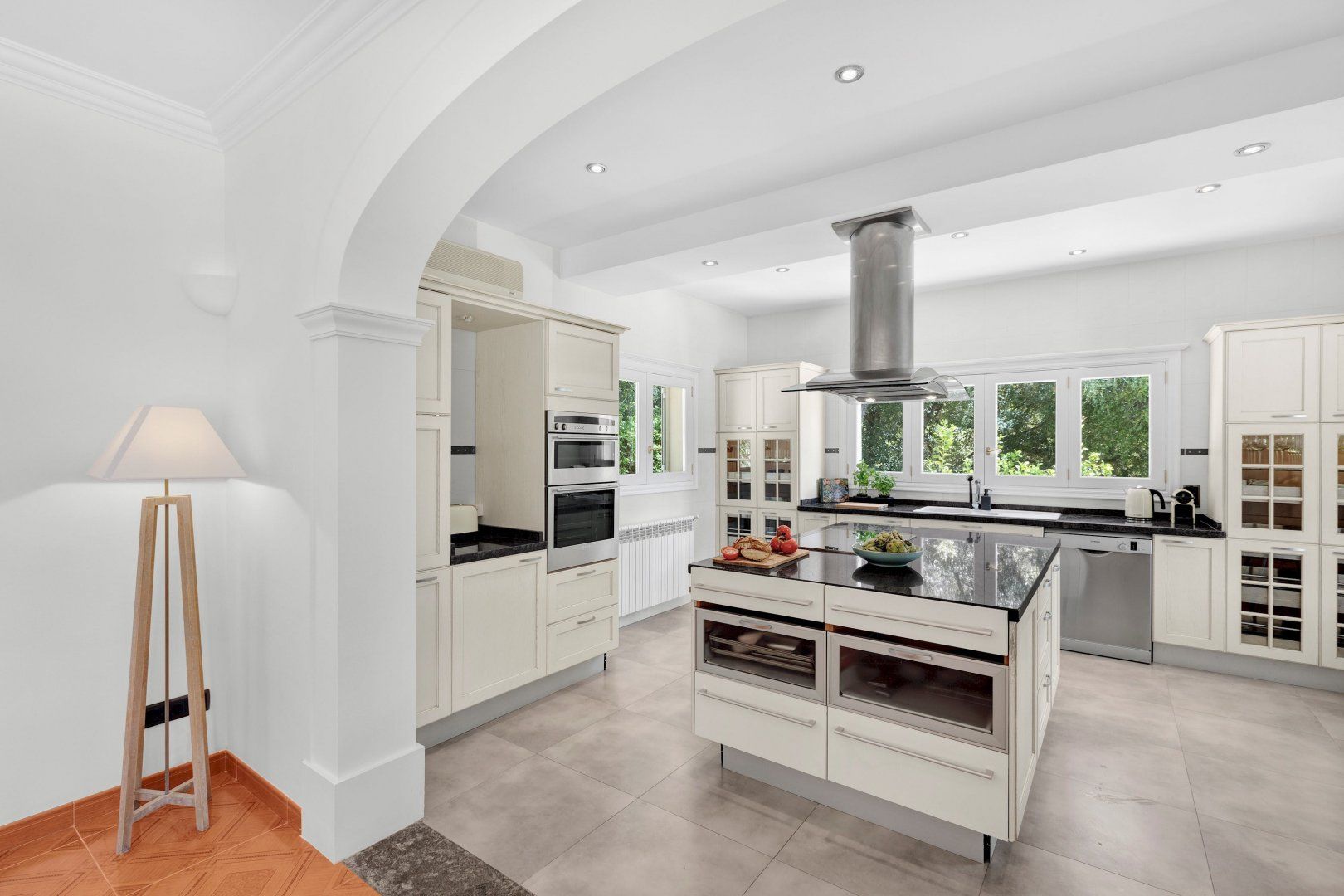 Fancy escaping to the country? If it isn't the hiking and cycling opportunities you're after, maybe the postcard scenery will win you over. As outdoor living centres around the twenty-metre swimming pool here, we think the day bed adds a nice touch for post-adventure snoozes. This home invites you in with a coastal-themed interior, but with an upstairs nursery, it's also a practical pick for families. The old town of Pollença offers an authentic outing, and you're never too far from a beach in Mallorca.