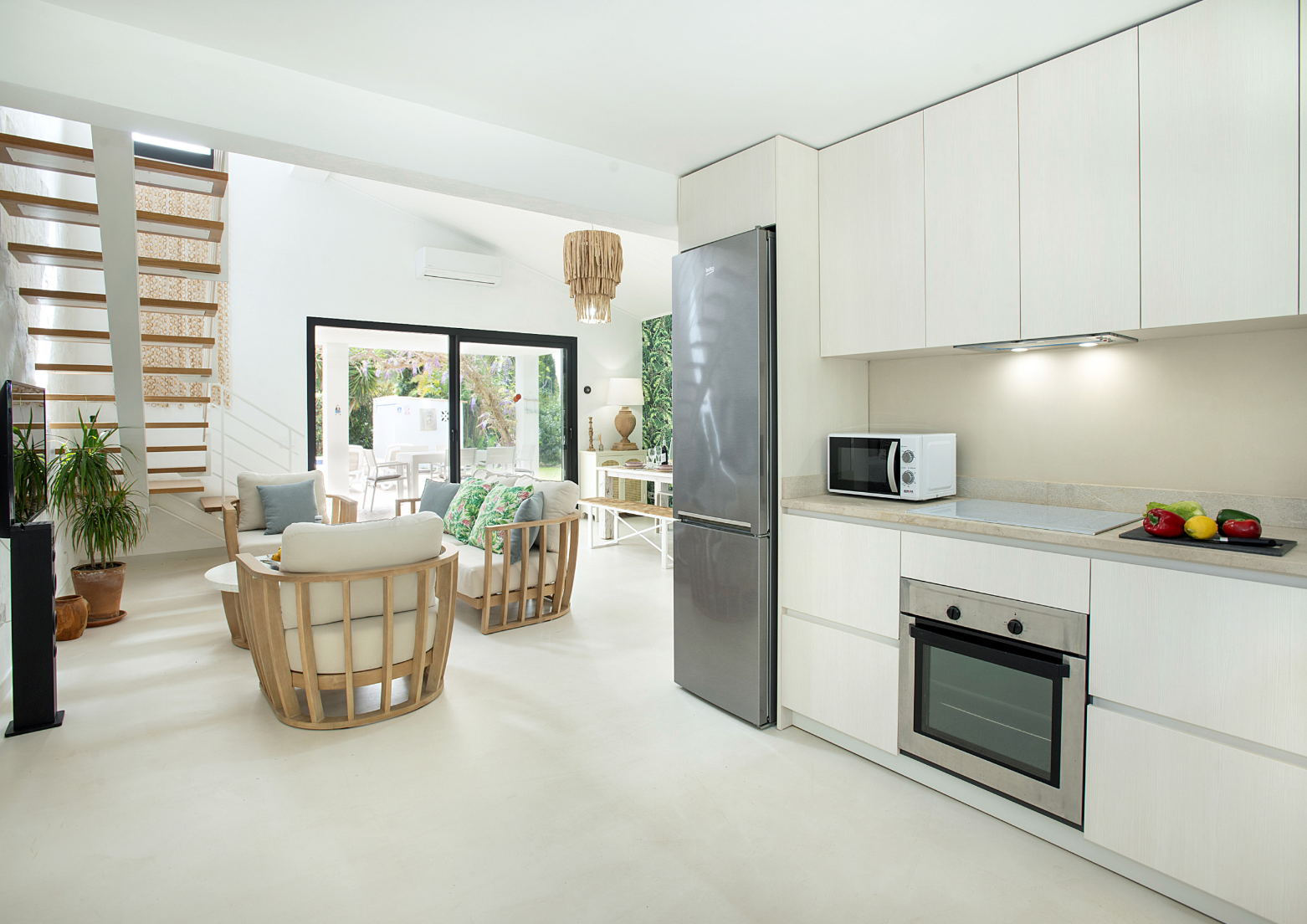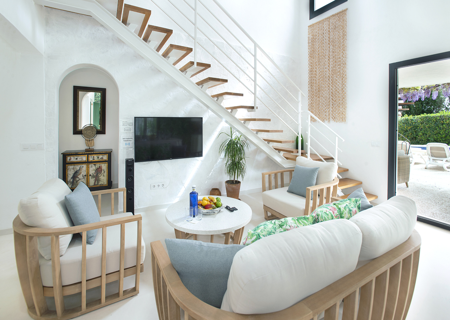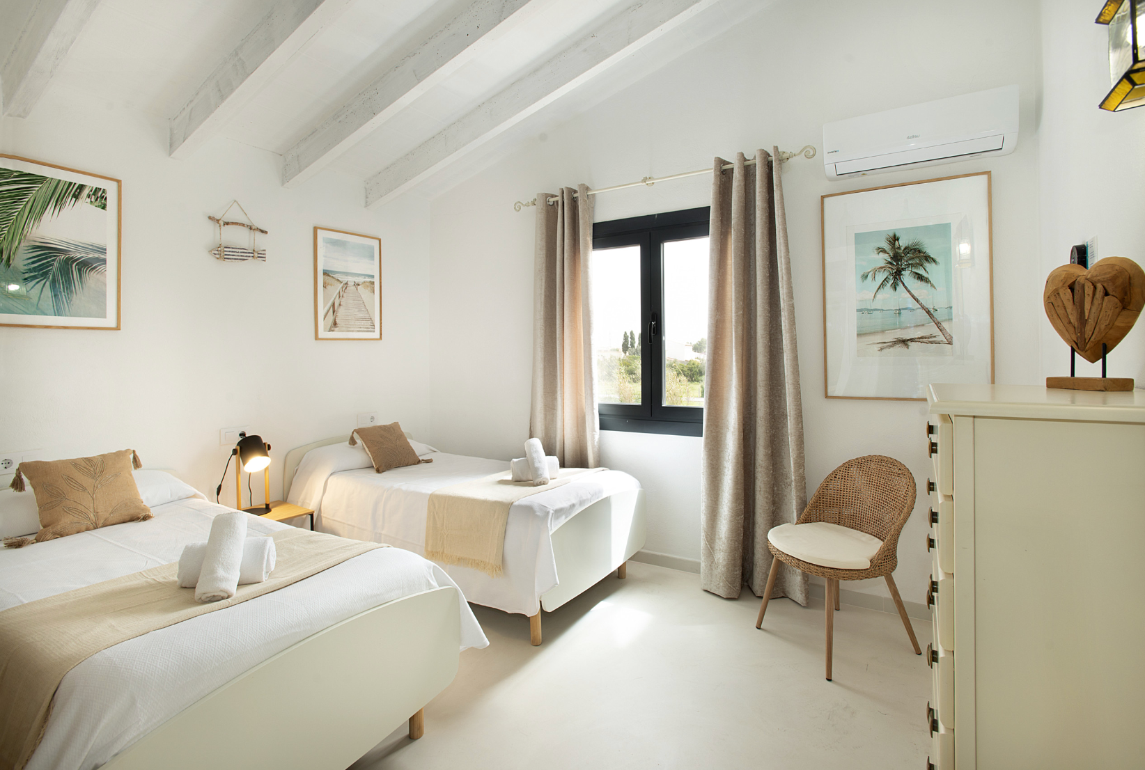 Home truths: *Although the home is spread over two floors, there's a bedroom and bathroom on the ground level *Your host can provide two cots and high chairs for free upon request *There's space to park up to two cars at the home *The air conditioning units go on timer mode between 9pm-8am and 2pm-4pm *A cleaning service, pool towels and a welcome basket are all included with the booking *Bed linen and towels are changed every 7 days.
