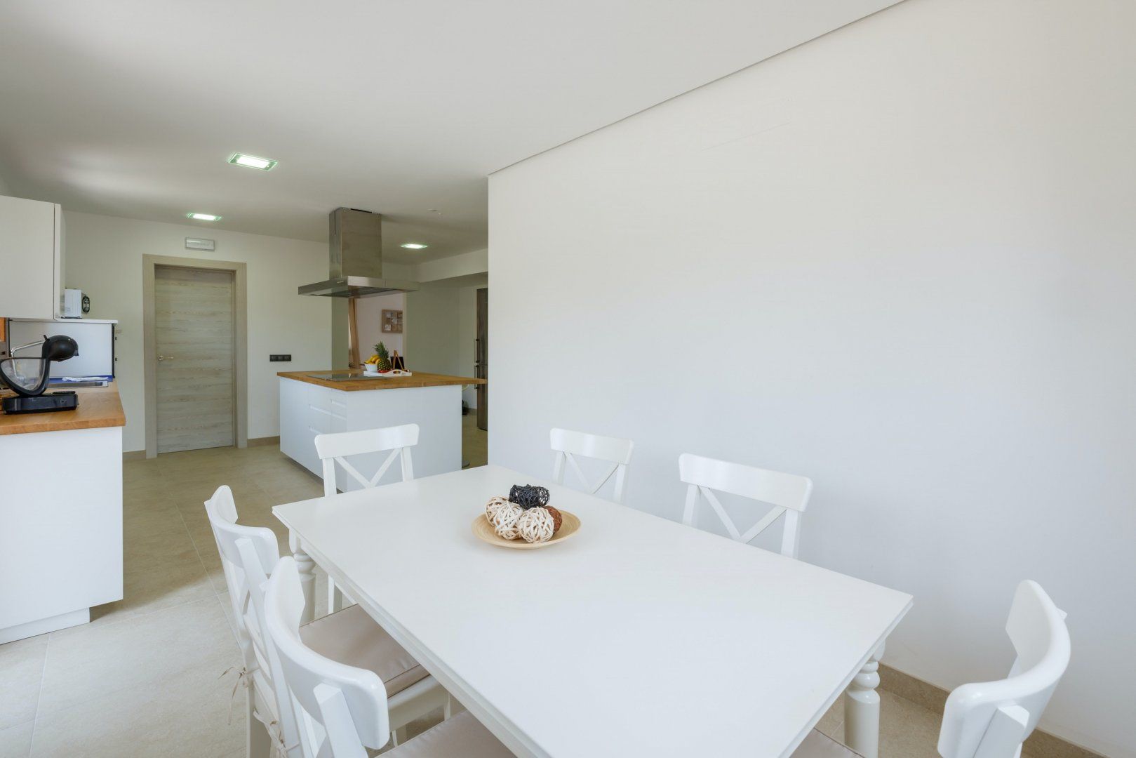 Need a break from the heat? The immaculately decorated interior offers respite within its pristine white walls. A well-equipped kitchen contains everything you need for a luxurious self-catered stay, while the open layout of the living room makes for a social space with plenty of room for everyone to claim a corner for themselves. Complete privacy is just a closed door away in four comfortable bedrooms.