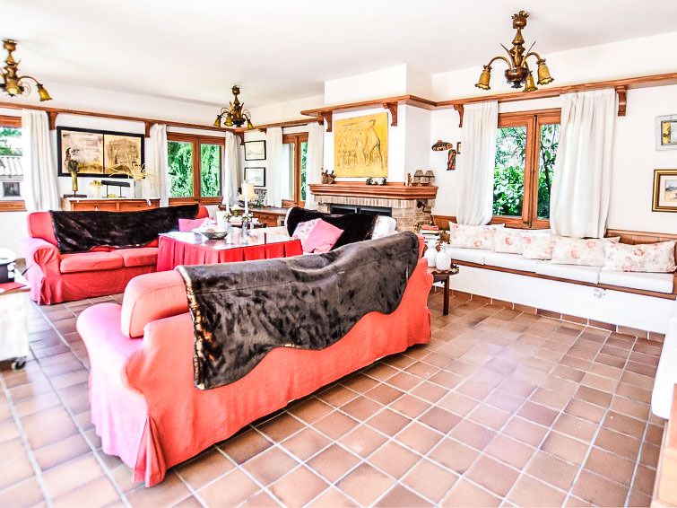 "Can Joan", 9-room villa 450 m2 on 2 levels. Object suitable for 10 adults. Spacious and bright, very comfortable and tasteful furnishings: open large living room with sliding door, panoramic window. Exit to the garden. Large dining room with dining table. Large living room with sliding door, panoramic window with dining table, satellite TV and flat screen.
