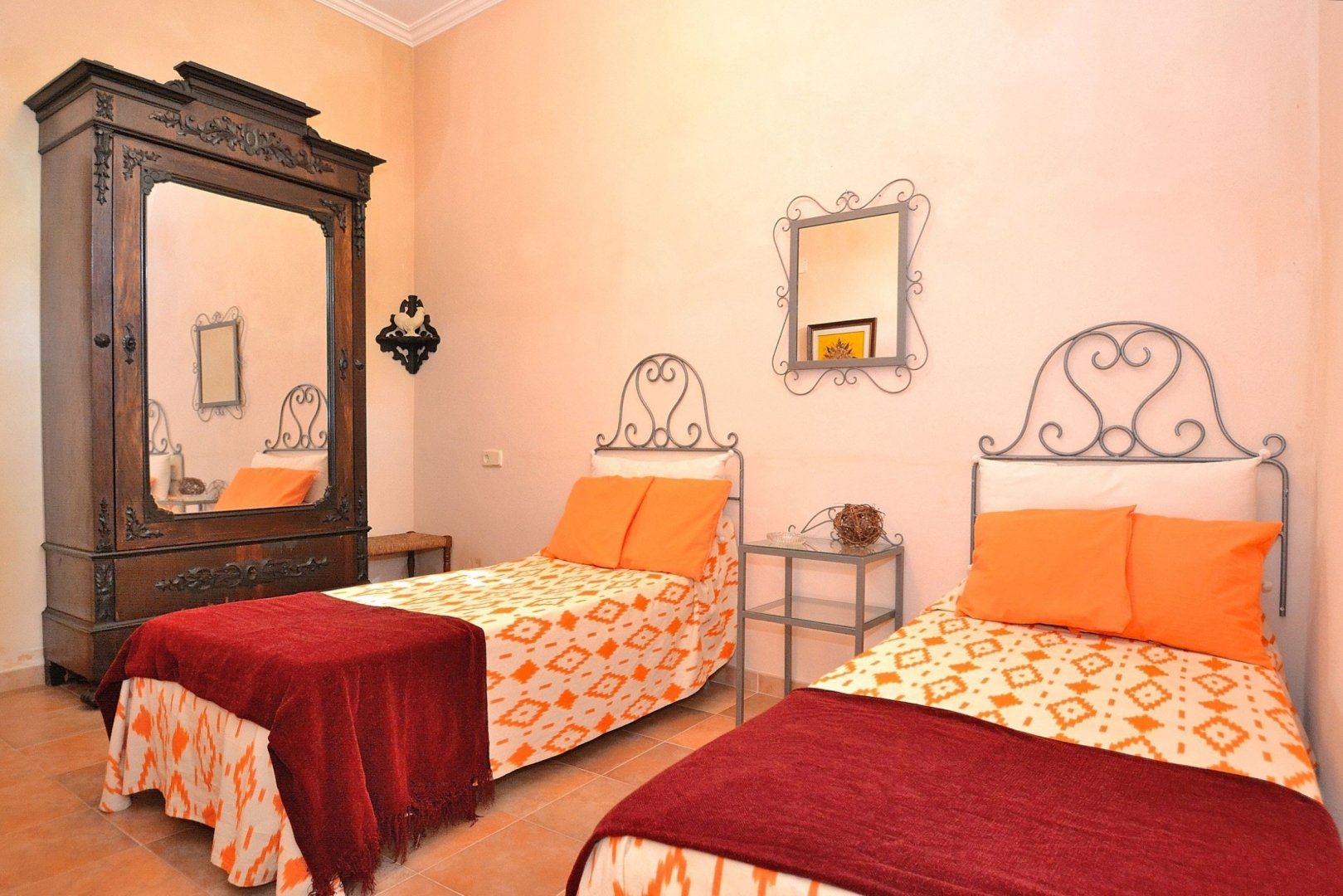Inside this stone-built villa, you'll open blue shutters each morning before heading down into a cosy lounge, complete with twin rocking chairs and an old-fashioned fireplace. In the leafy garden, there are several seating areas tucked away. We can just imagine you sipping on refreshing horchata de chufa after swimming lengths in your private pool. Or, why not escape the midday sunshine in this outdoor living area, where you can make plans for the coming days? Perhaps you'll end the evening with a barbecue supper at sunset.