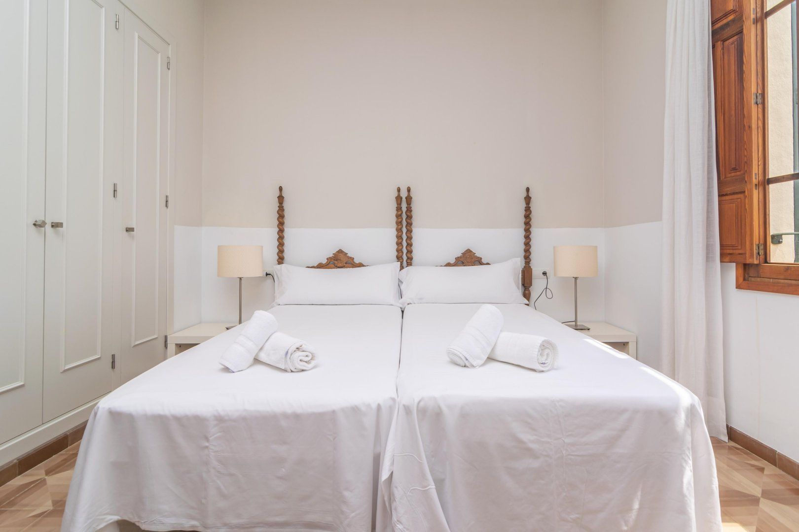 Sometimes you want to get away from it all, and sometimes it’s nice to be in town. This classic beauty of a Mallorcan villa offers both, sitting on a quiet street, 150 metres from the centre of Llubí. In the heart of town, you’ll find tree-lined streets leading to squares crowned with ancient churches. Pavement cafés spill into the street and bakeries and cafés provide traditional breakfast options. It’s in the heart of the Mallorcan hills, so cyclists will be particularly pleased with the location (there are bike racks in the garage too).