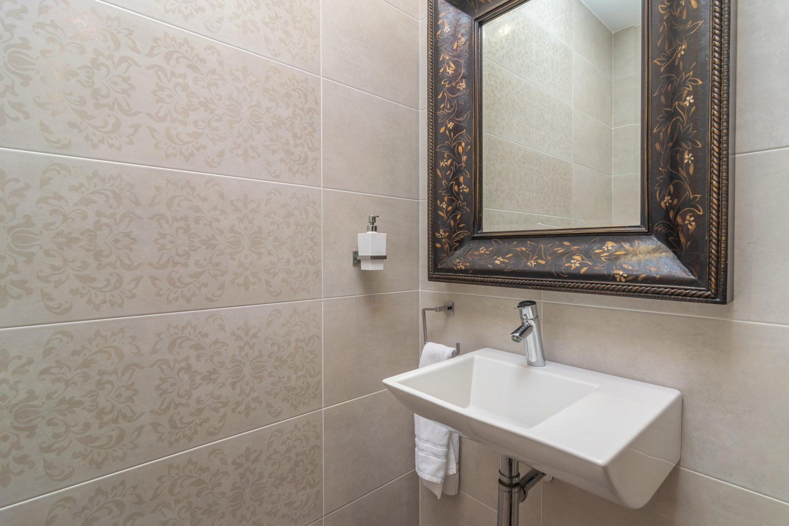 Inside, the villa is sleek and sophisticated with touches of old-world charm. Marble columns and the grand marble staircase caught our eye the second we walked in, and hand-carved wooden bedframes feel like they have Moorish roots. There are two living rooms to choose from – one with a plush, tufted sofa and the other with a delightfully retro suite. Our favourite spot might have to be the second terrace, shaded by a sail-like parasol and lined with balustrades.