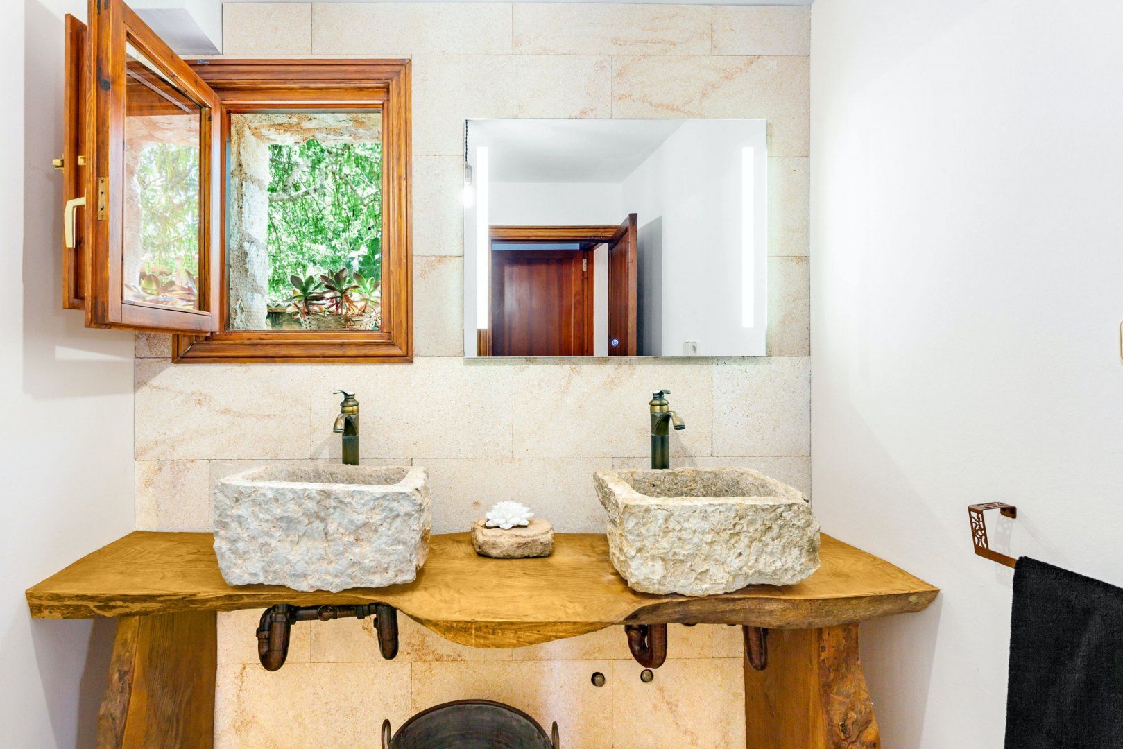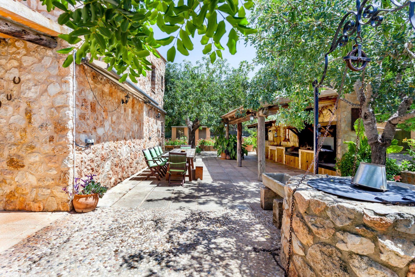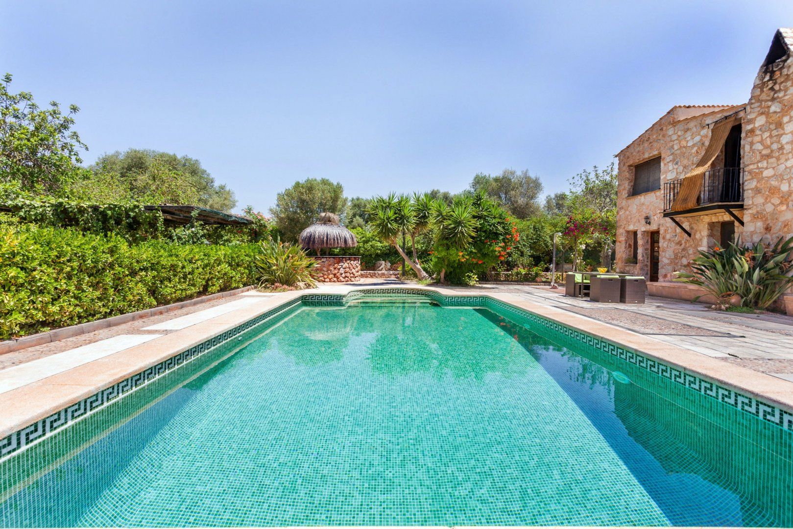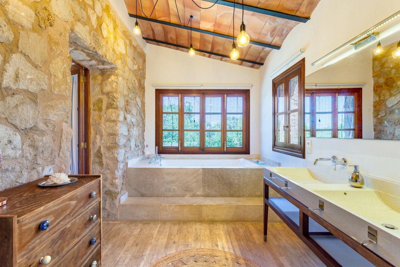 This home has all the charm of traditional Mallorcan finca. The decor is rustic, the rooms are simple and it makes a great setting for families to relax and savour the magic of this rural location. It’s also just a short drive from Llucmajor town so you’ll find plenty of amenities within easy reach. A car is essential here – the nearest beaches are less than a twenty-minute drive away and Palma is just 28km away. But for days at home, the grounds have plenty to offer too: a private pool, a shaded terrace and a barbecue. Plus, kids will love discovering the hidden tree house and playground.