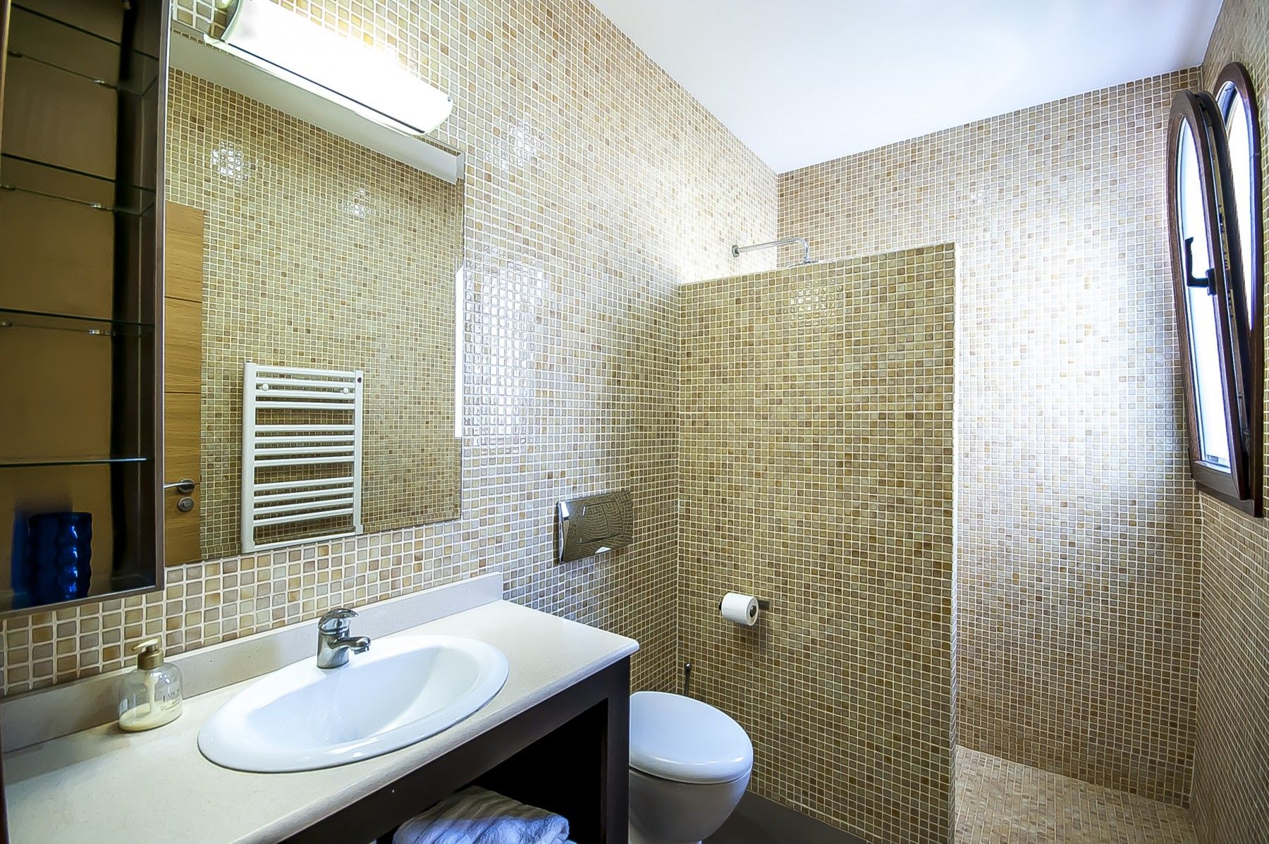 The villa is bright and stylish, with huge windows that bring the outside in. The sea views become part of the decor, whether you’re in the open-plan lounge and dining room or are just waking up in the morning. There’s plenty of space here, so it’s a great choice for a couple of families travelling together.