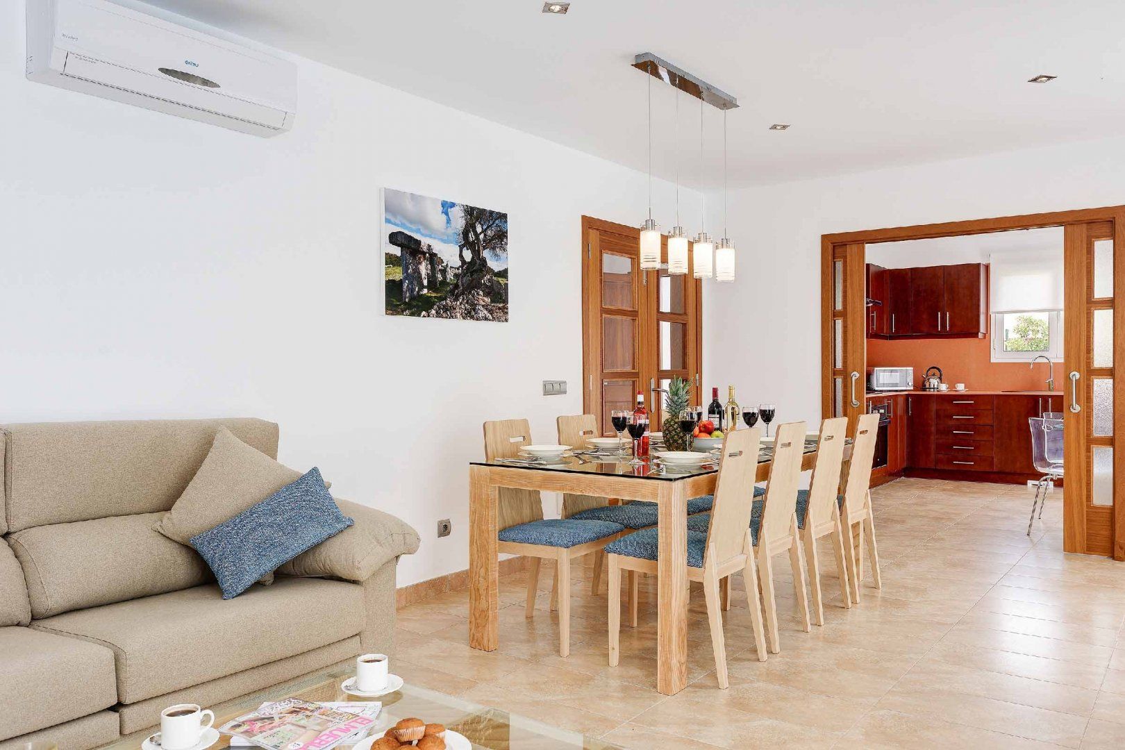 Located in the resort town of Cala En Forcat, this spot puts you within easy reach of the local family-friendly beaches, water sports activities and plenty of dining out opportunities. Meanwhile, you'll find the scenic harbour town of Ciutadella, just a short drive away. At the villa, enjoy a peaceful getaway with a private swimming pool to call your own and poolside loungers – perfect for whiling away in the sunshine with your holiday read. With a terrace kitchen and alfresco dining area here – lunchtime barbecues are bound to be on the agenda too. Inside, you'll find modern designs centred around comfort and practicality for a fuss-free and laid-back stay in Menorca.
