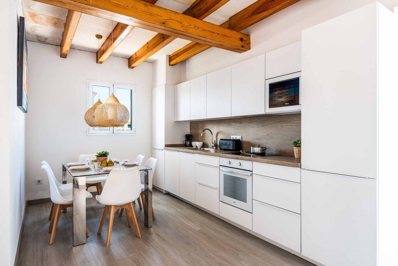 Close to several pretty coves, this villa is perfect for dropping your bags and heading straight to the coast. The floating stairs might be intimidating for some, but you'll find a ground-floor bedroom available here, and should any of the rooms start to feel a little too small, you can spread your legs poolside, where you'll also find a stone-built barbecue and terrace table for alfresco dining. Those travelling with kids can head to the waterpark for the day, and the observation deck, Mirador des Vermells, makes for a pretty backdrop to a family photo.