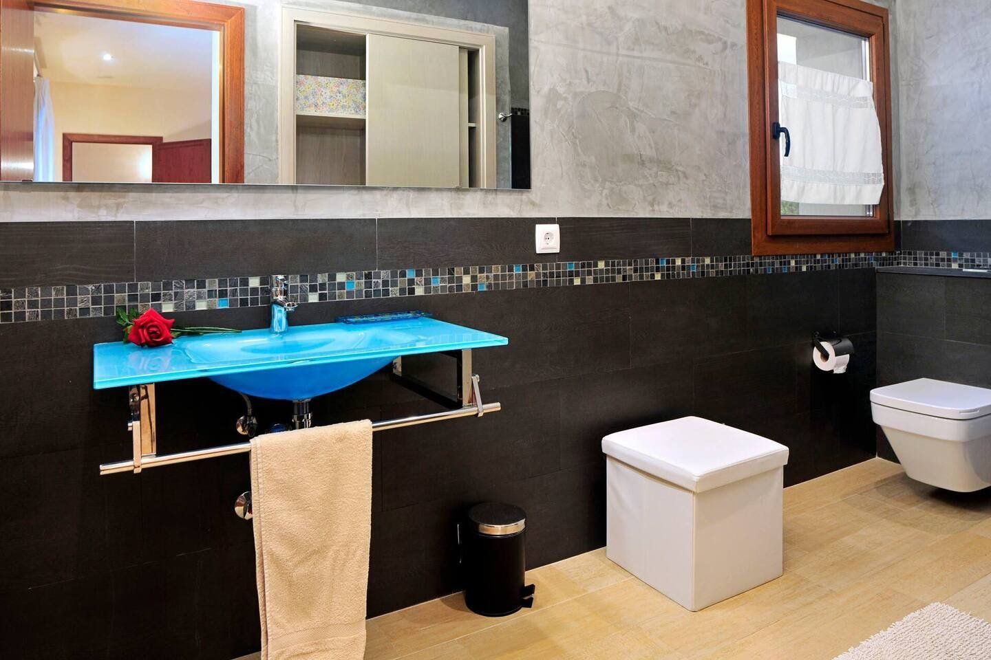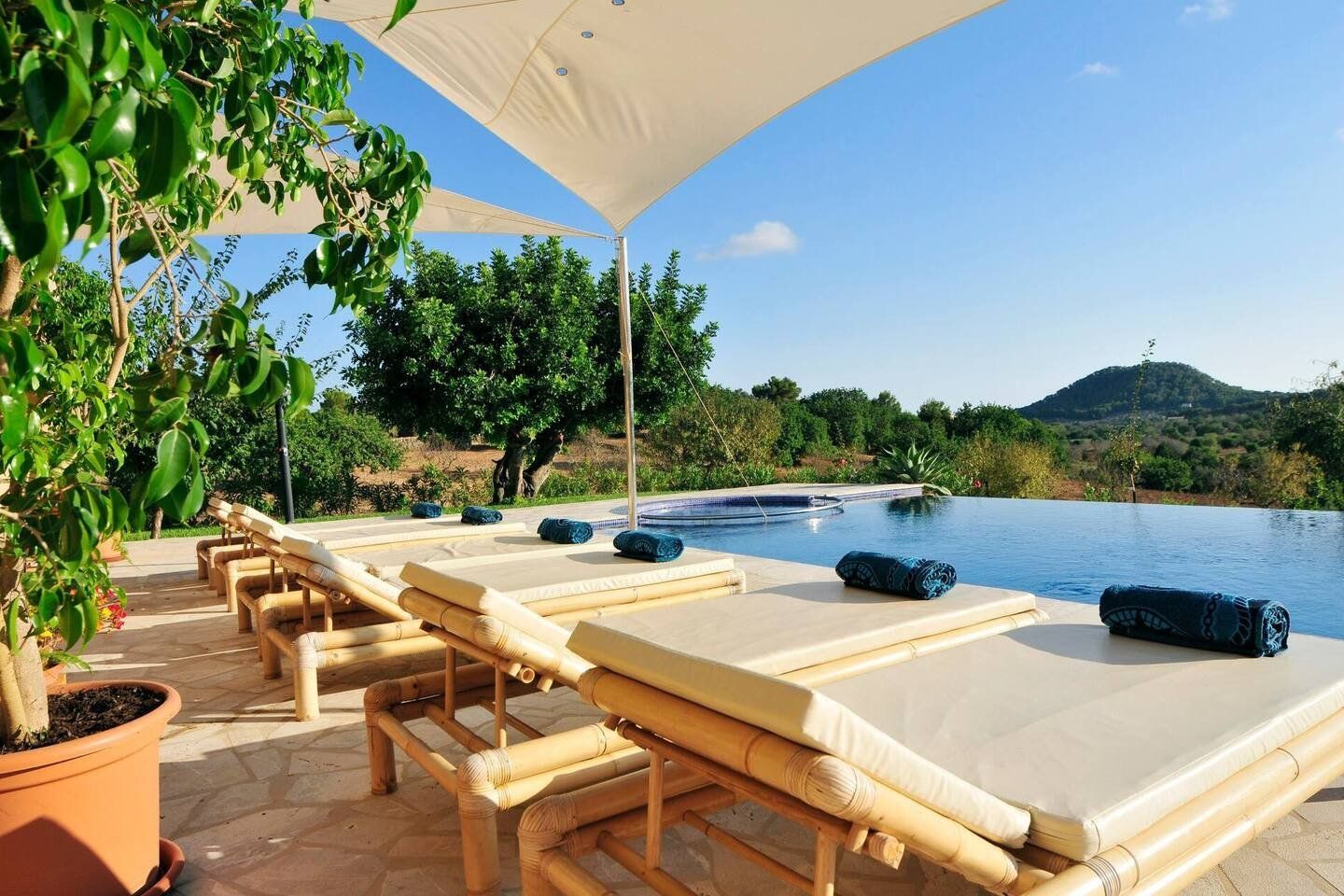 With a jacuzzi at one end and a shallow area for kids to splash around in at the other, this villa’s pool is where we suspect you'll be spending most of your time. Set on a huge private estate amid the rolling hills of Vall de s'Horta, the setting may be rural but the feel here is sophisticated and luxurious.