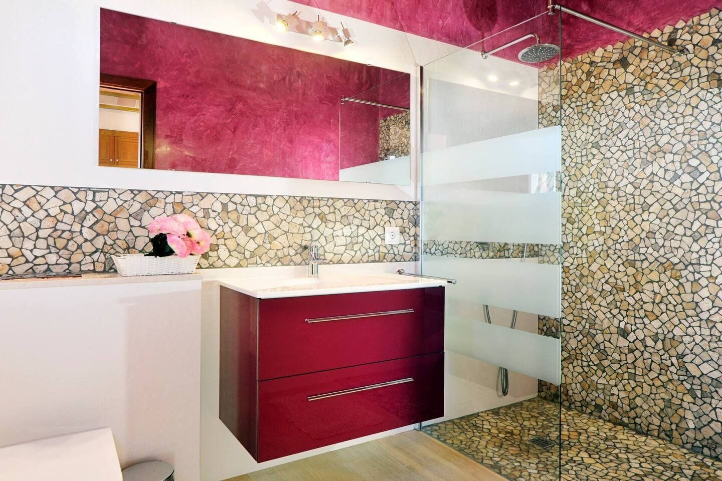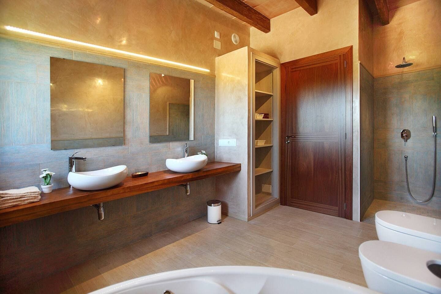 Here you'll be just a ten-minute drive from the beautiful beach at Portocolom. After a day of island adventures, retreat inside, where exposed stone, dark wood furnishings and a neutral colour palette blend perfectly with the natural surroundings.